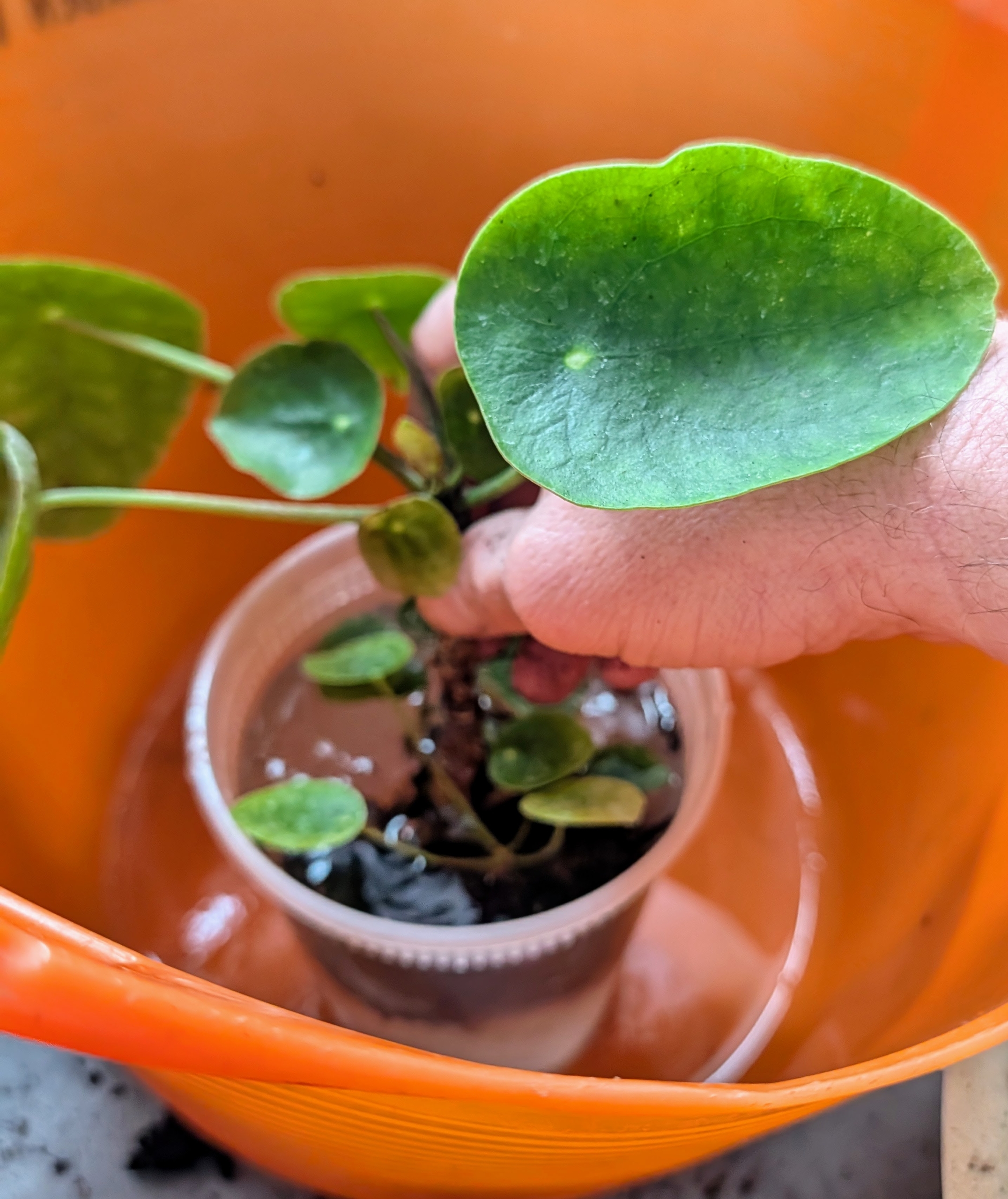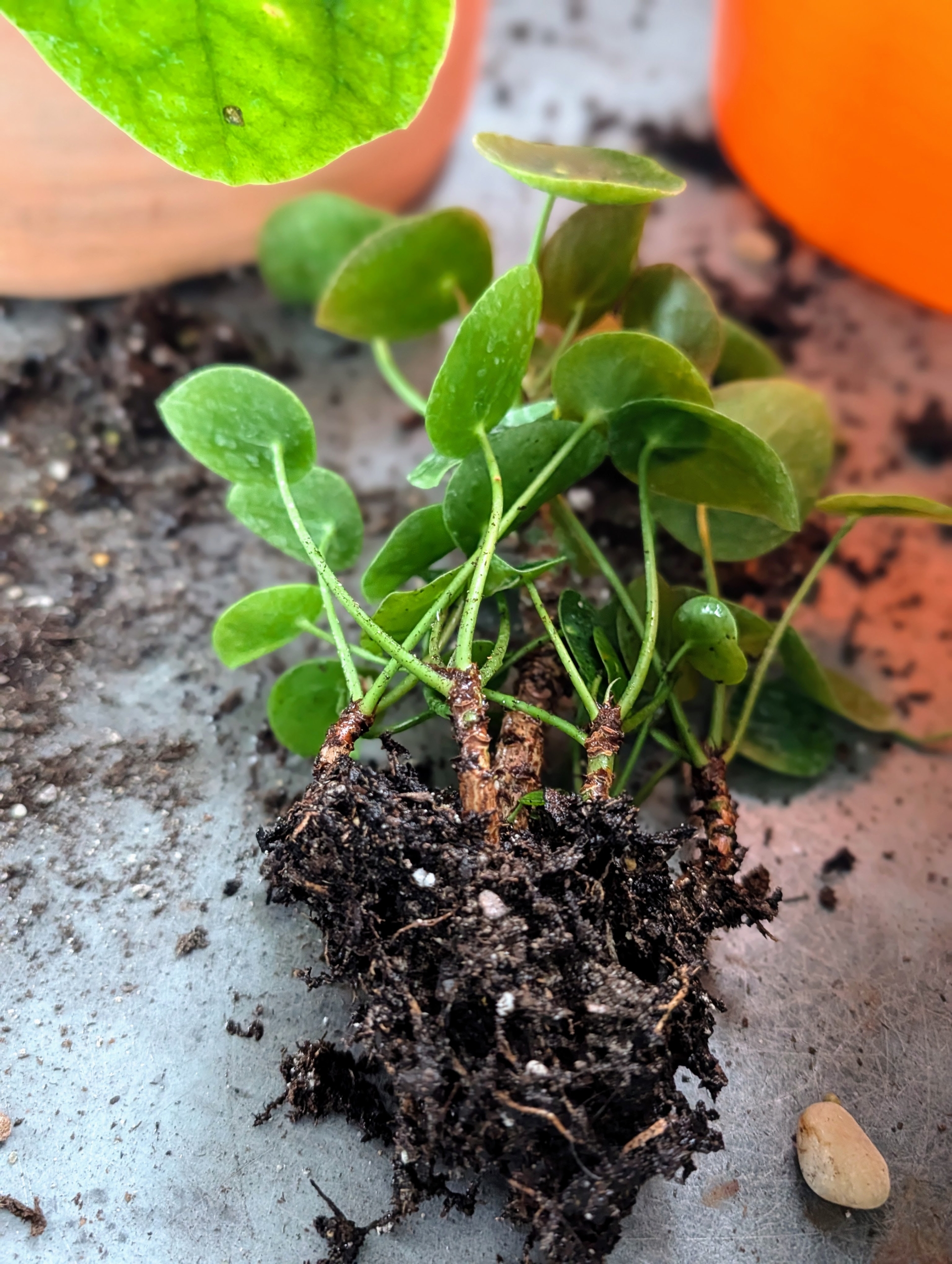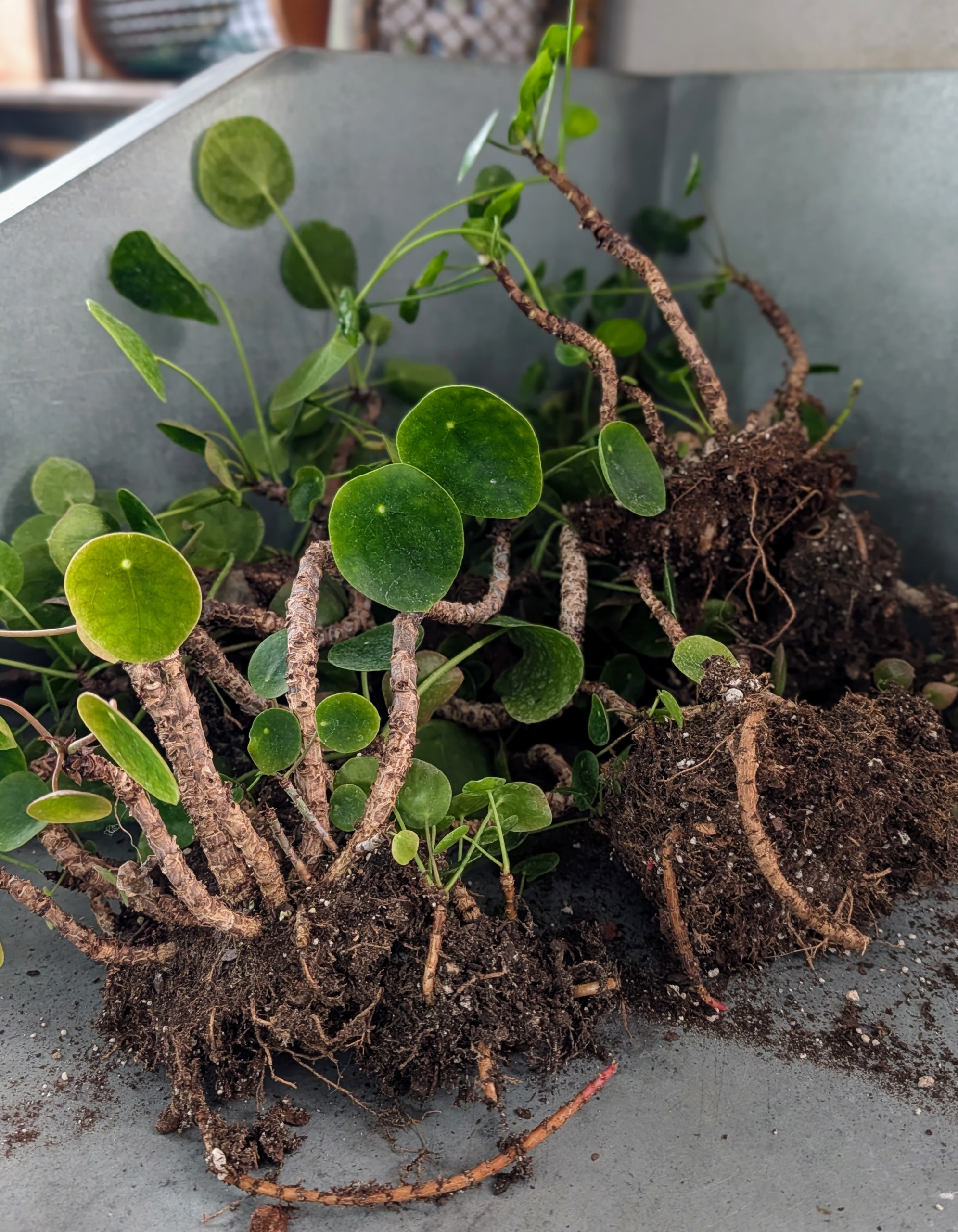 I have many Pilea peperomioides plants in my greenhouse. These plants are grown primarily for their interesting foliage and easy-to-care-for nature. With proper lighting, it can also double in size within a year. These plants were potted up a few years ago and need repotting to give the plants more room to thrive.