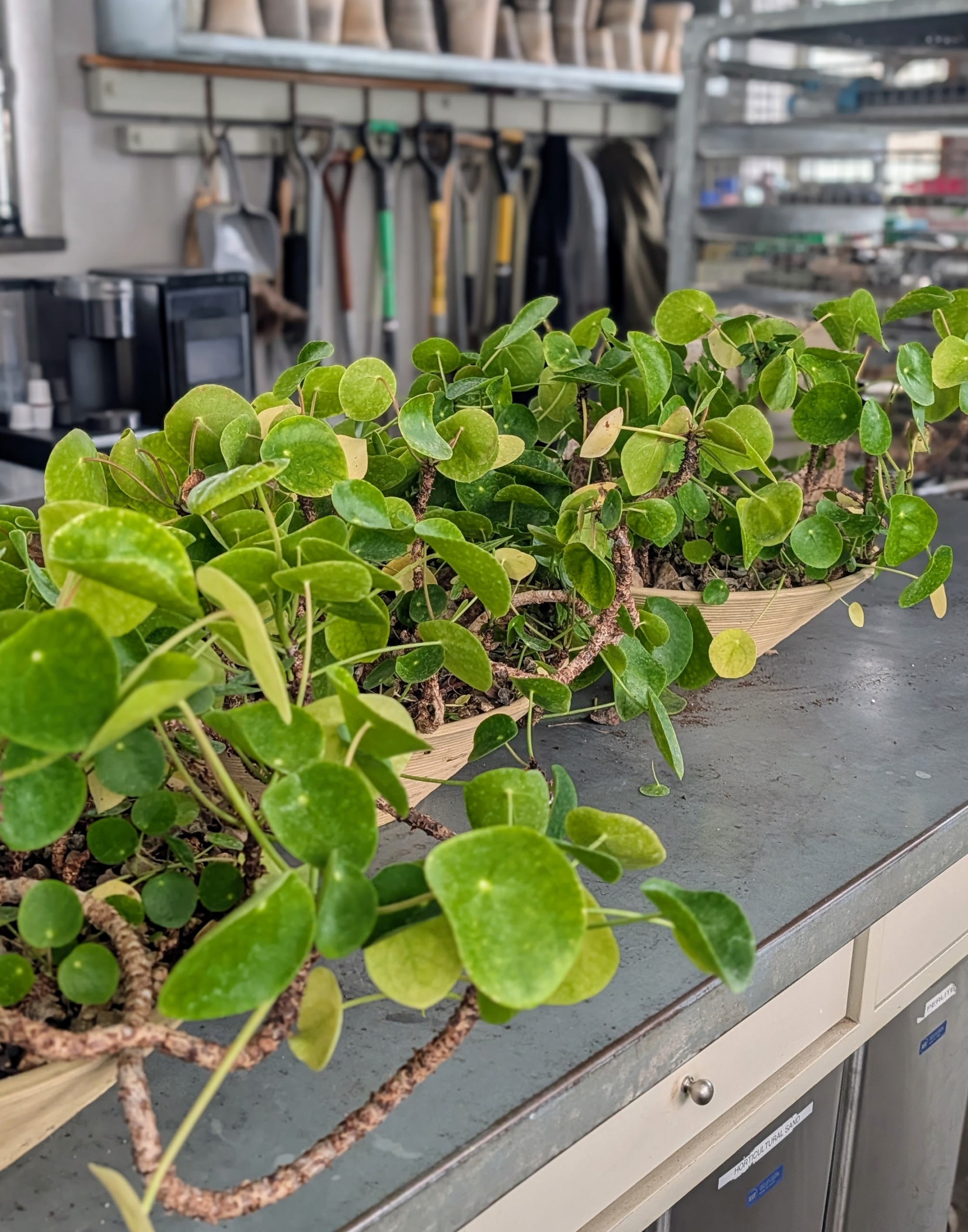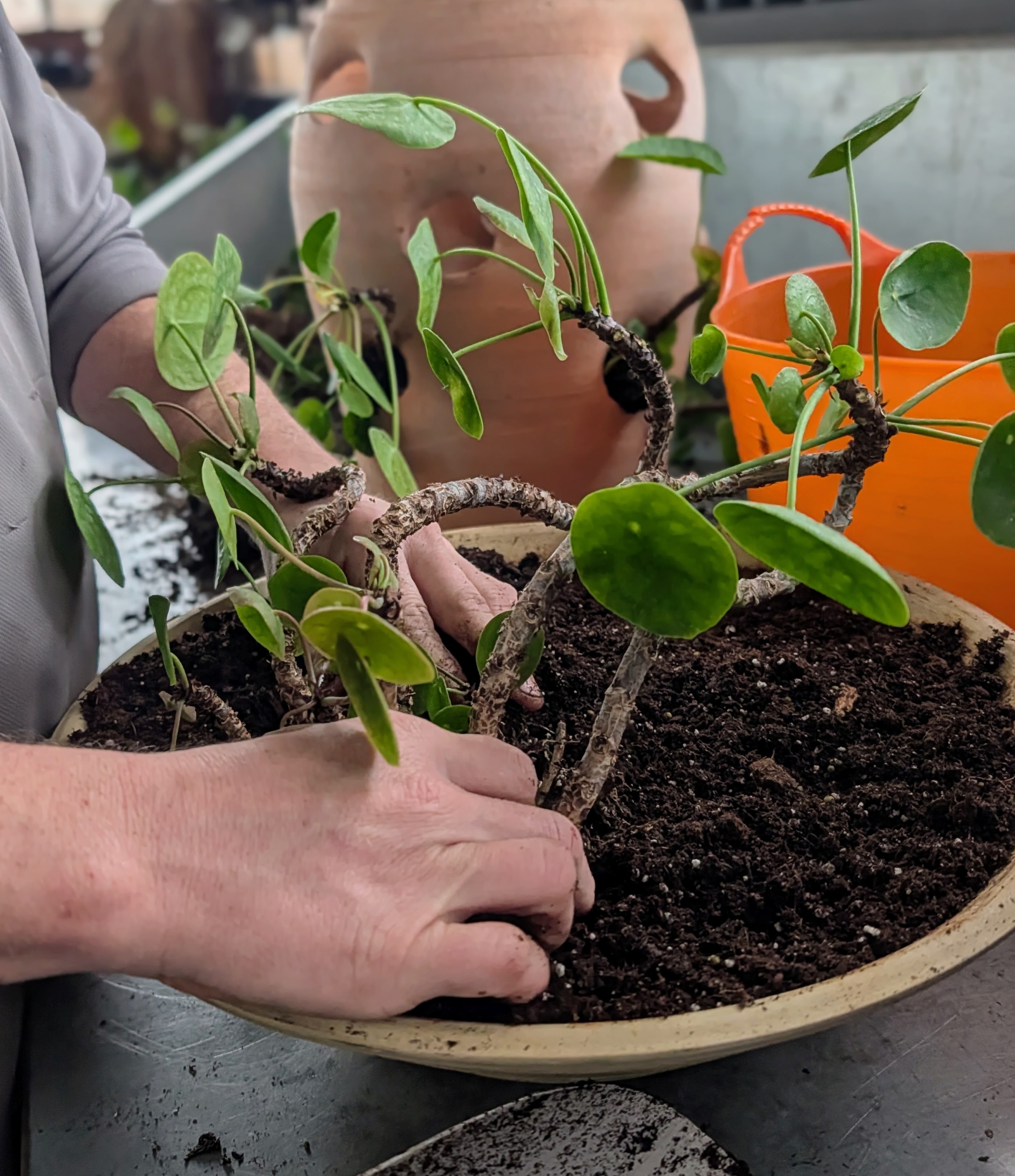 I love container plants, and over the years I have amassed quite a collection of potted specimens. To keep them looking their best, it is important to check their condition regularly, feed and water according to their needs, and repot those that have outgrown their current vessels. My head gardener, Ryan McCallister, has been repotting a group of Chinese money plants, Pilea peperomioides - low-maintenance perennials with interesting coin-shaped foliage.