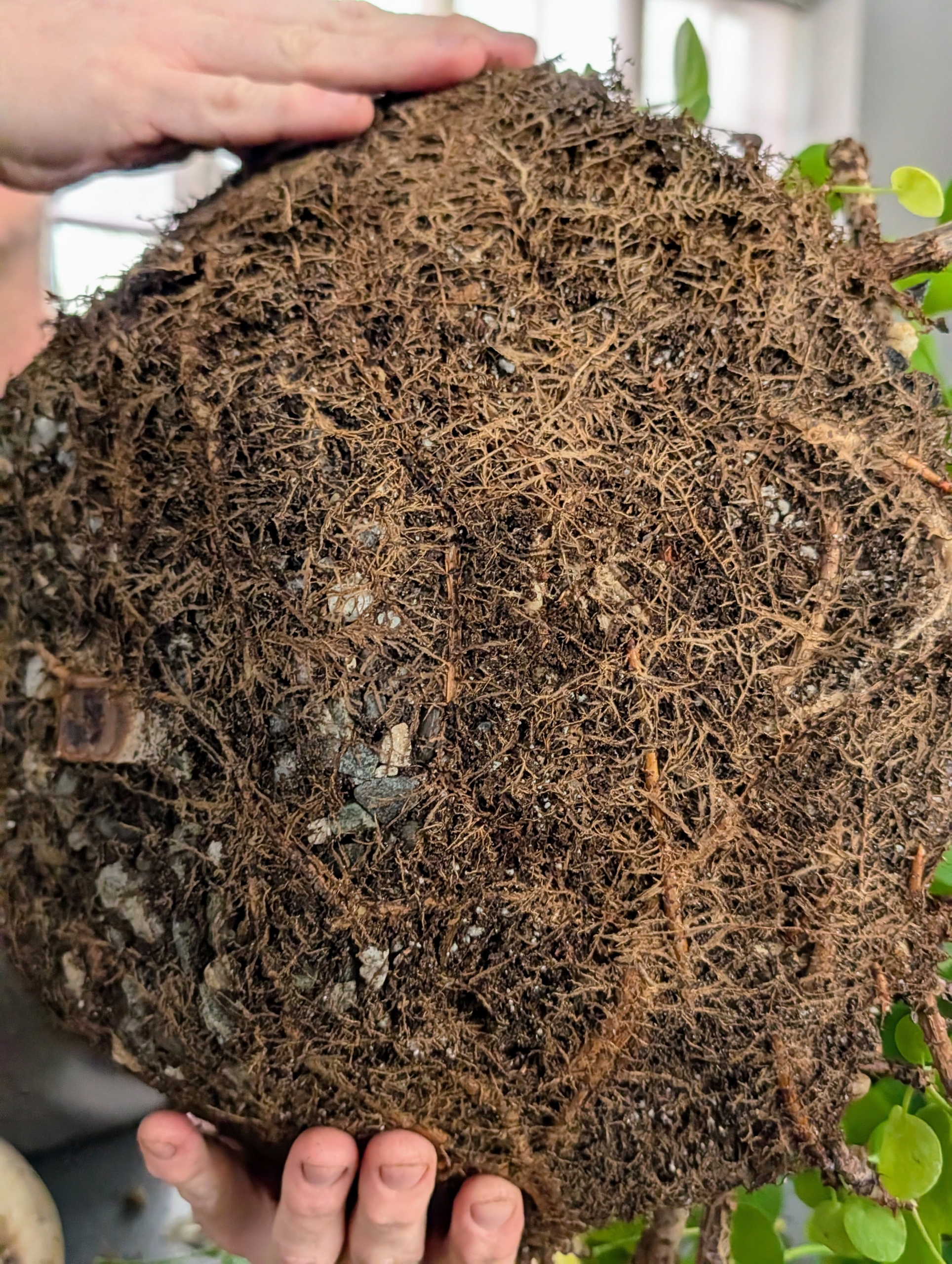 Look at all the roots surrounding the root ball. When roots become tightly packed and confined within the container, it is called root bound – a condition that hinders the plant’s ability to grow and expand.