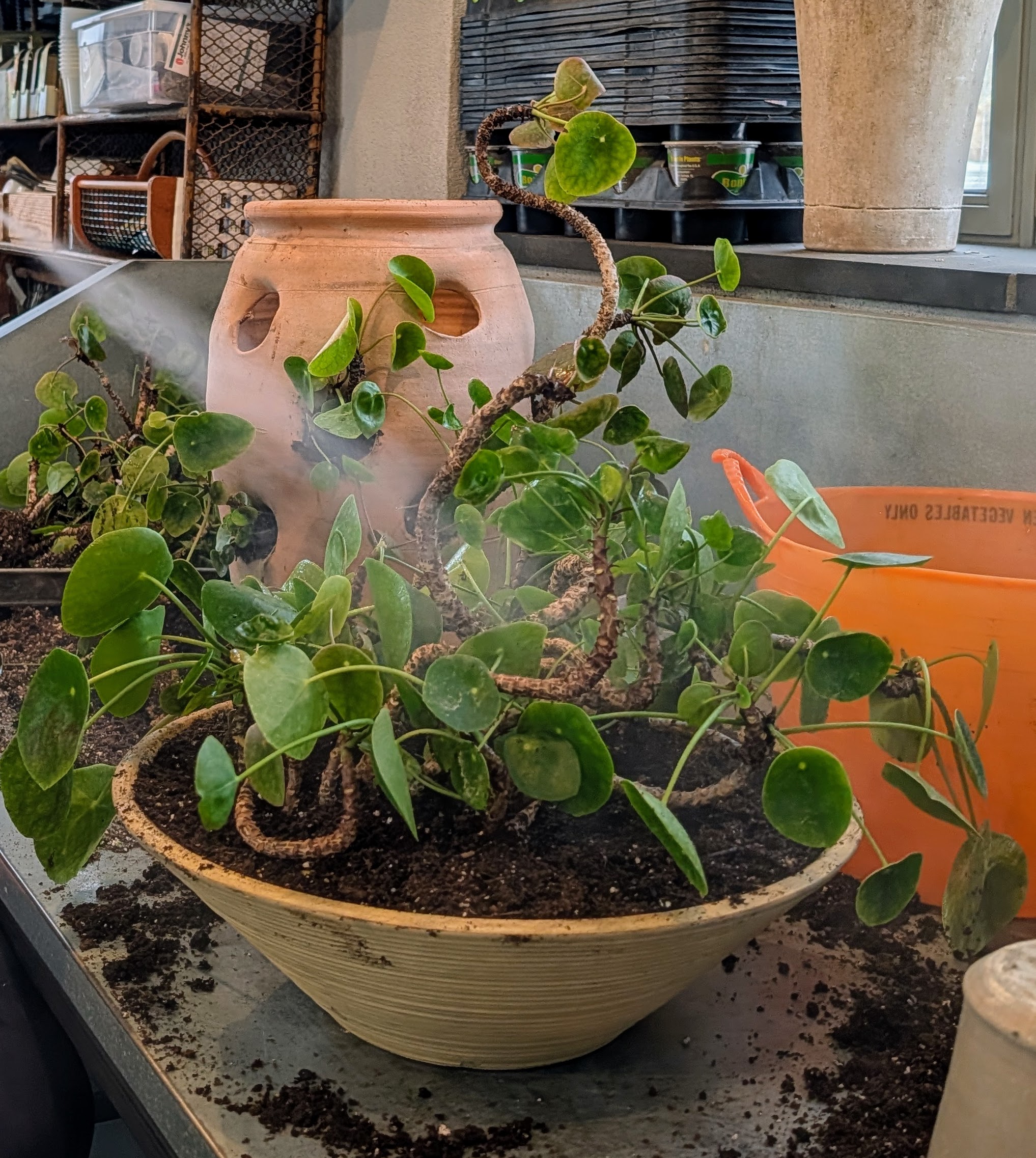 Some of the money plants will be repotted in the same vessel, but with much more room to grow.