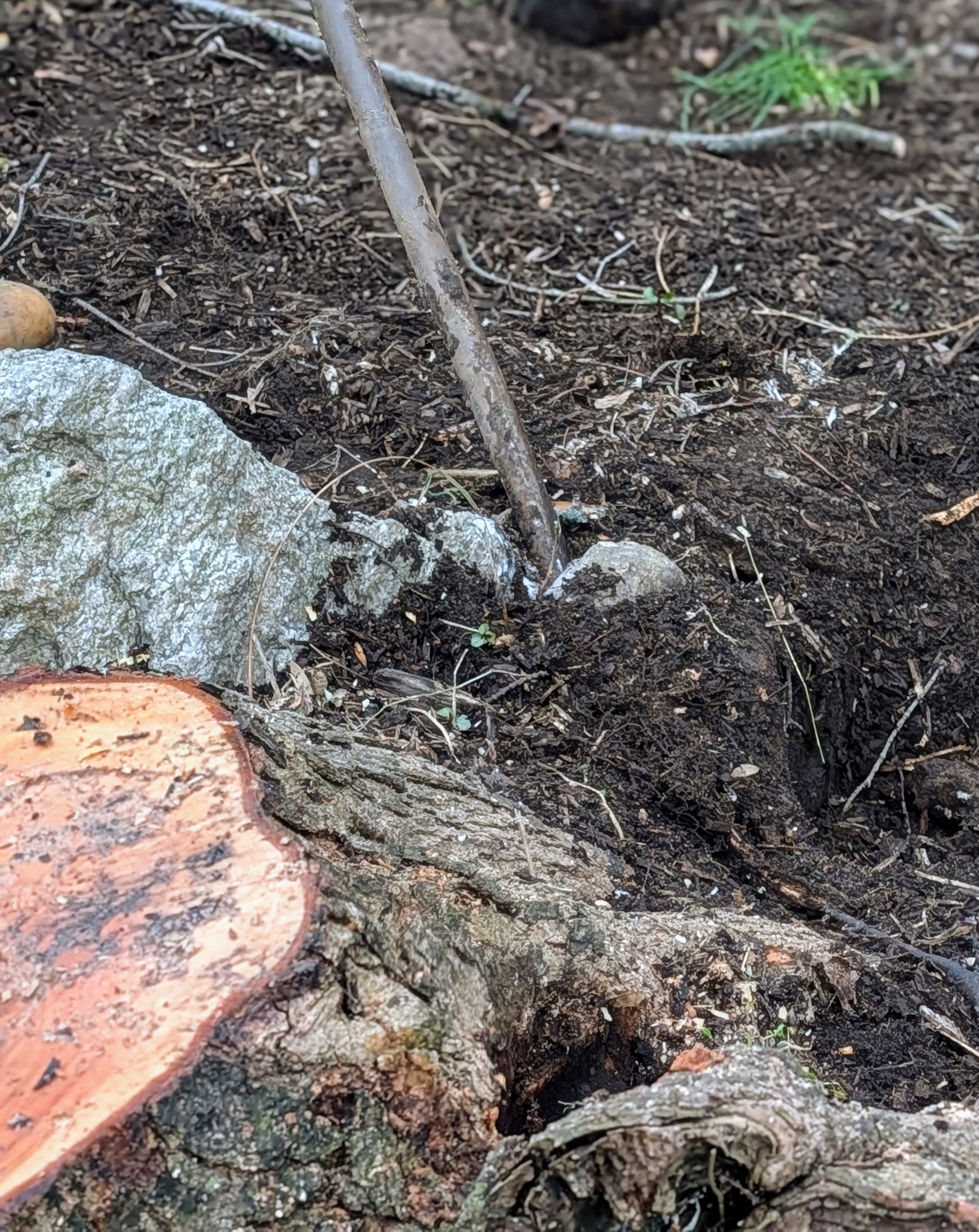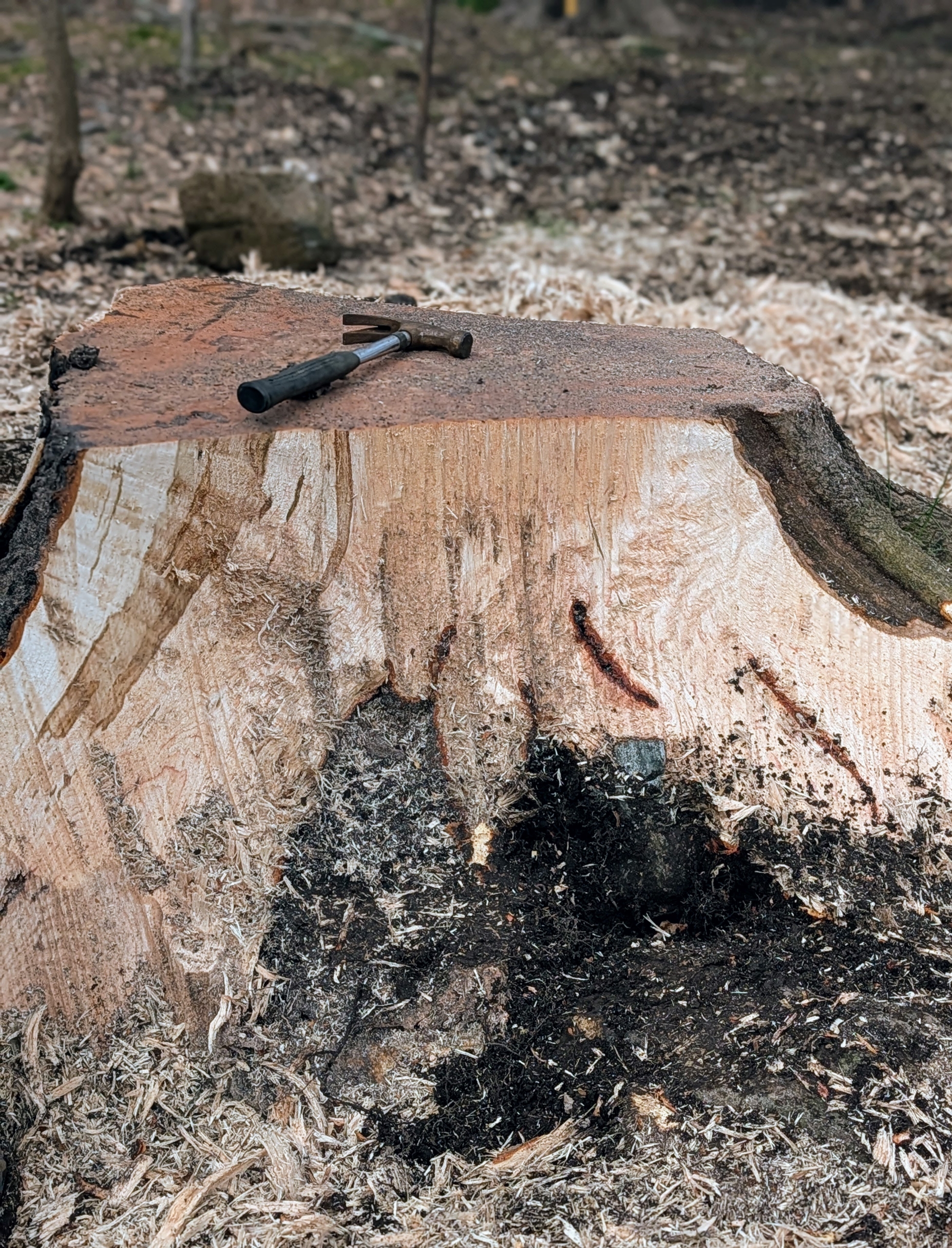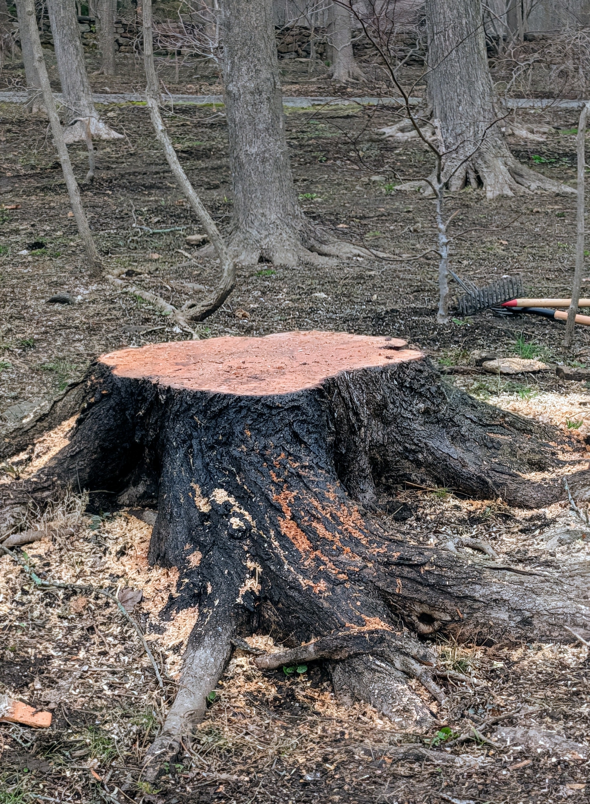 All that’s left is the stump. It is still wet from the recent rains.