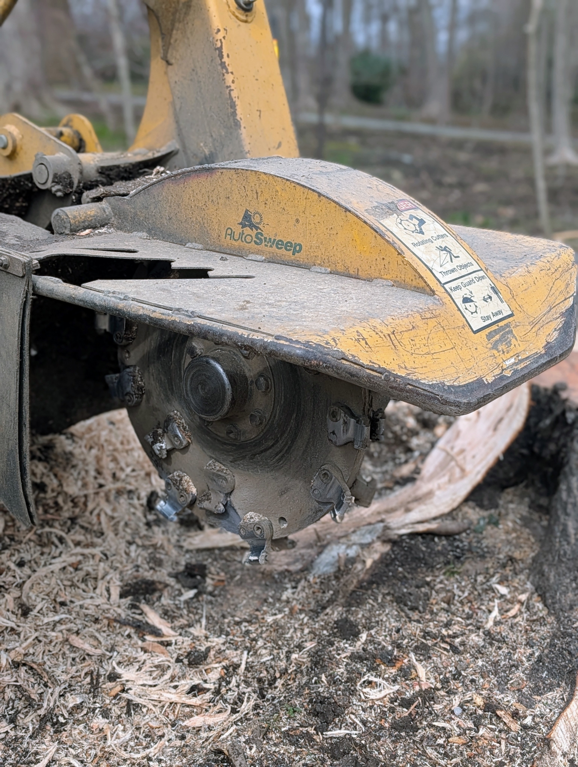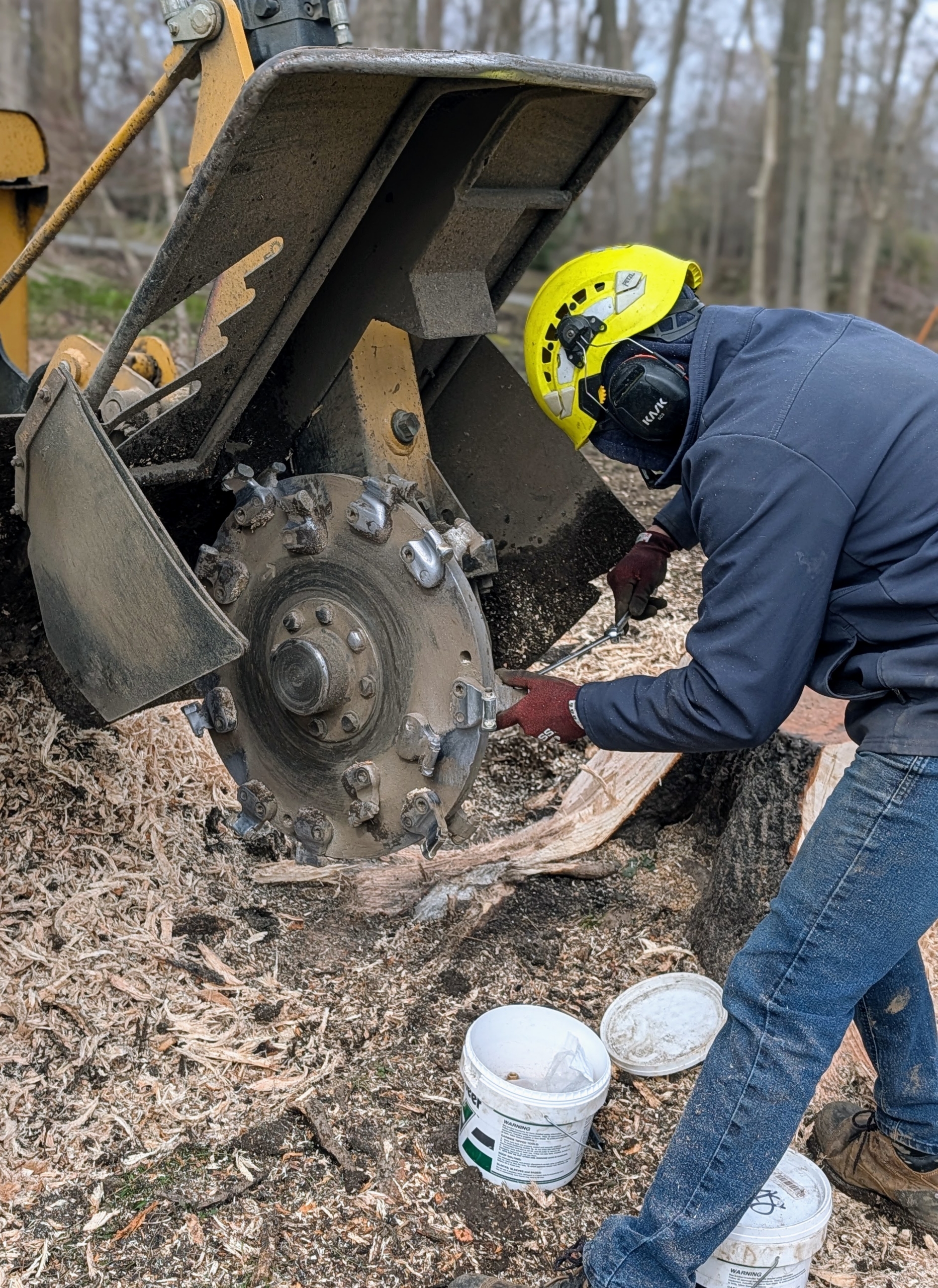 Meanwhile, any stones or big rocks are removed from near the stump. This is to prevent any unnecessary damage to the grinder’s cutter teeth.