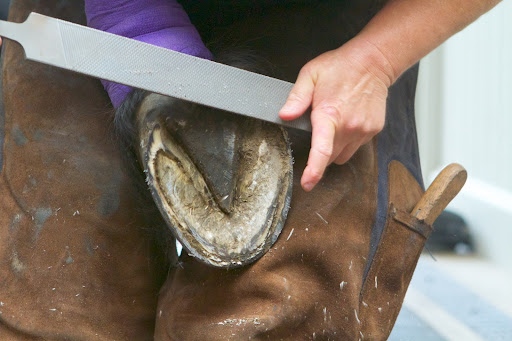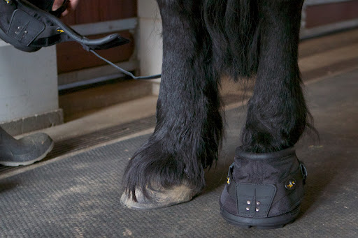 1 Before measuring for the boots, Linda Friedman, my farrier, cleaned and trimmed Meindert's hooves with a rasp.