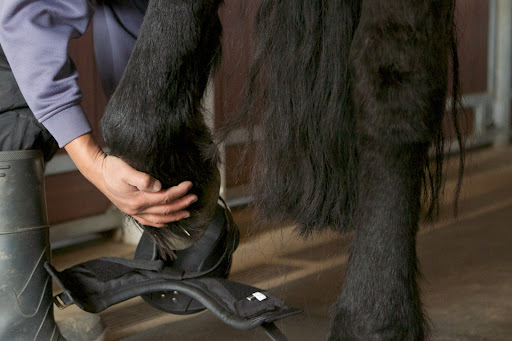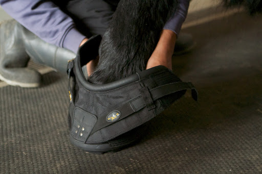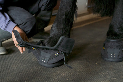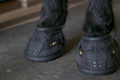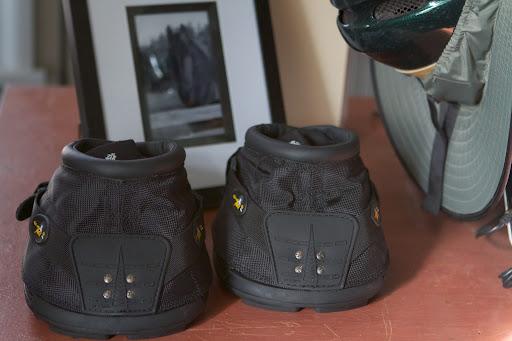 6 Betsy likes this style of boot for the Friesians because it sits low, clearing much of their feathery fetlock hair.