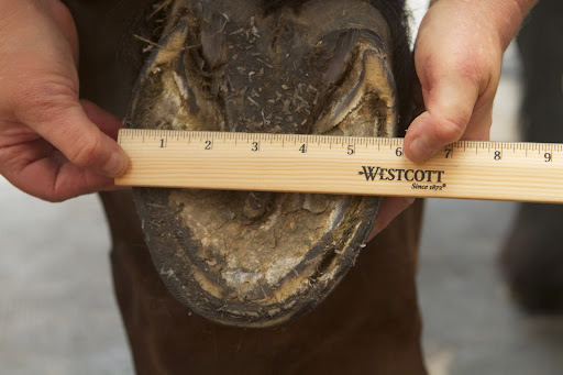 3 And this is the hoof length from the toe to the buttress of the heel, or the farthest weight bearing point of the heel where the hoof wall ends. Friesians have very large hooves!