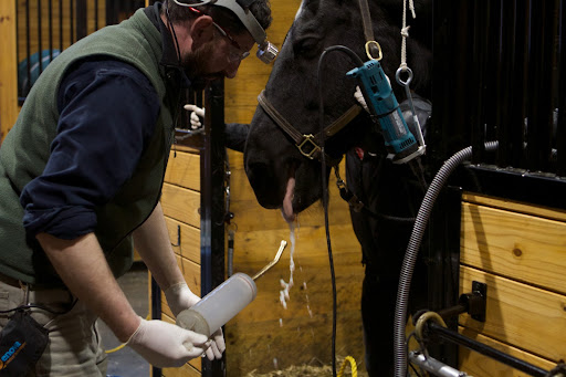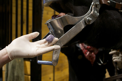4 PJ Murphey, an equine dentist, is one of a select few in the U.S. trained to perform this type of tooth extraction. He and Elizabeth spoke strategy and then he sterilized his tools for the operation.