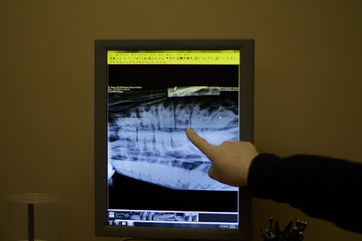 3 My vet, Dr. Elizabeth Kilgallon, was waiting for the horses to arrive. She referred to an X-ray of the affected area so as to pinpoint the bad tooth. It was quickly revealed!