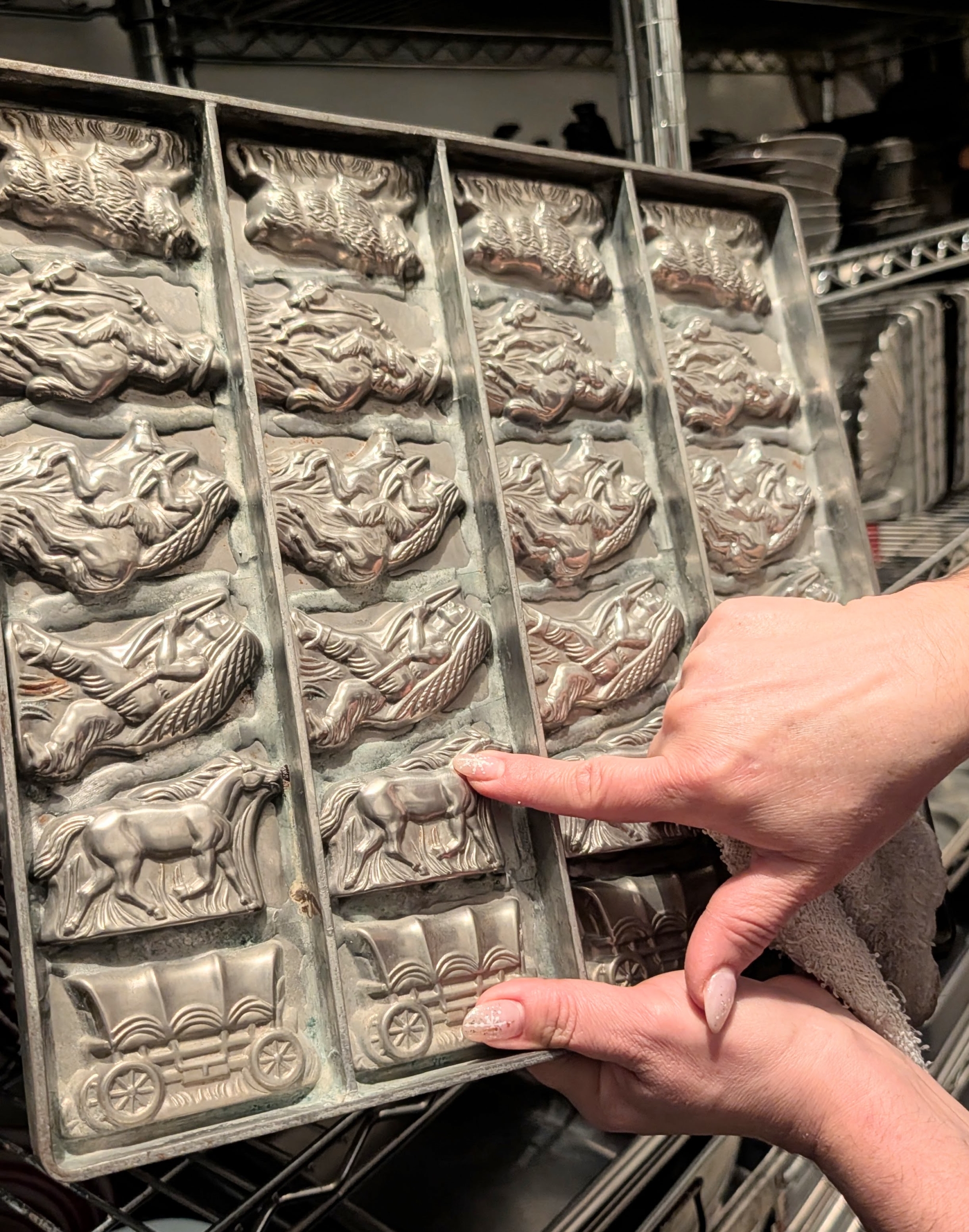 These molds have a western theme with horses, cowboys, and covered wagons.