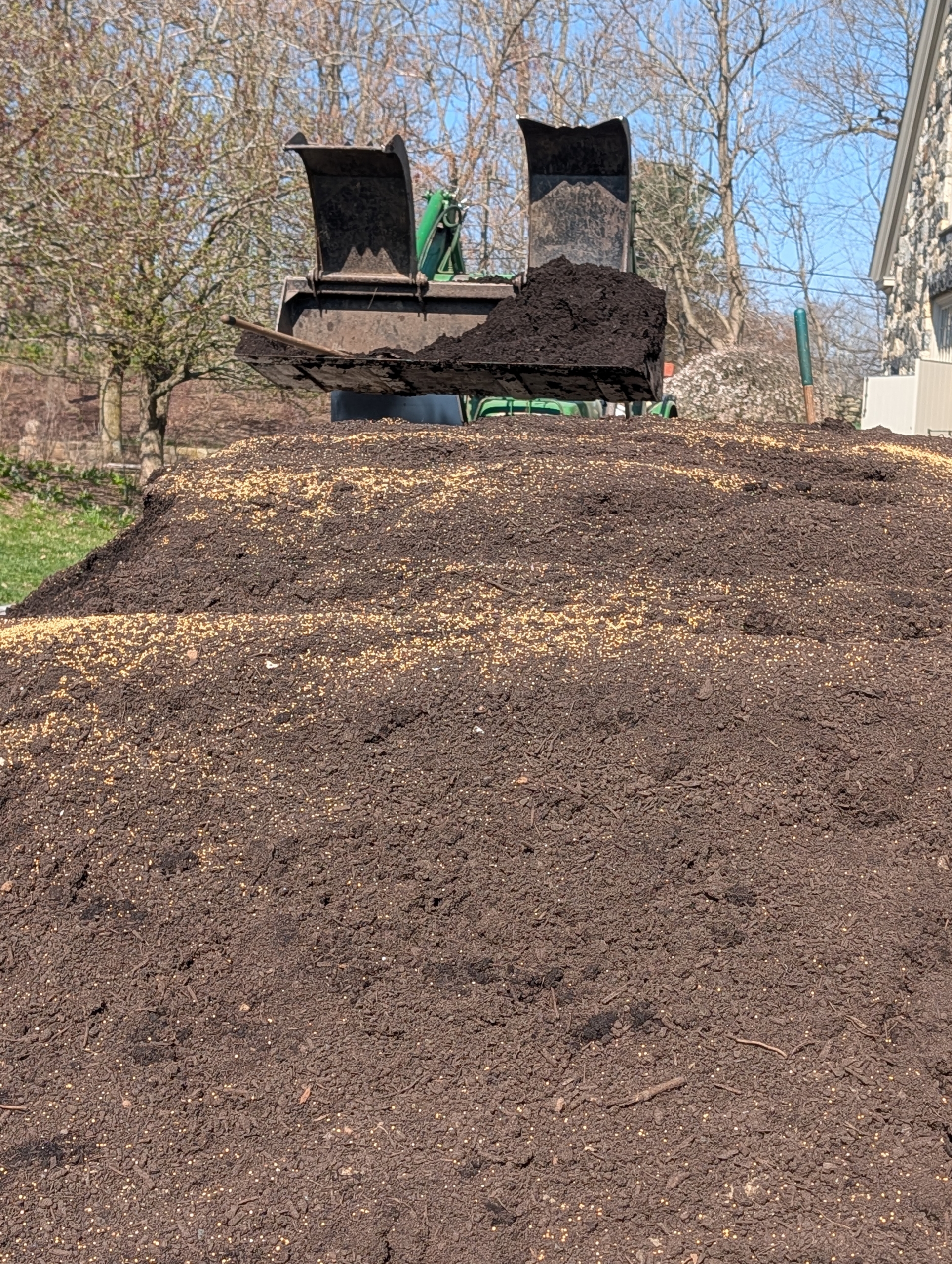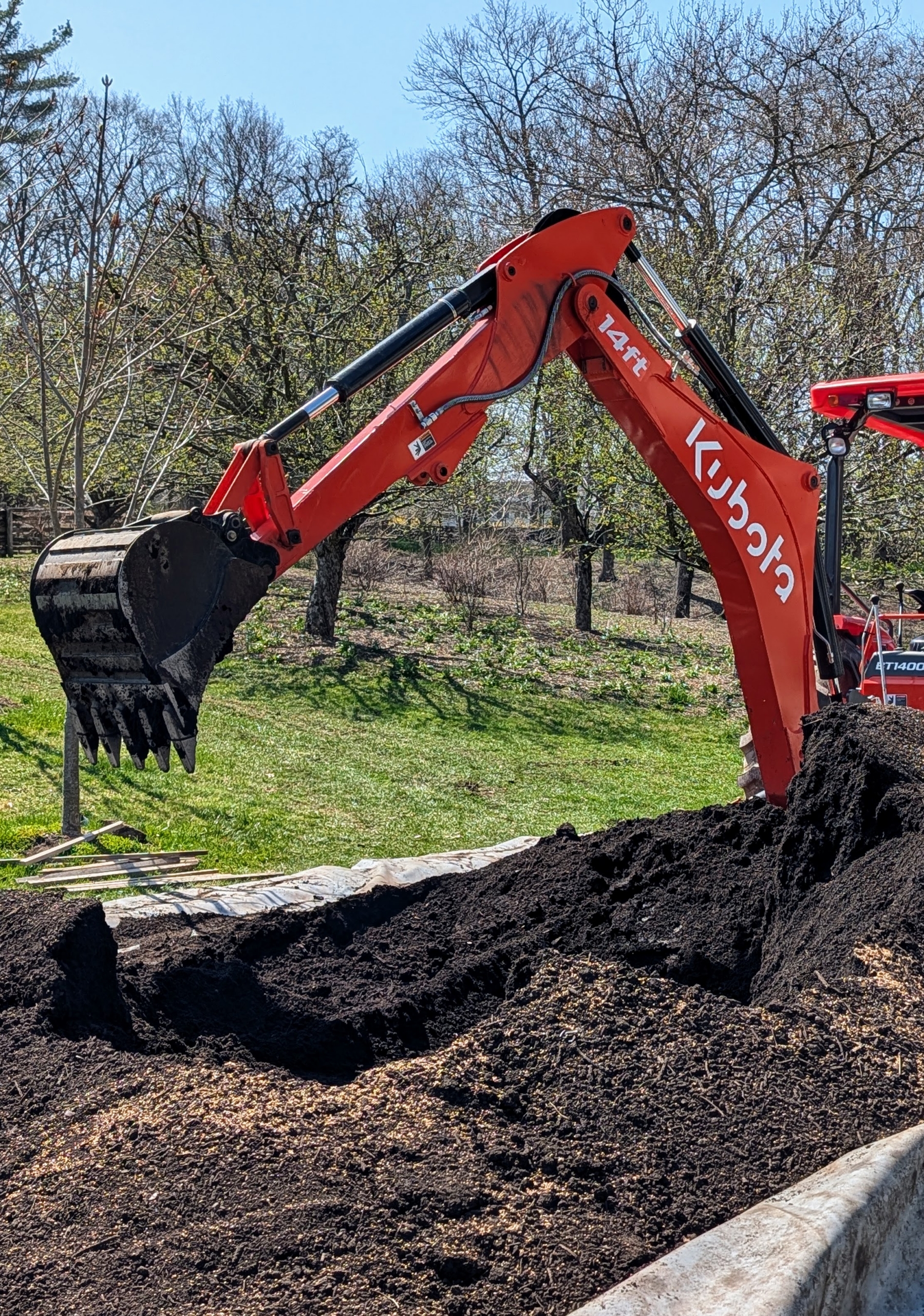 The fertilizer is mixed thoroughly with our Kubota tractor backhoe bucket and loads of soil are transported to the garden.