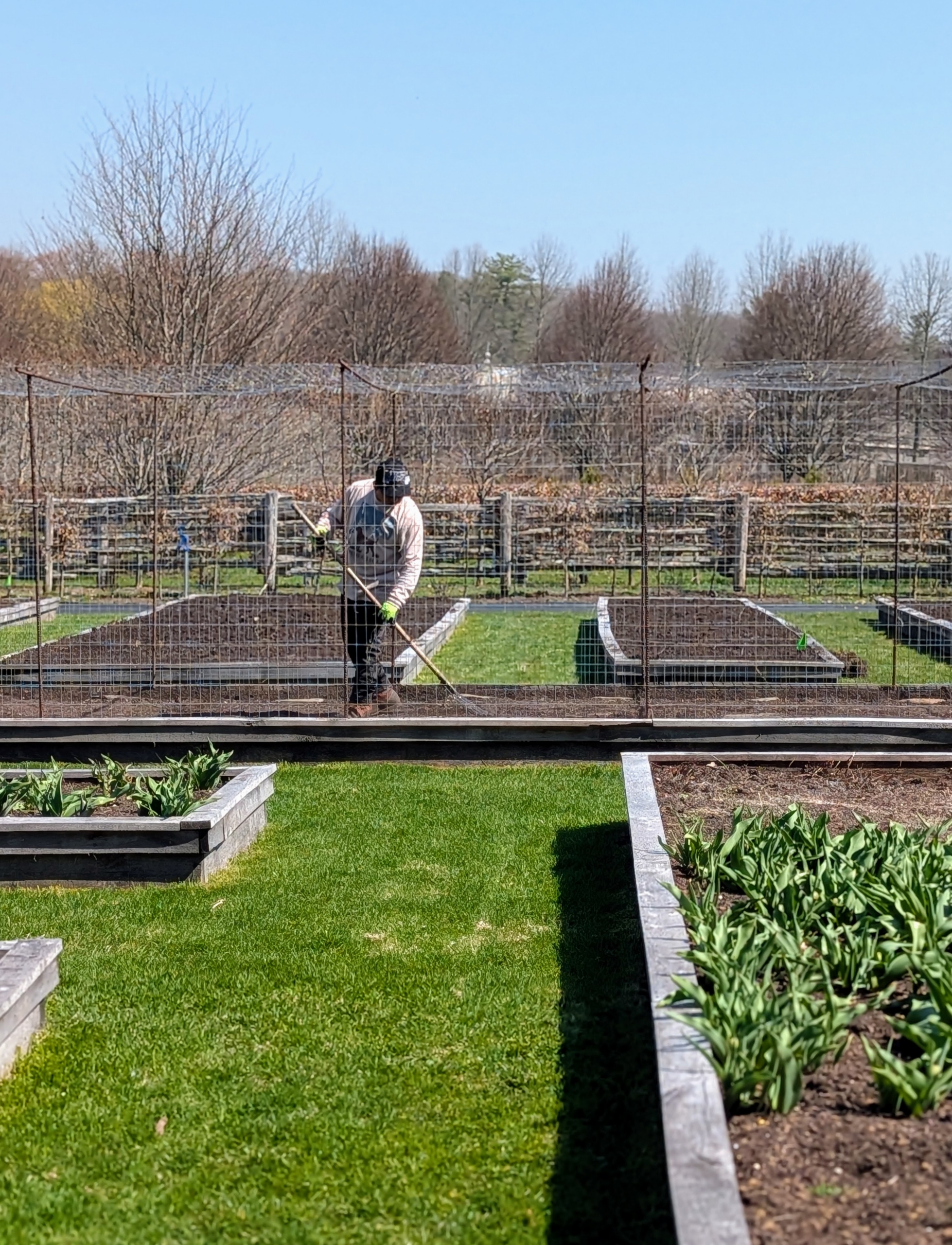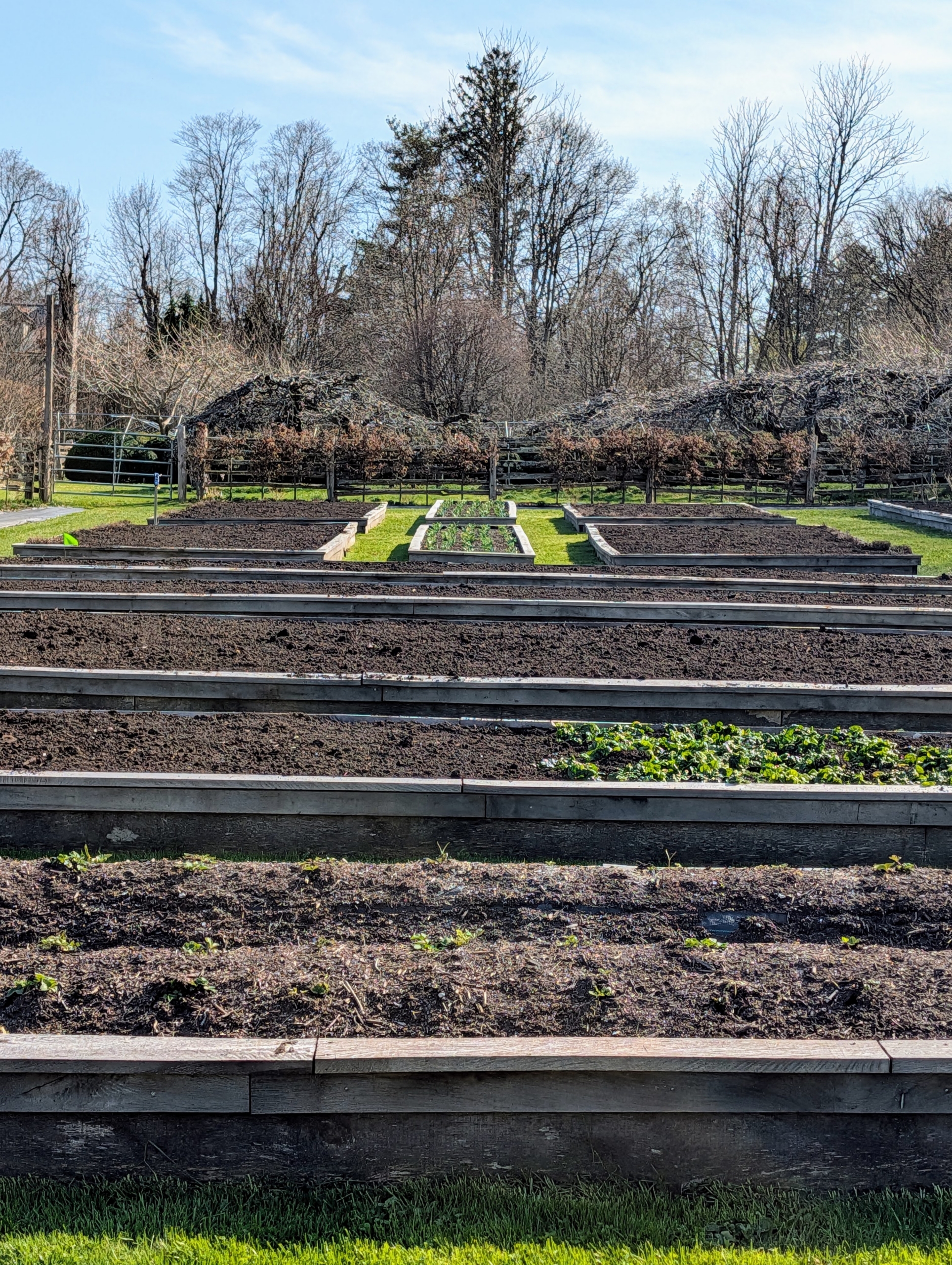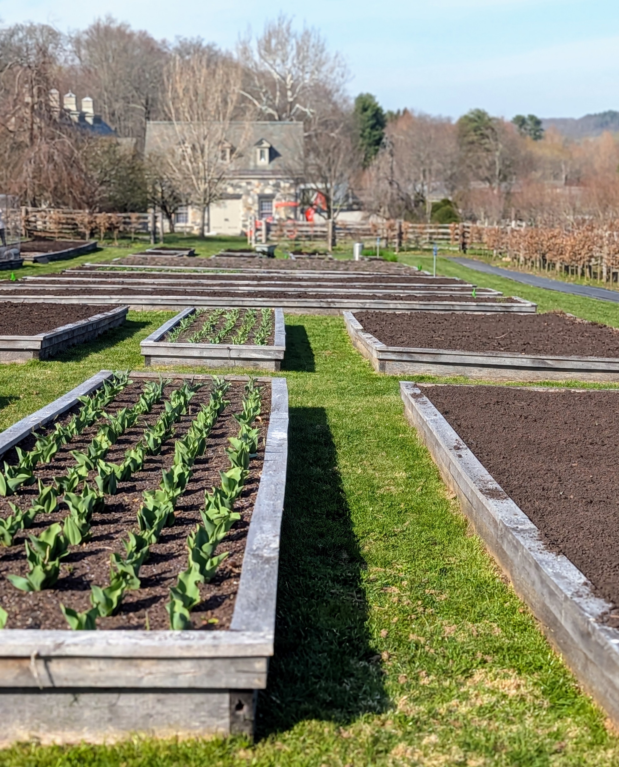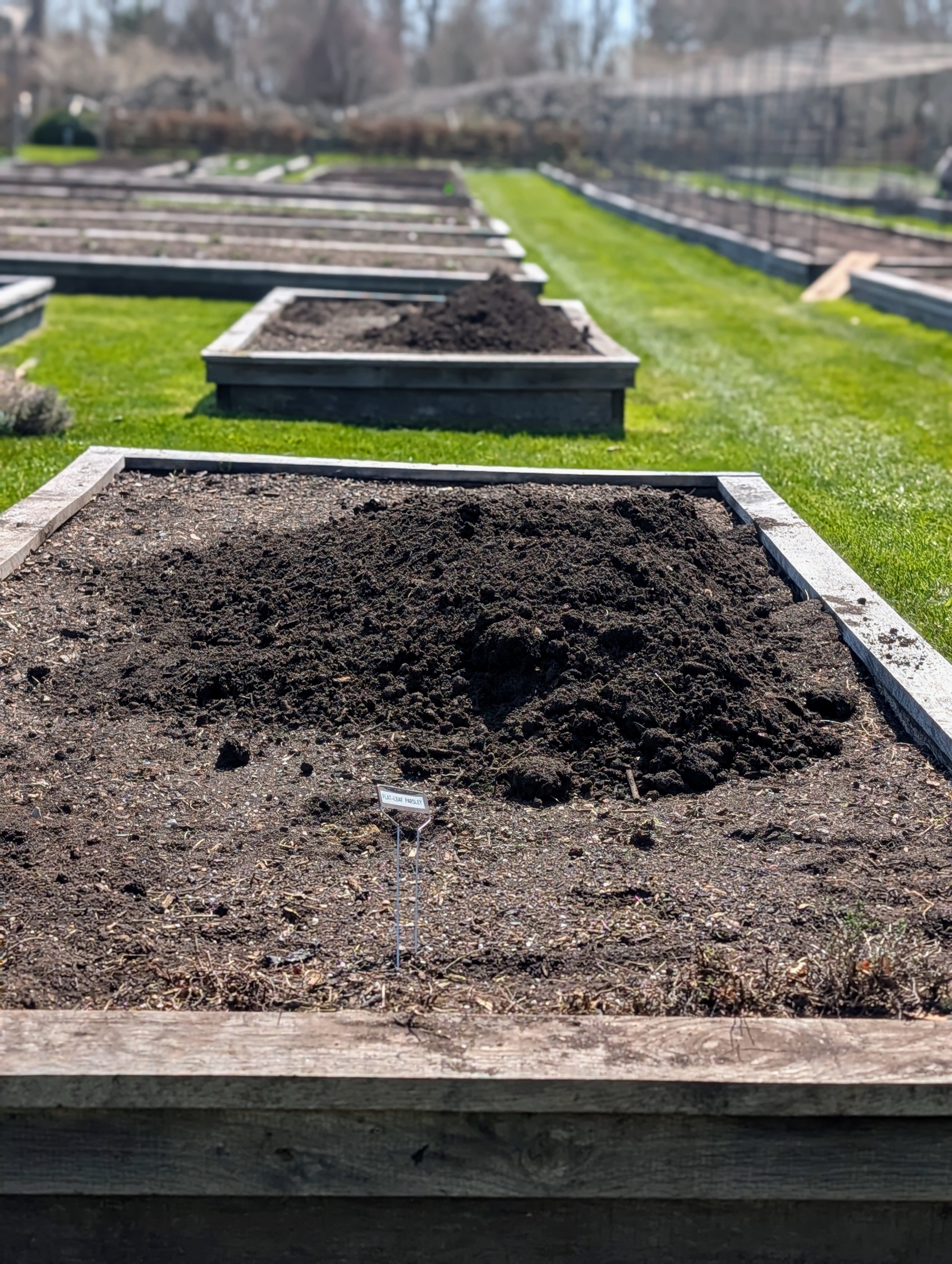 Some beds are already filled with plants, but others are cleared and ready for fresh layers of soil.