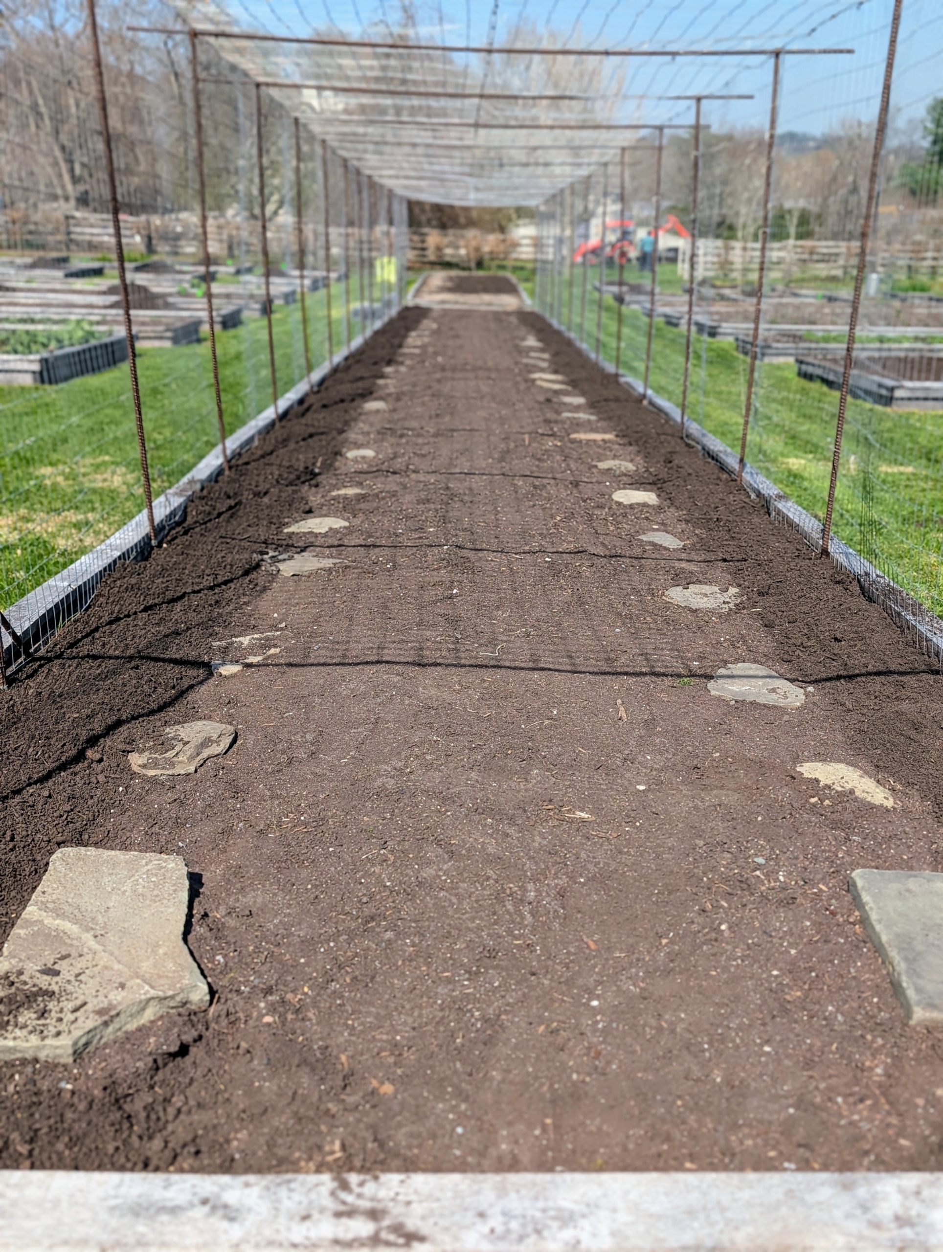 In the foreground is one of my strawberry beds. Strawberries are perennial plants that naturally enter a dormant state during winter. Dormancy allows the plant to conserve energy, protect the roots, and prepare buds for fruiting in the next season. There’s still lots of planting before all the beds are full, but everything is off to a great start!