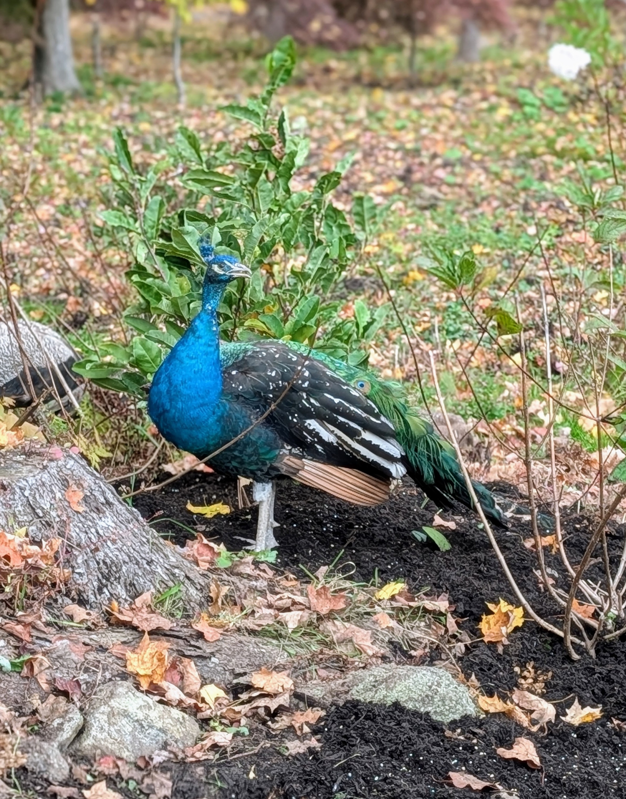 It doesn’t take long before my handsome peacocks find the new bed. I think this “blue boy” approves.