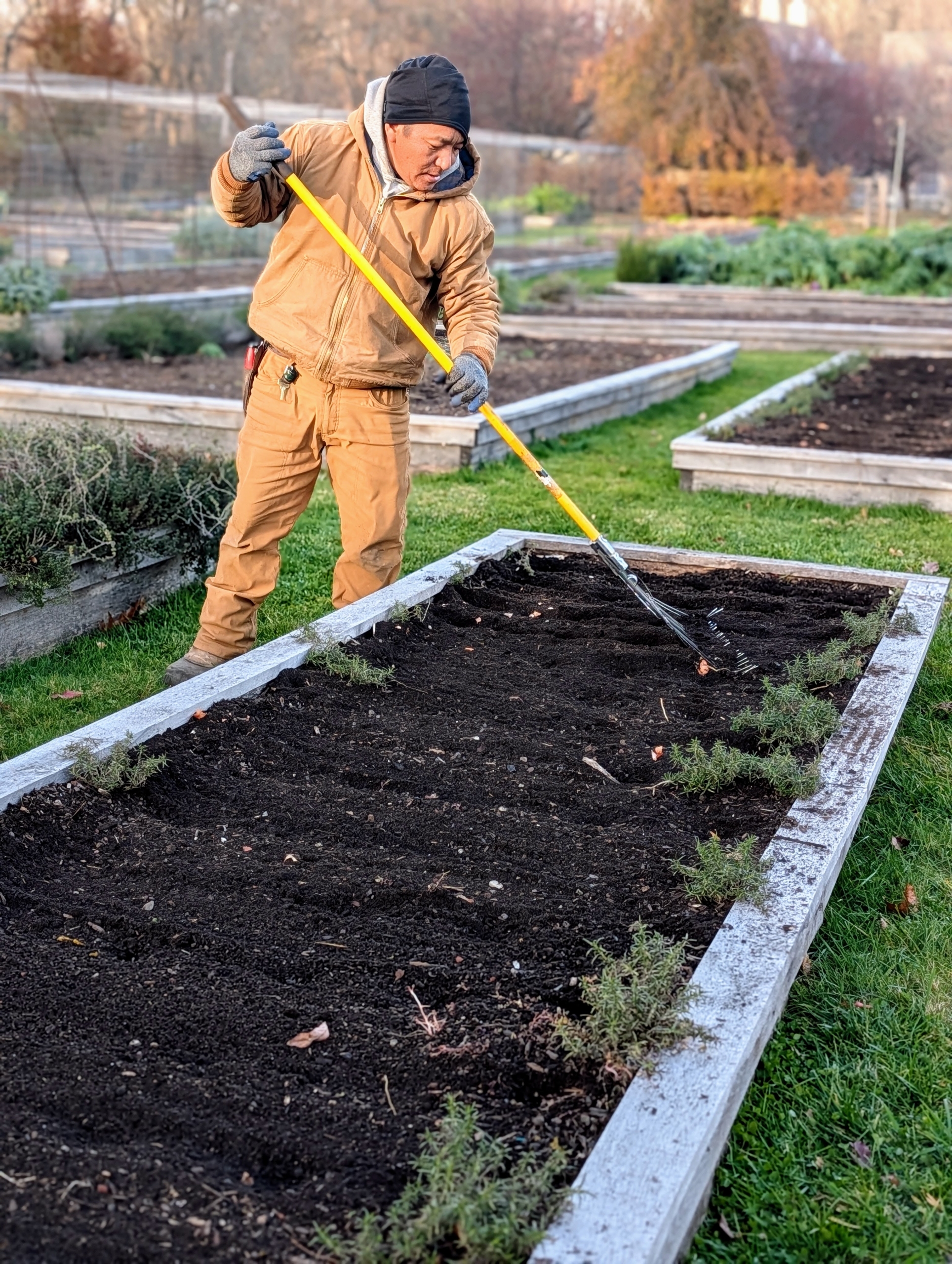 - And lastly, Phurba rakes the bed lightly again to mix in the fertilizer. We’ll have a beautiful cutting garden of colorful tulips come April – I’ll be sure to share the photos. Are you planting your bulbs this weekend?