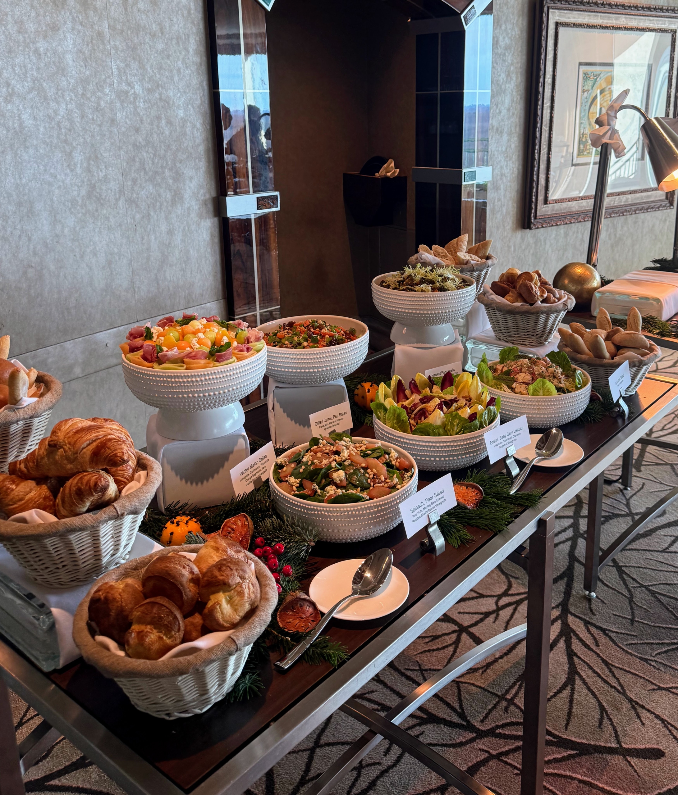 We all gathered for lunch at Foxwood’s brasserie, Vue 24. The menu included a variety of fresh salads, roasted chicken, beef tenderloin fry bread, seared tautog, shrimp scampi bucatini, and an array of holiday desserts.