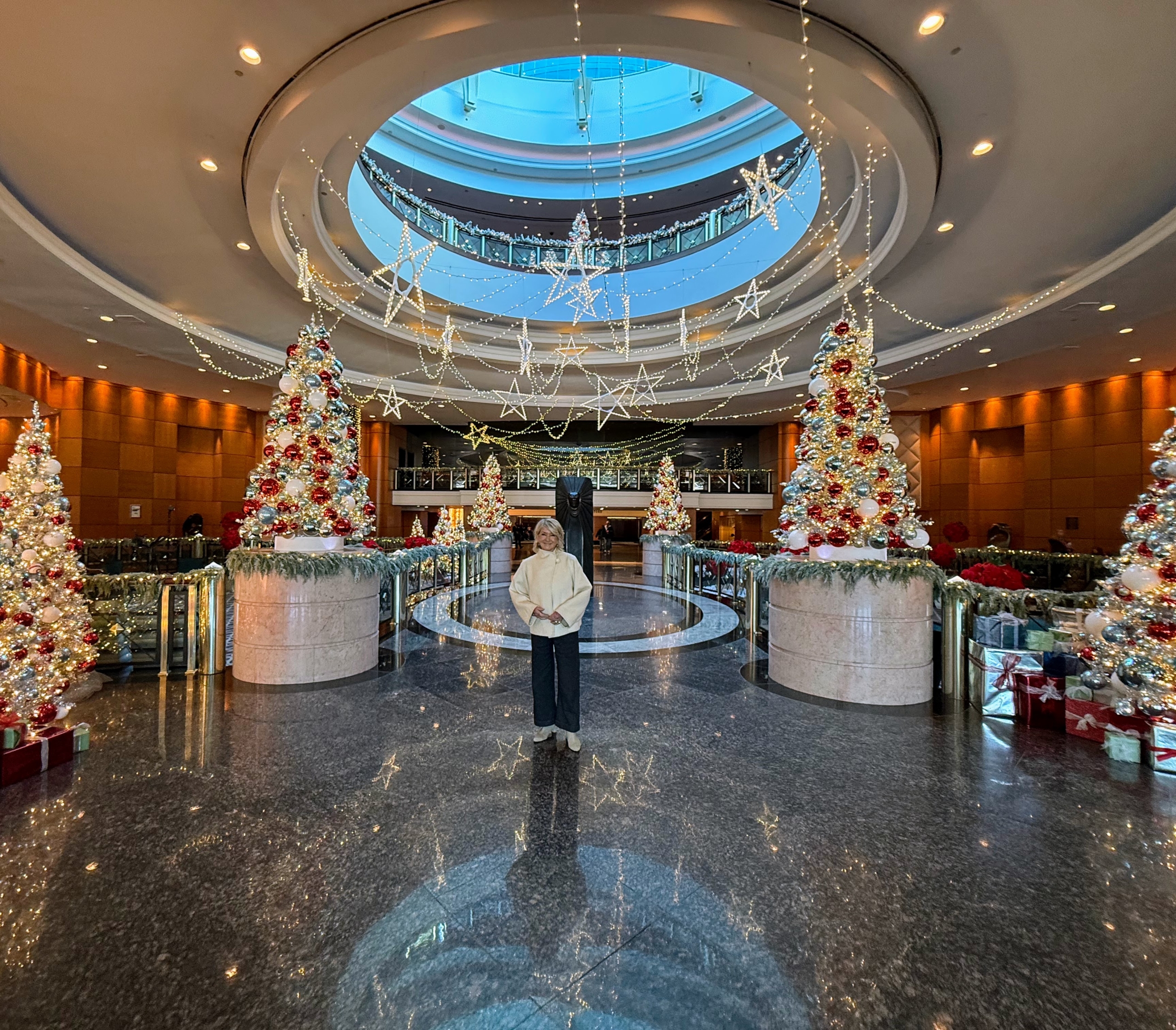 I hope you’re all enjoying this holiday season. Here I am at Foxwoods Resort Casino, owned by the Mashantucket Pequot Tribal Nation. It was such a pleasure to design the Foxwoods lobby for the holidays.
