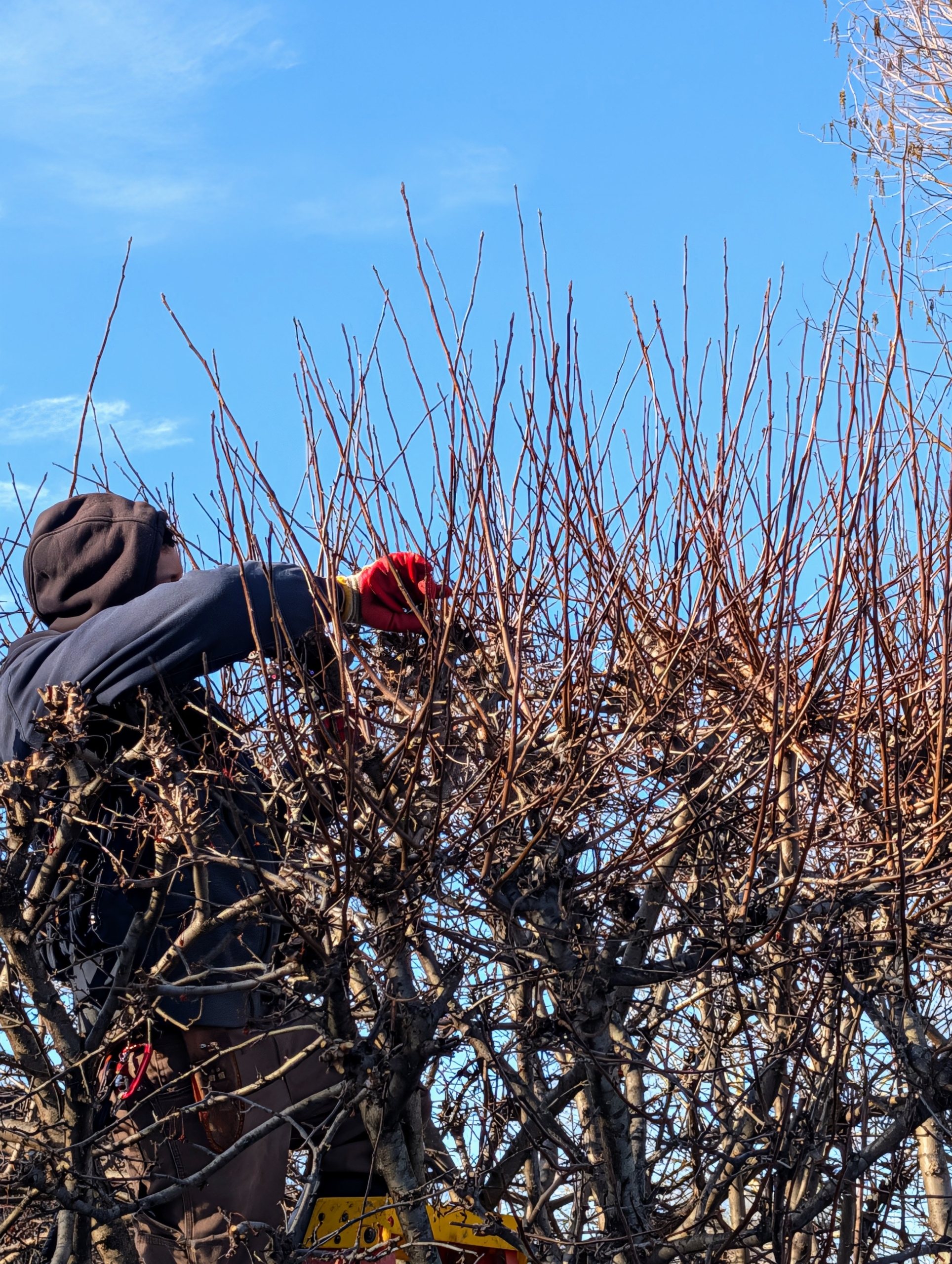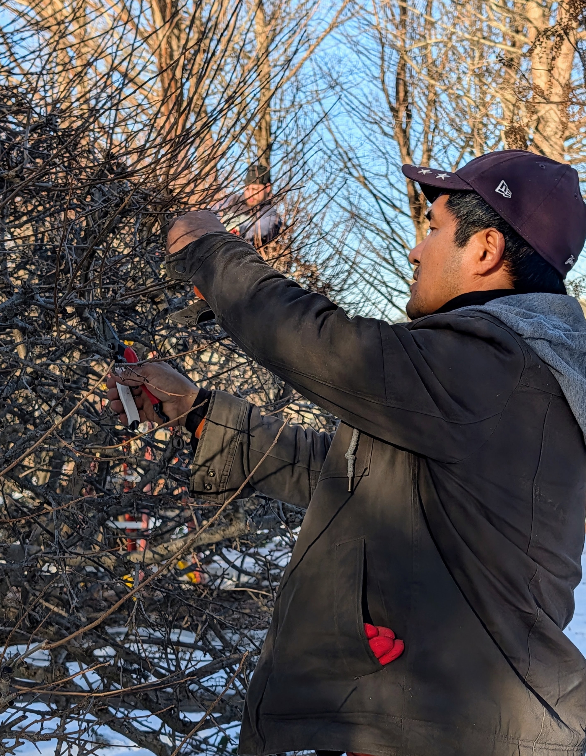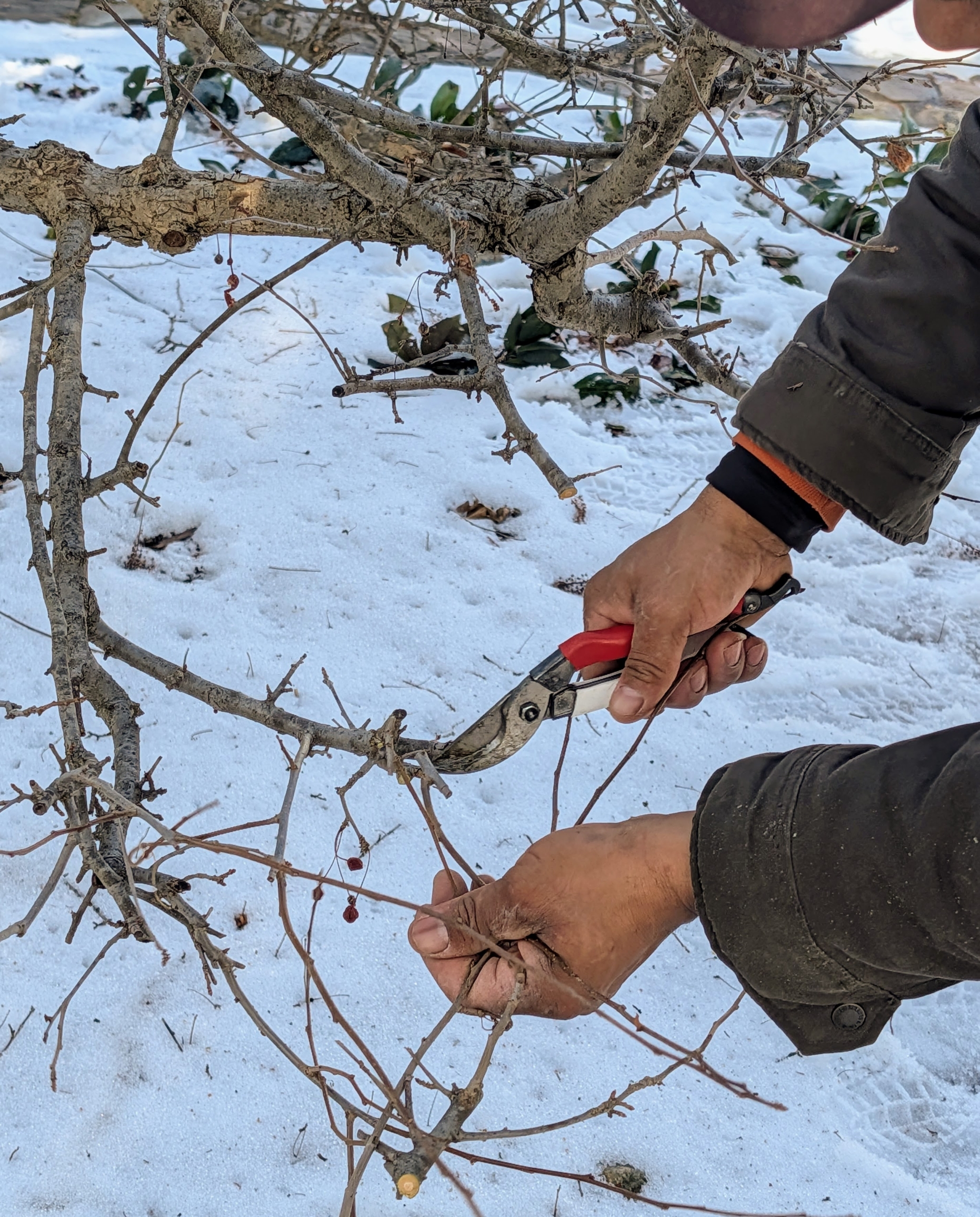 As Alex works from the top, Pasang works from the bottom of the crabapples – it’s efficient and fast.