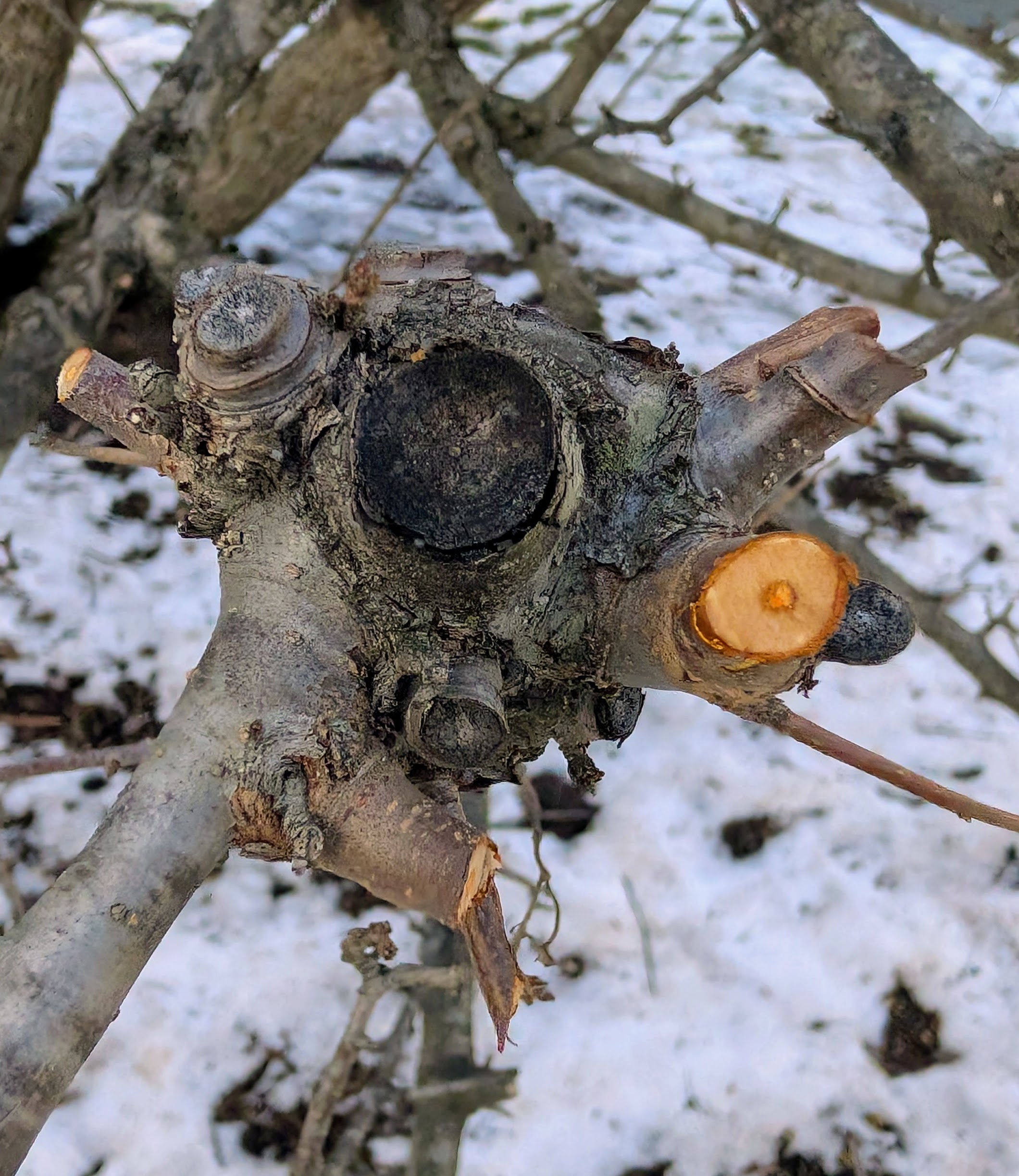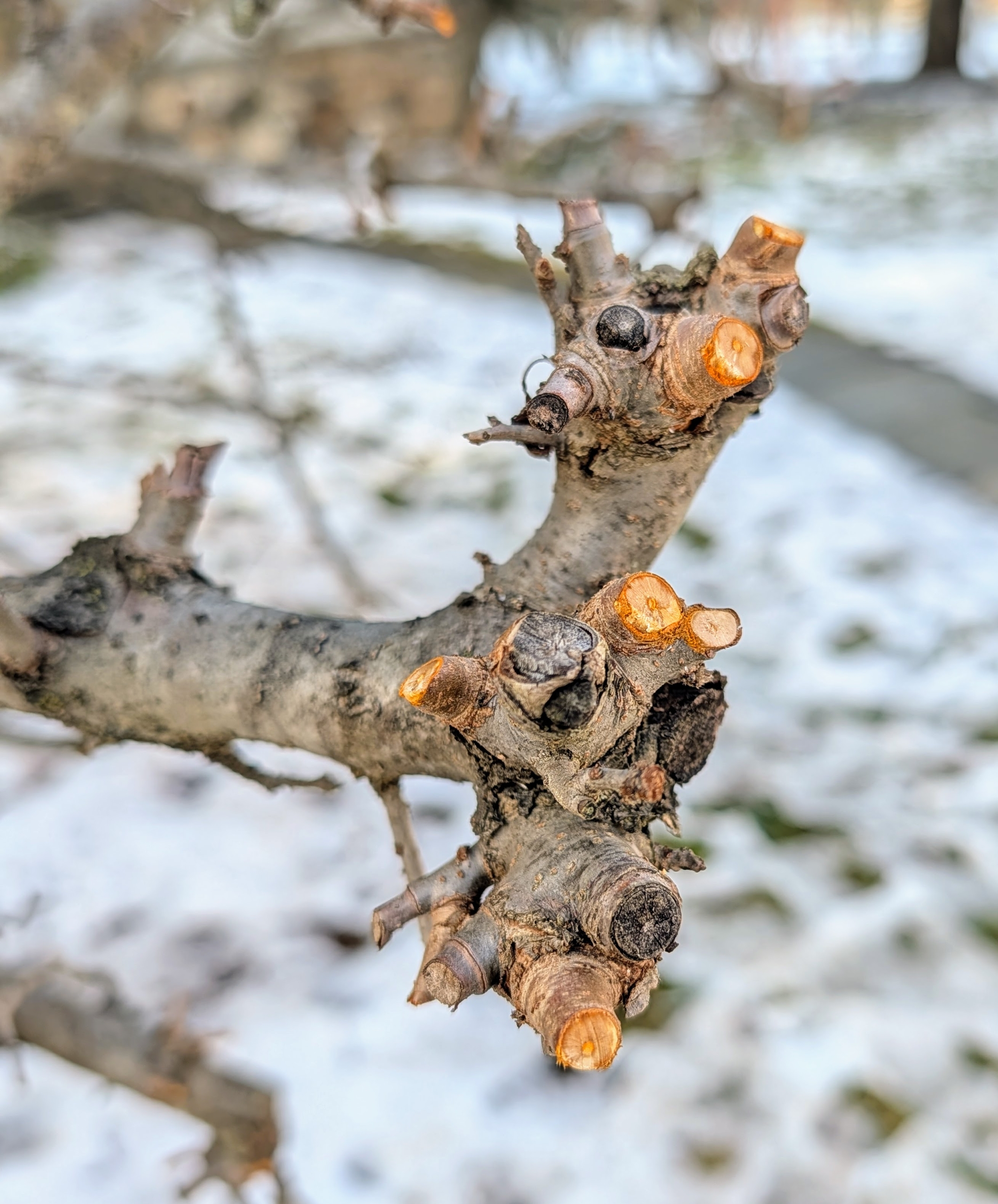 These crabapples are pruned every year. Here are some older cuts.