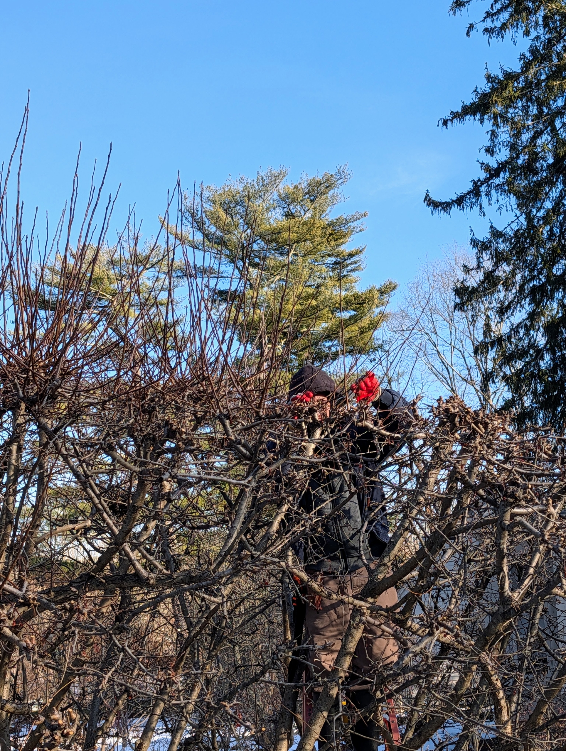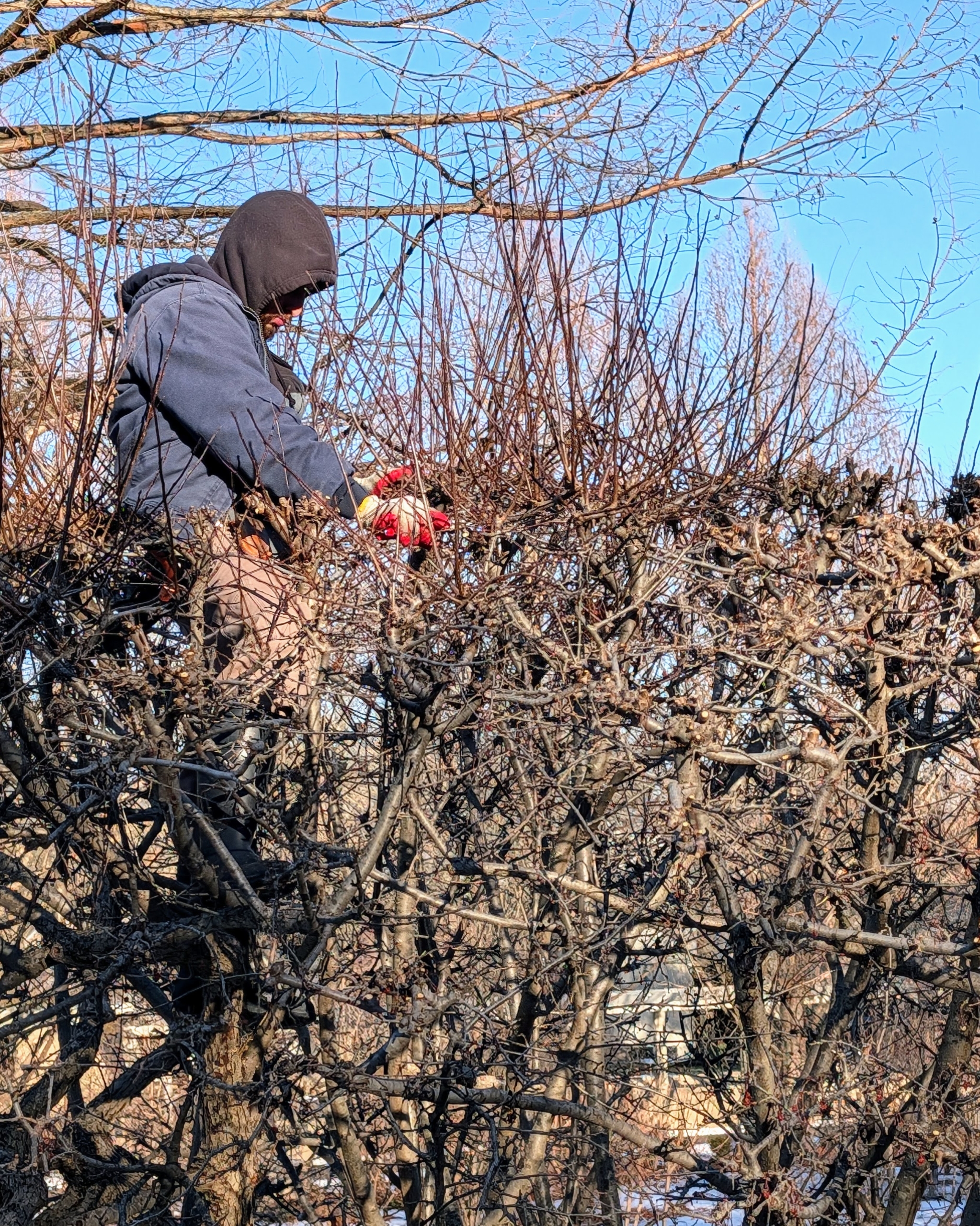I'm getting a lot of excellent wintertime pruning done at my farm.