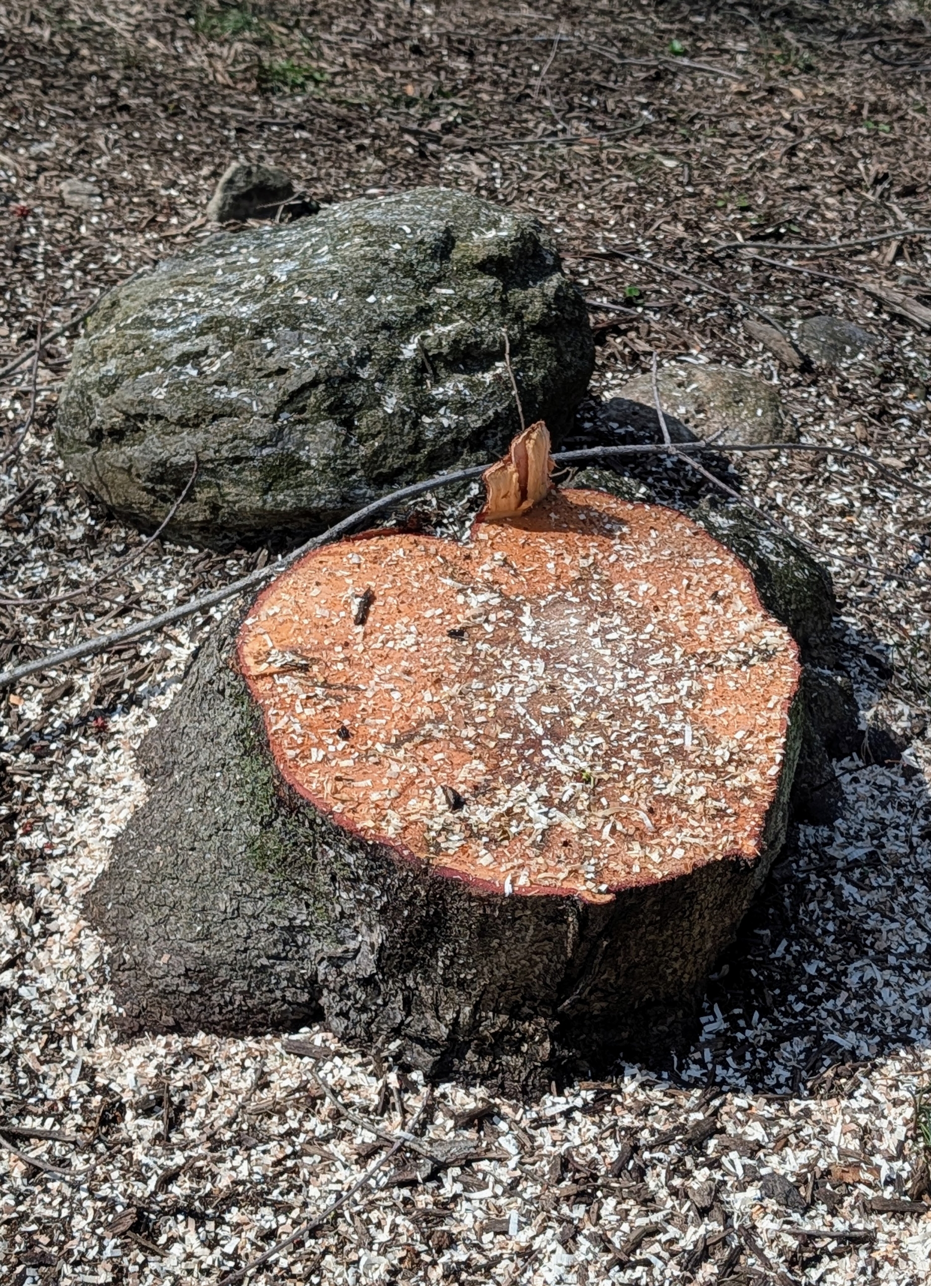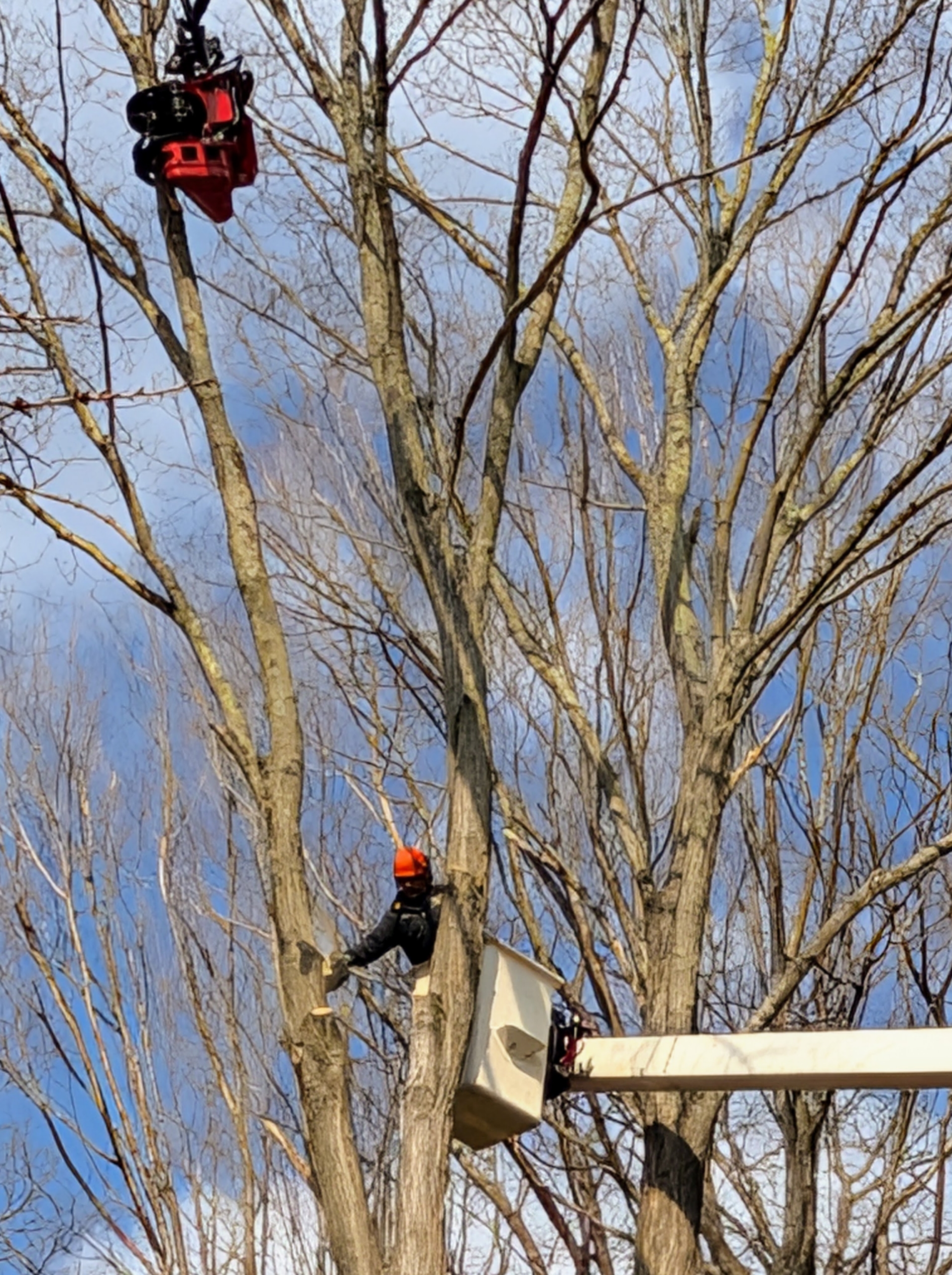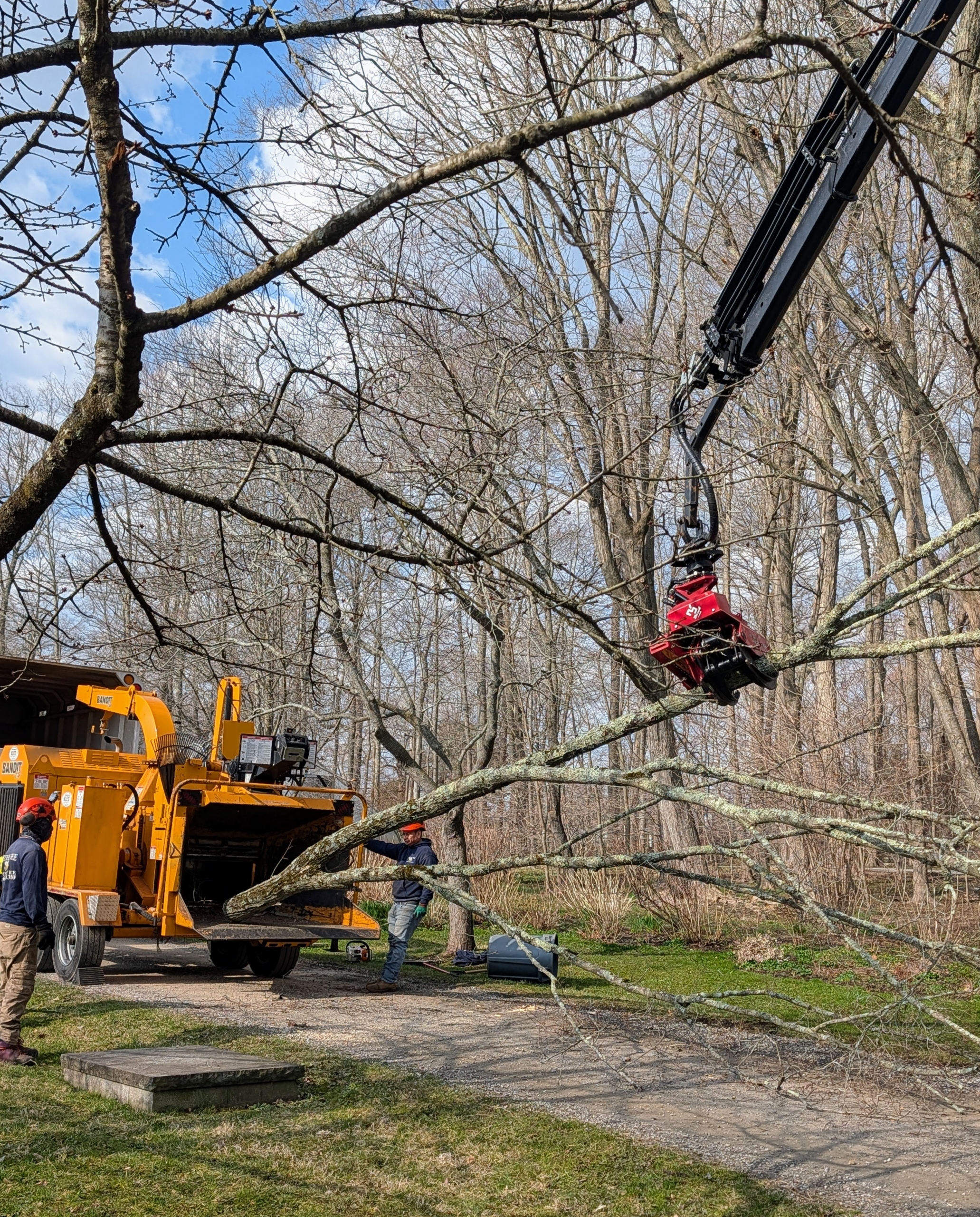 Discarded branches are neatly placed on a sheet nearby. This will be easy to take out after the project is done.