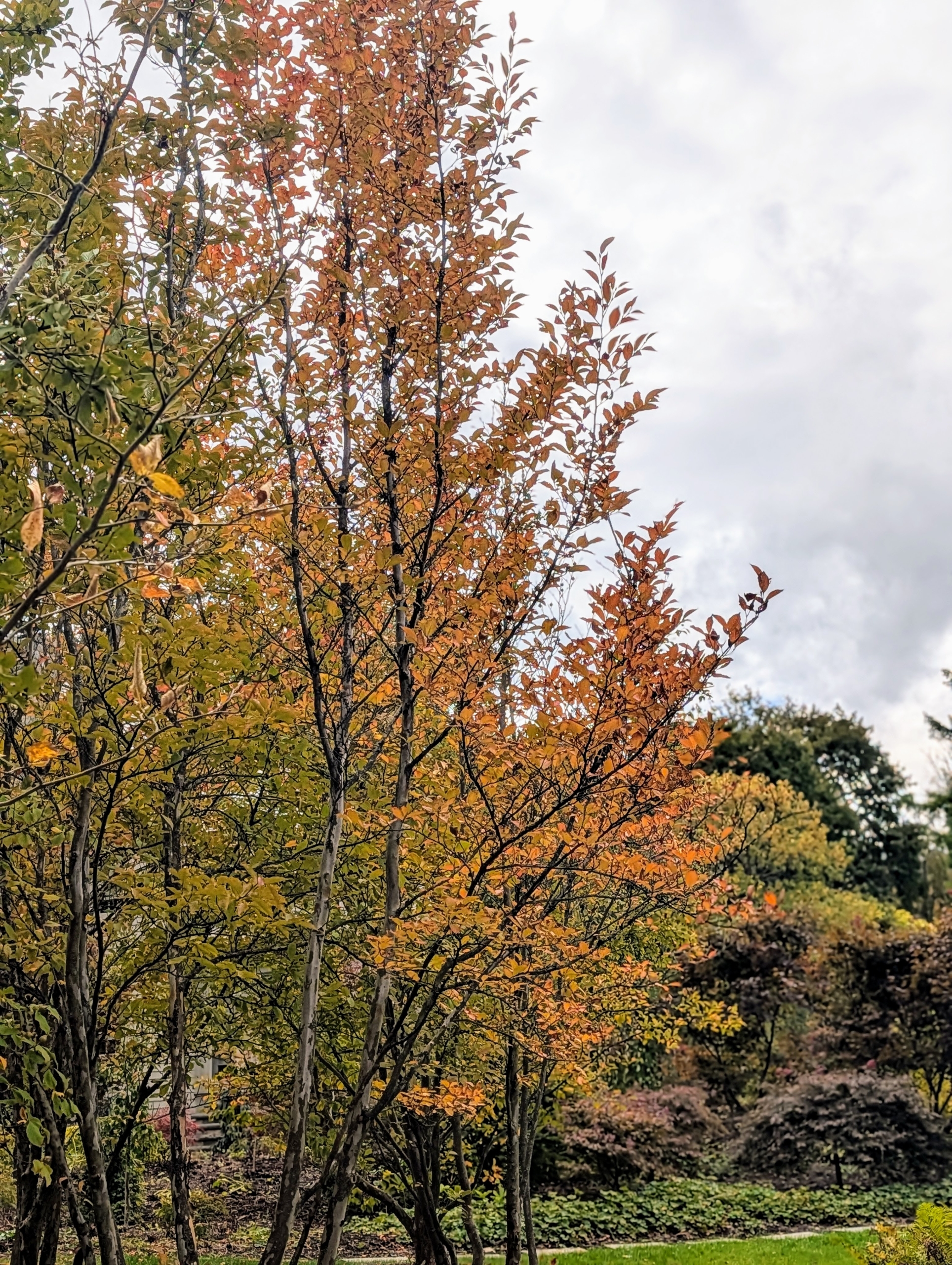 - This is a young Japanese Stewartia just behind my gym building. Native to Japan, this tree is known not only for its brilliant shades of orange that emerge in fall, but also for its interesting exfoliating bark and delicate blooms.