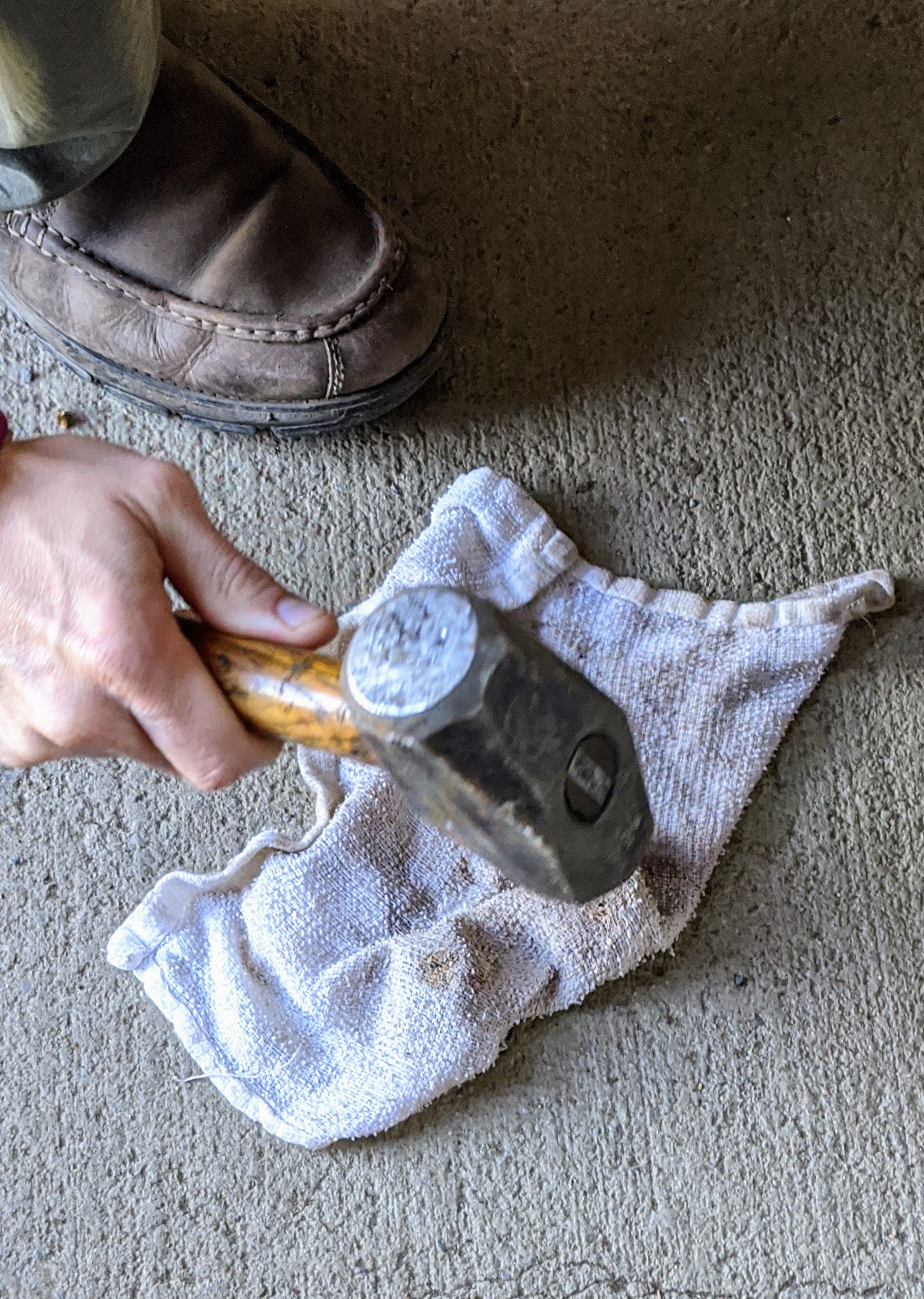 - To open black walnuts, place them on the ground pointed end up, and hit them with a hammer until they crack.