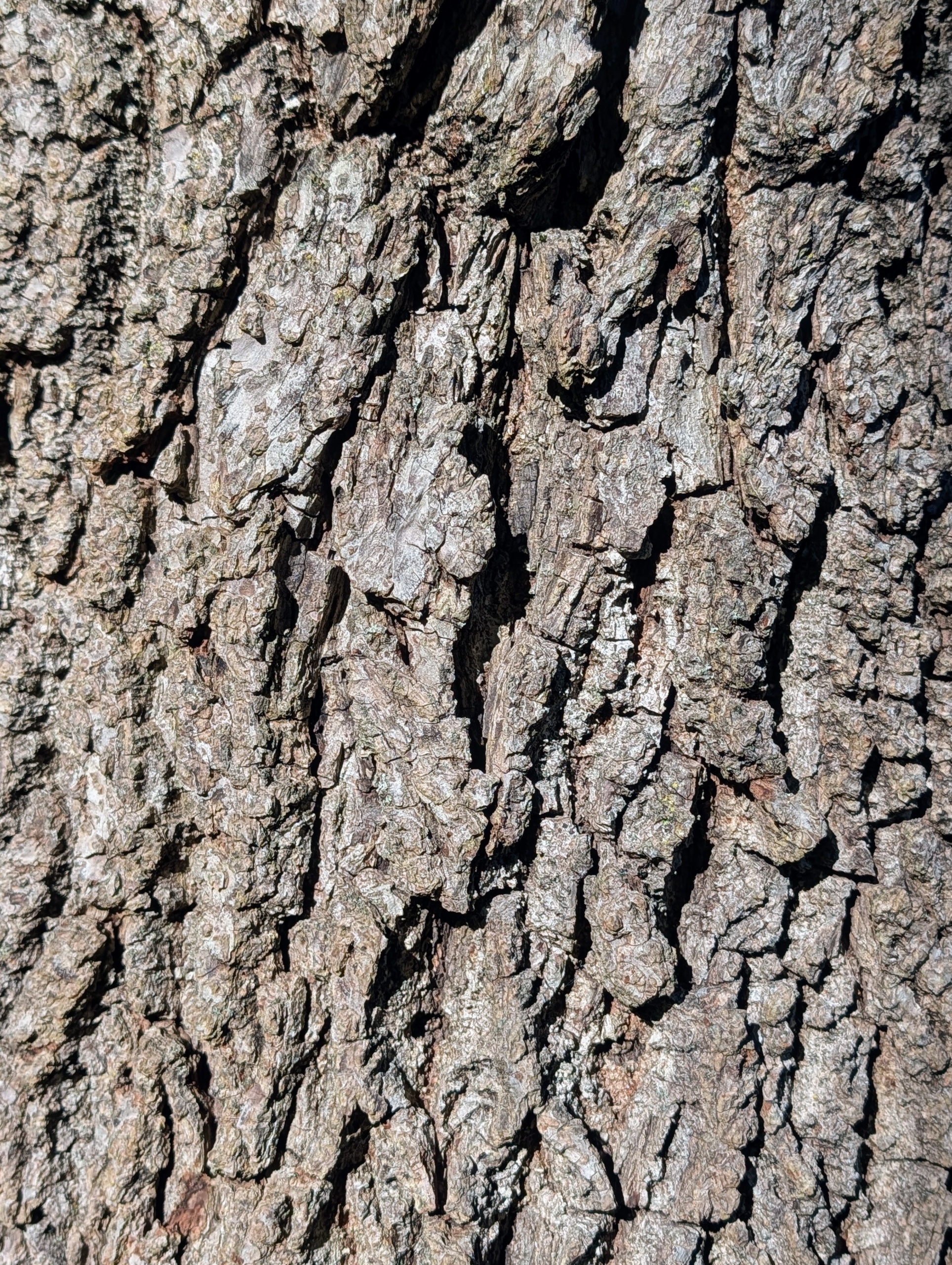 - The bark of a black walnut tree is dark gray to black with deep furrows and a distinctive diamond-shaped pattern. The tree is also prized for its durable dark wood, often used for furniture and veneer.