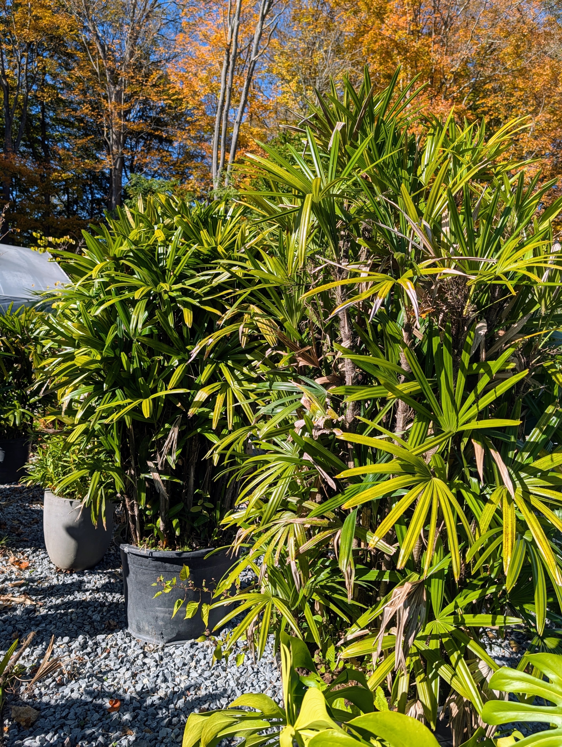 - Phurba brings in another palm. If one has room to store them, it is always a good idea to save the plastic pots from the nursery. These containers come in very handy and can be used from year to year. I remove some of the potted plants from their decorative vessels and store them in plastic.