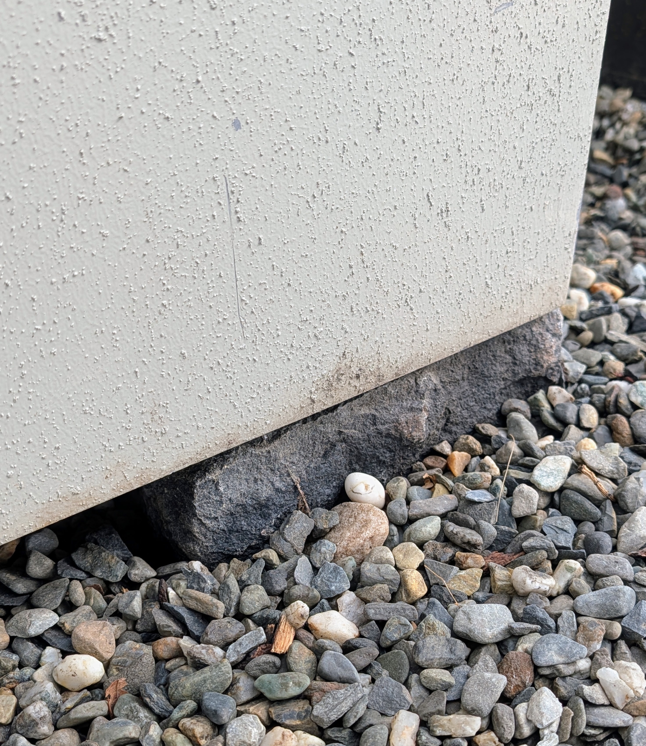 - As containers are positioned, bricks or wood shims are placed underneath for drainage.