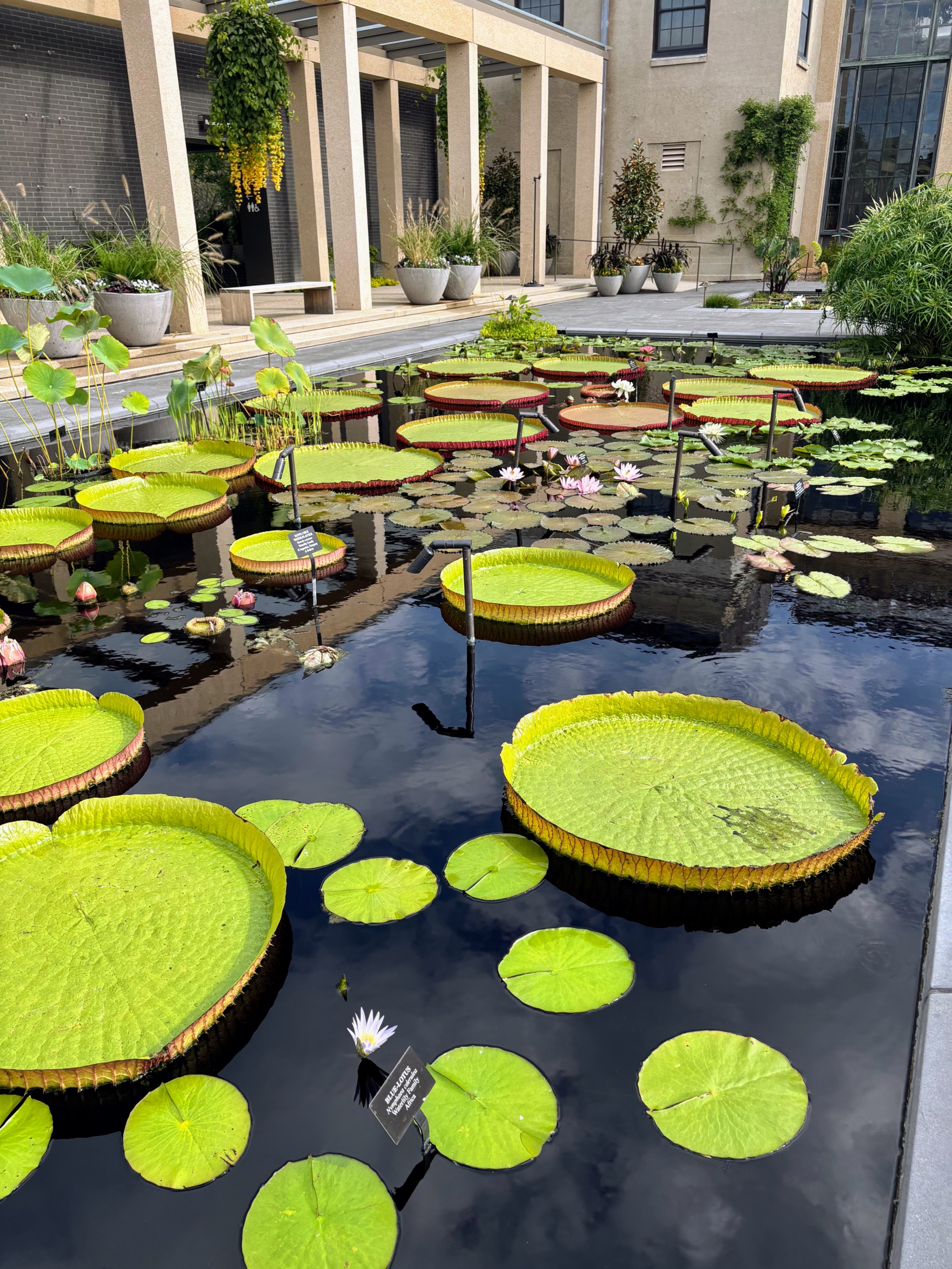 - I was excited to see all the water lilies at Longwood’s newly renovated Waterlily Court. Victoria cruziana and Victoria amazonica were crossed to create these Longwood hybrids. (Photo by James Sutton)