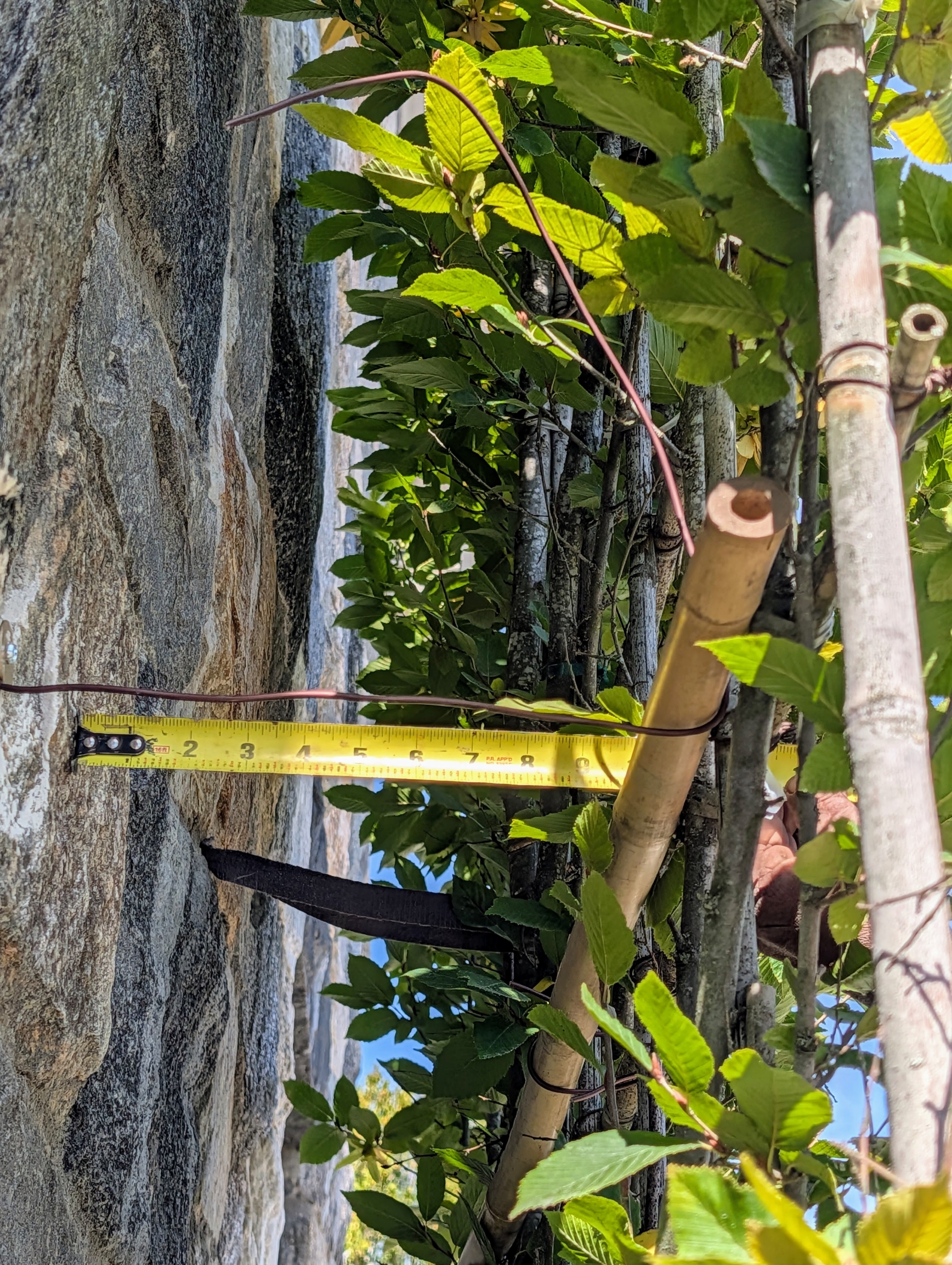 - Next, Pete measures a piece of bamboo to the width of the trellis.