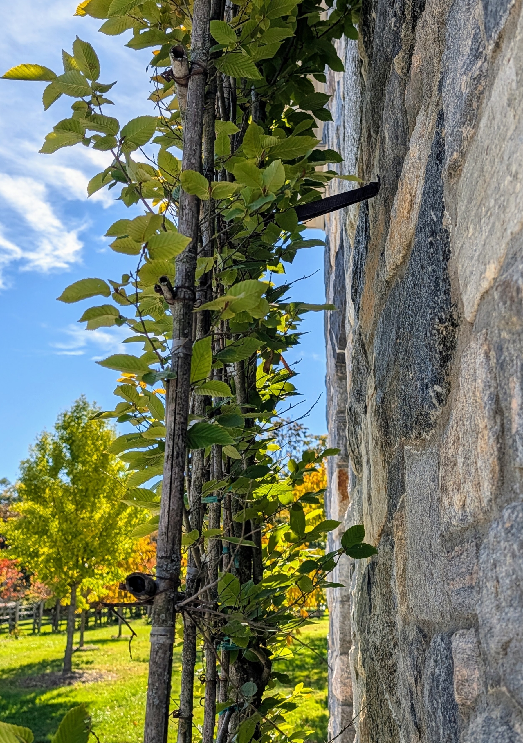 - I planted these espaliered hornbeams a year ago. These trees are thriving under the full sun, but winter will be here soon, and I want to be sure they can withstand any strong winds.