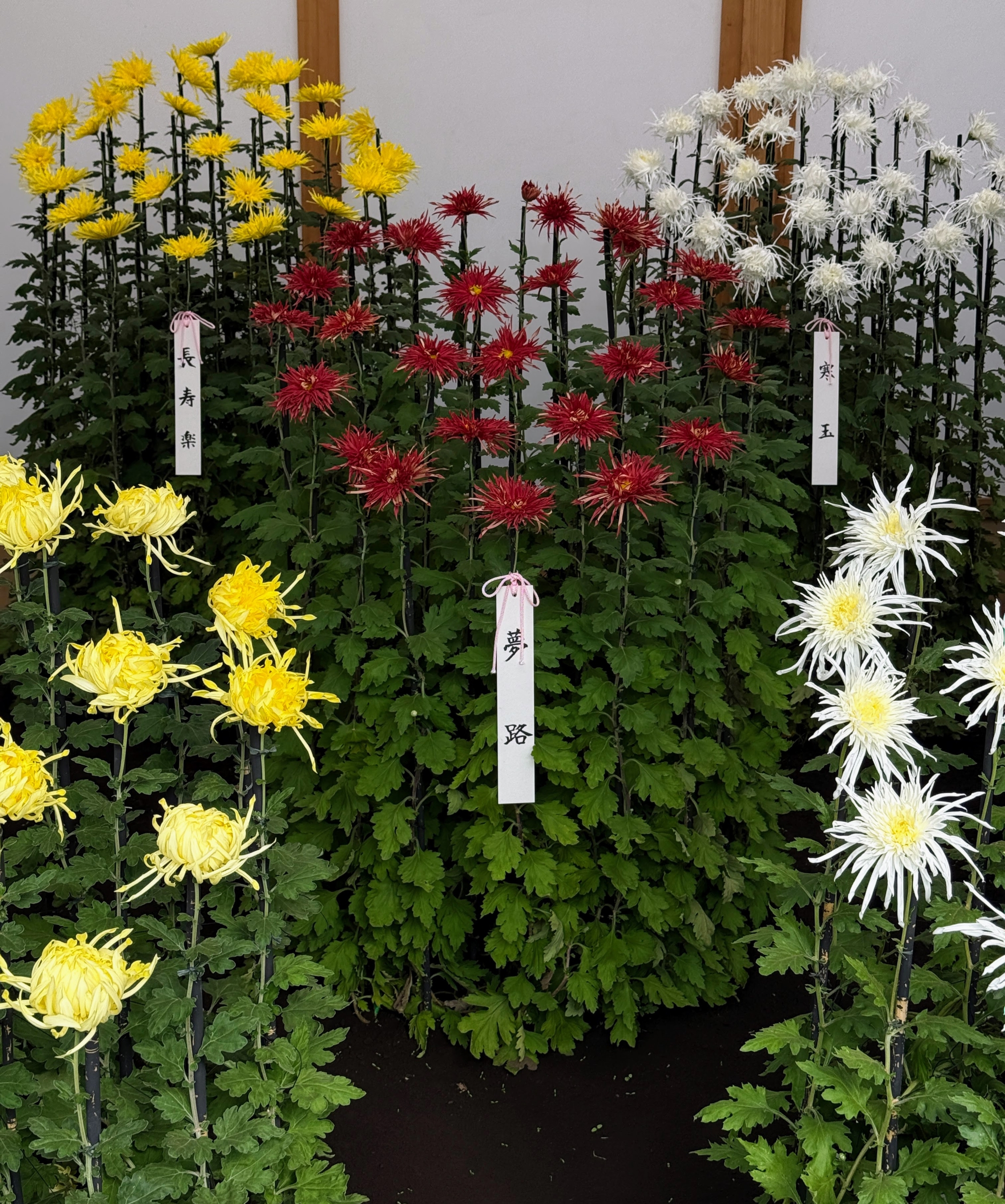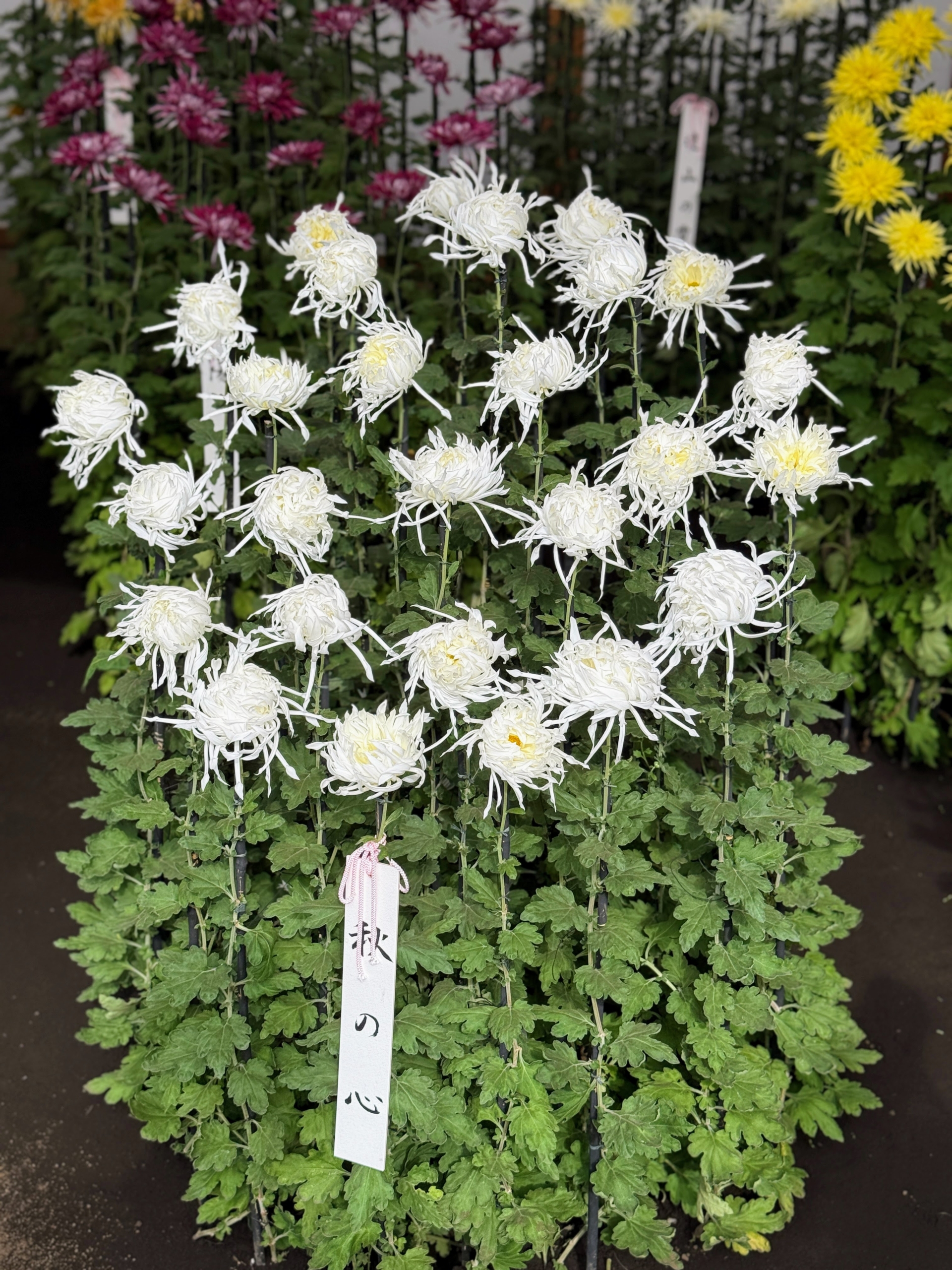 - Here in this tent – Ise, Saga, and Choji varieties are displayed. Choji are trained to display one central bloom that is encircled by six others.