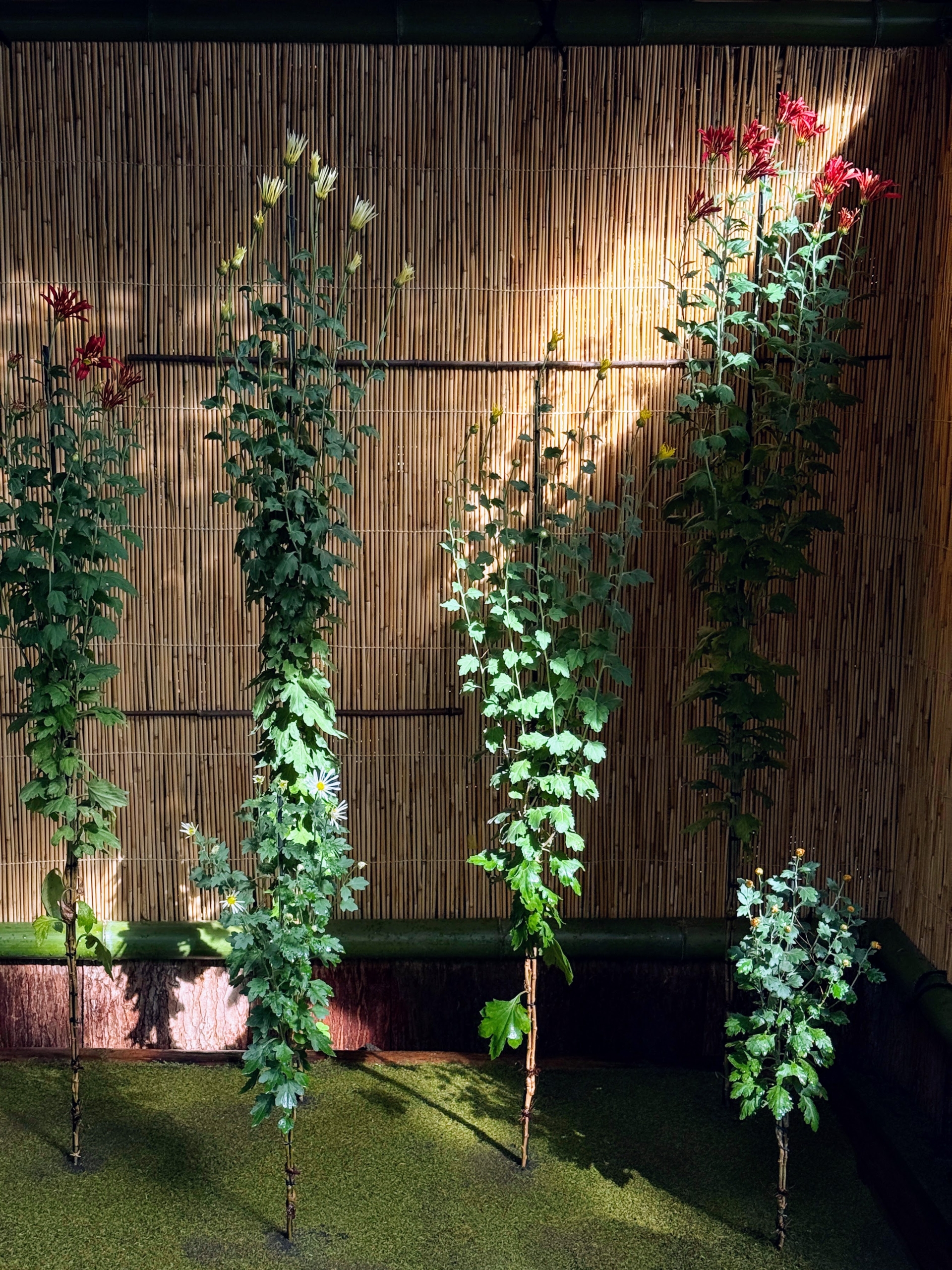 - If you look closely, you can see the single stem that produced this entire Ozukuri. Also visible is the intricate frame used to train and support the plant.