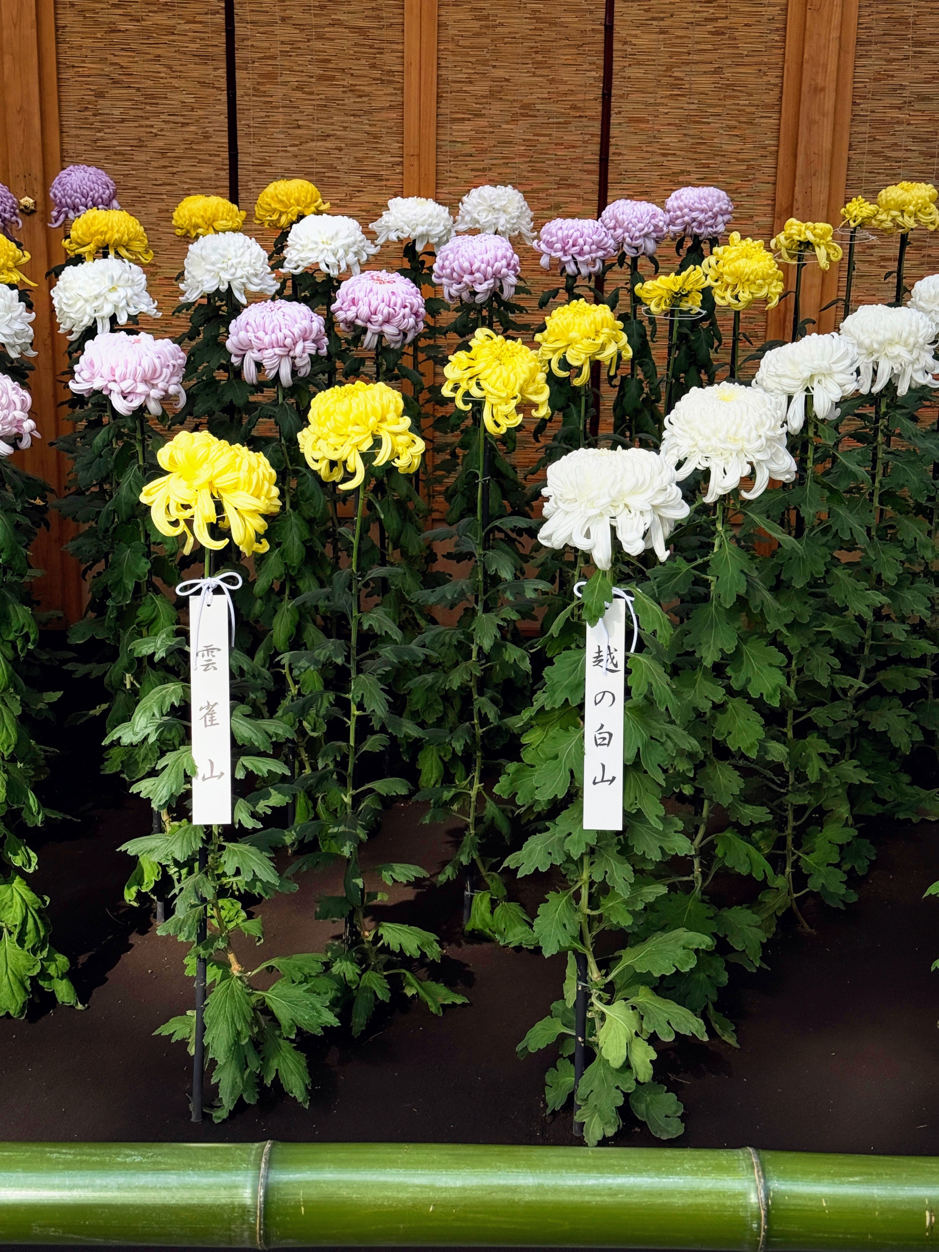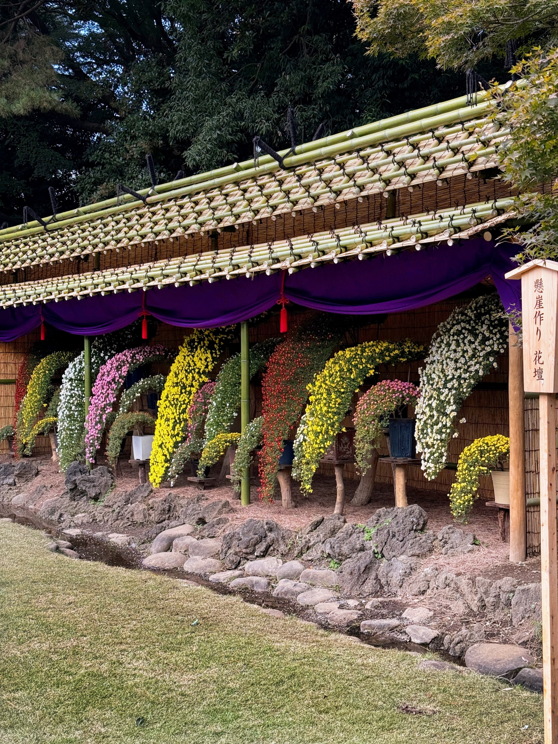 - Located in the heart of Tokyo, the garden provided some much welcome respite from the hustle and bustle of the city. The exhibition featured seven huts, called Uwaya, that are specifically used to display these meticulously grown chysanthemums. They are similar to the “theaters” popular in 19th century England used to display auricula primroses. Each of these seven Uwaya showcased specific varieties and methods of training chrysanthemums. The first one we encountered was dedicated to the Kengai style, also known as the cascade style, first created in 1915.