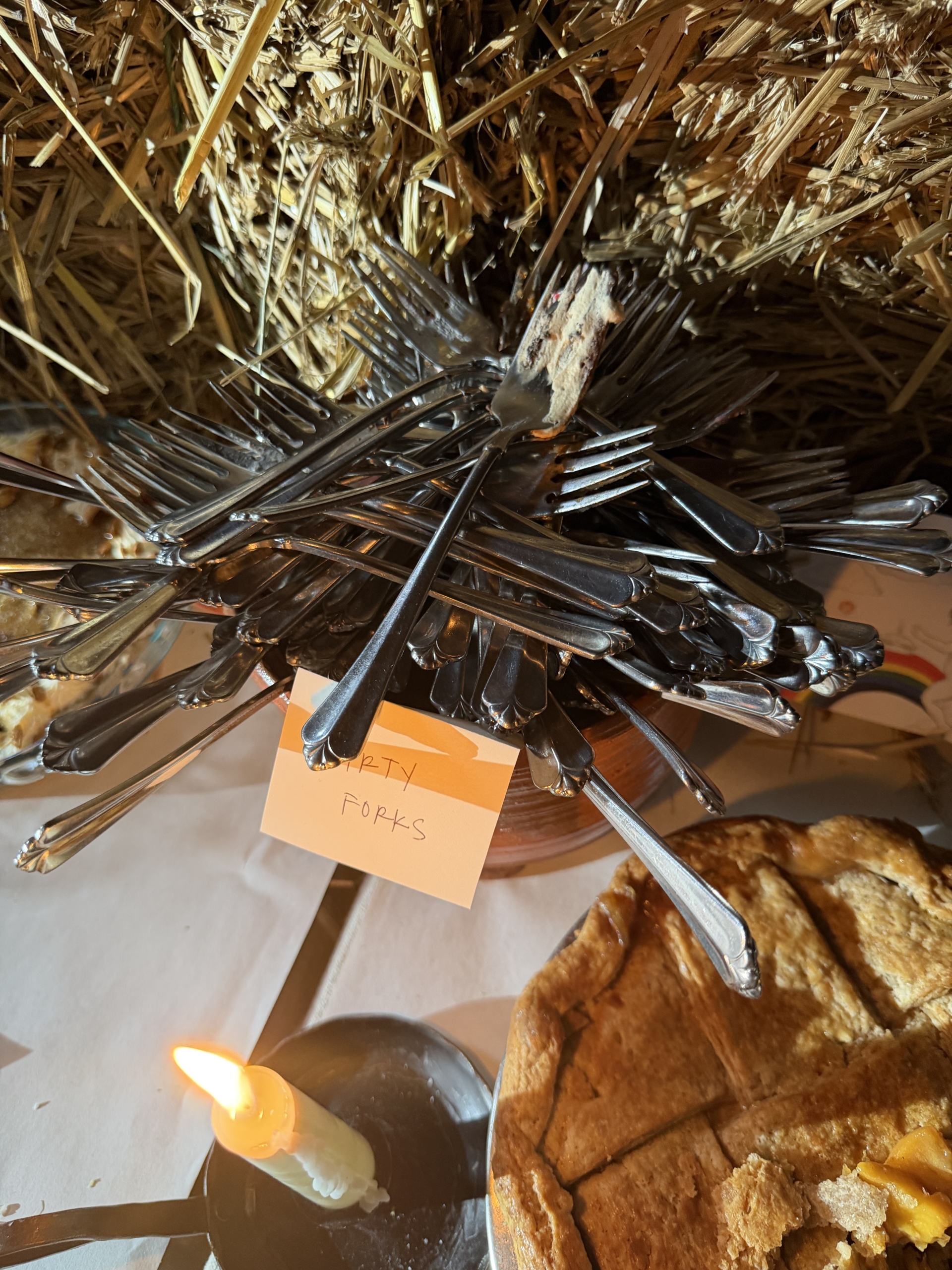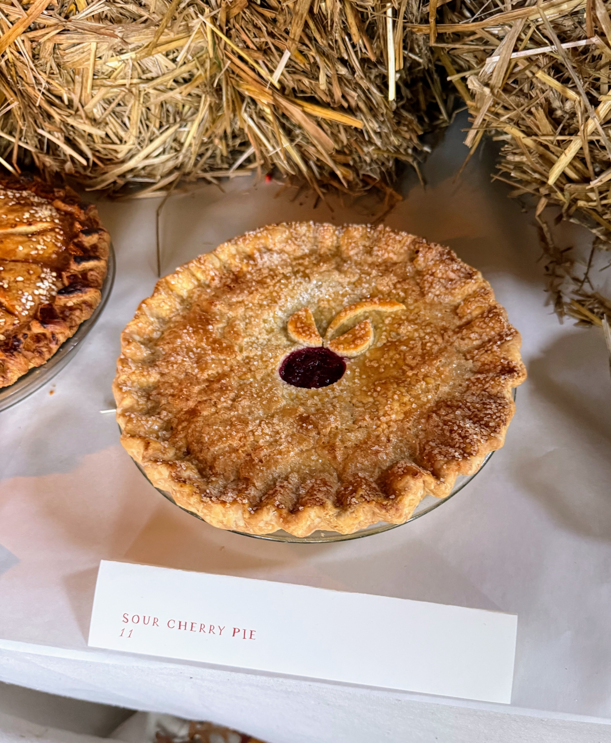 - For the competition, the pies were displayed around the bales. 27 hay bales were ordered from a local farm for the centerpiece. (Photo by Olya Vysotskaya)