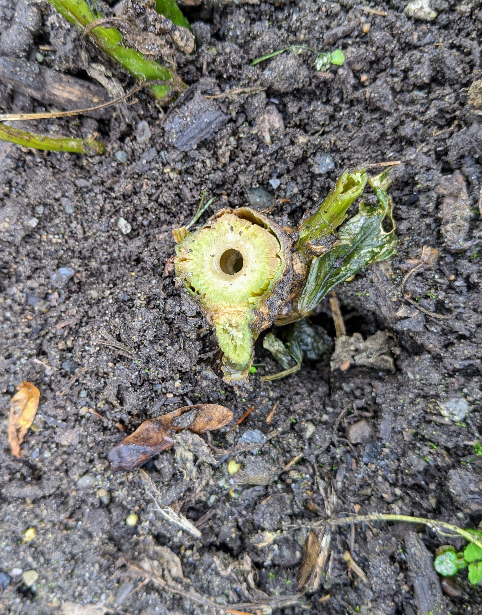 - Once the plants are dried out, they are cut all the way down to the ground. Wait until all the foliage has turned brown before any winterizing. This is important so the plant can gather energy for the following year. It will store starches in the tuber which will fuel the initial sprouting in summer. The best time is a couple weeks after the first frost when they’re well into dormancy yet haven’t been harmed by the cold.