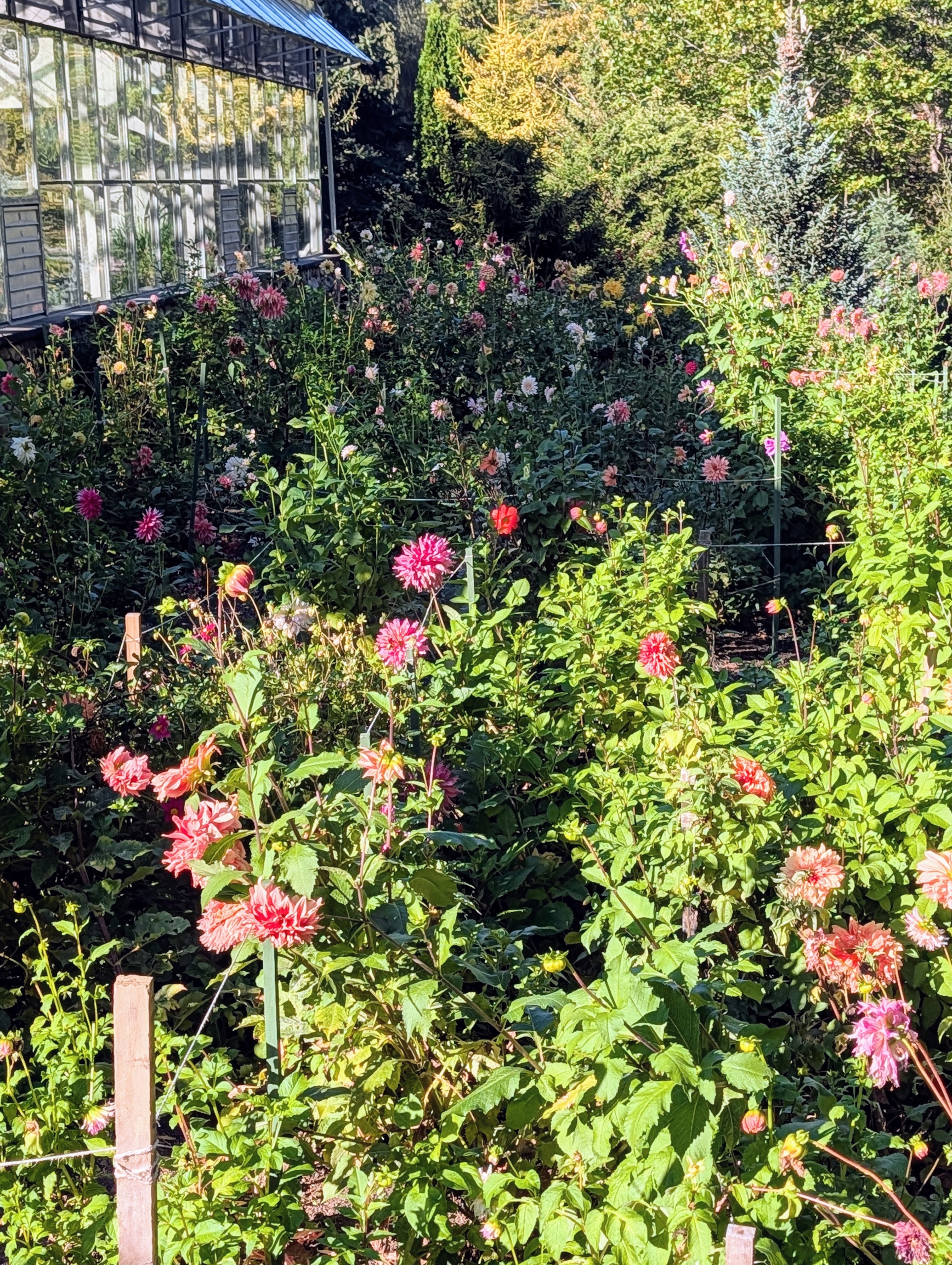 - The dahlia garden is located behind my vegetable greenhouse, in an area protected from any damaging winds.