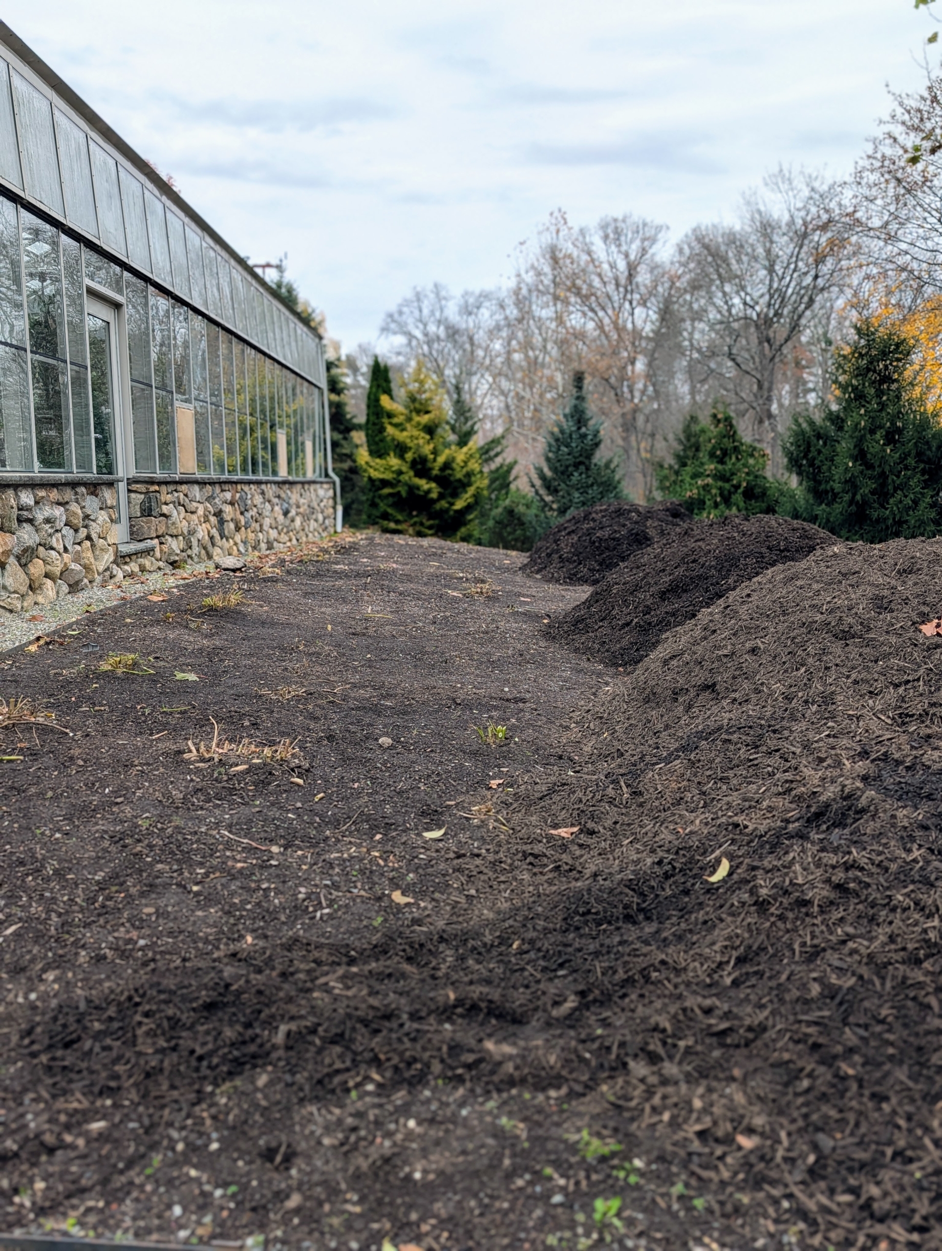 - Next, to keep excess moisture from saturating the tubers, the crew covers the compost and the tubers with an old industrial tarp left from another project.