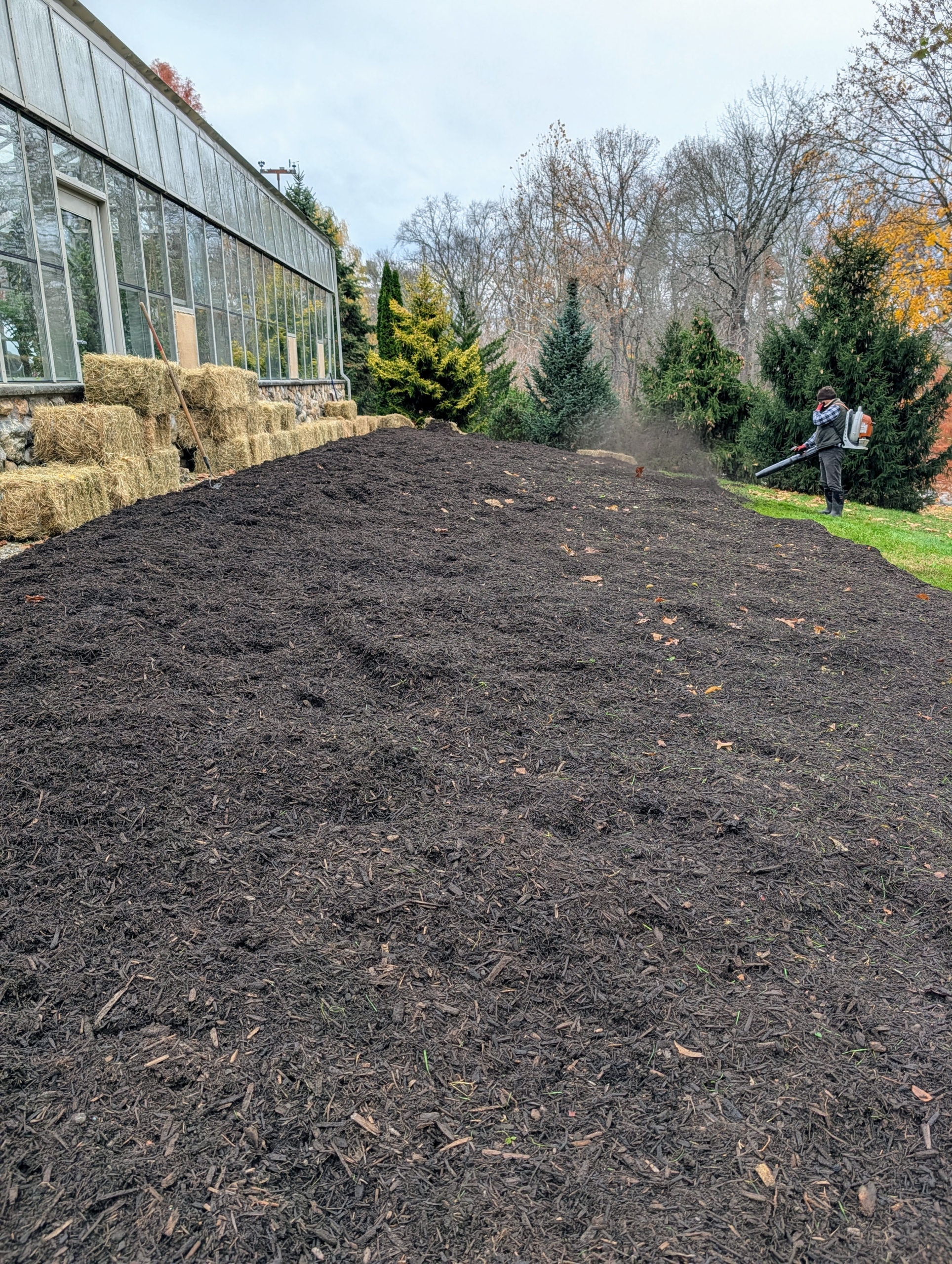 - The bales are delivered to the dahlia bed in large batches.