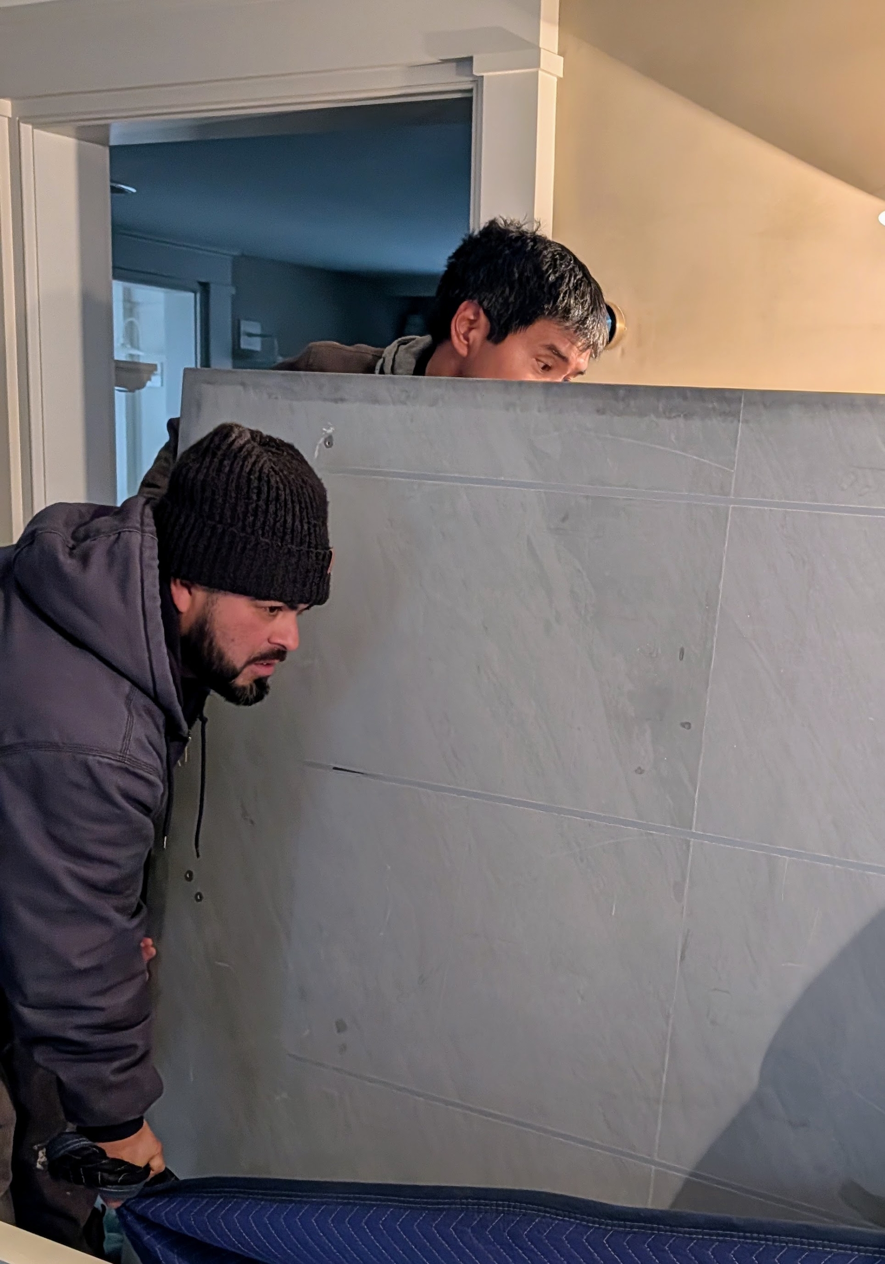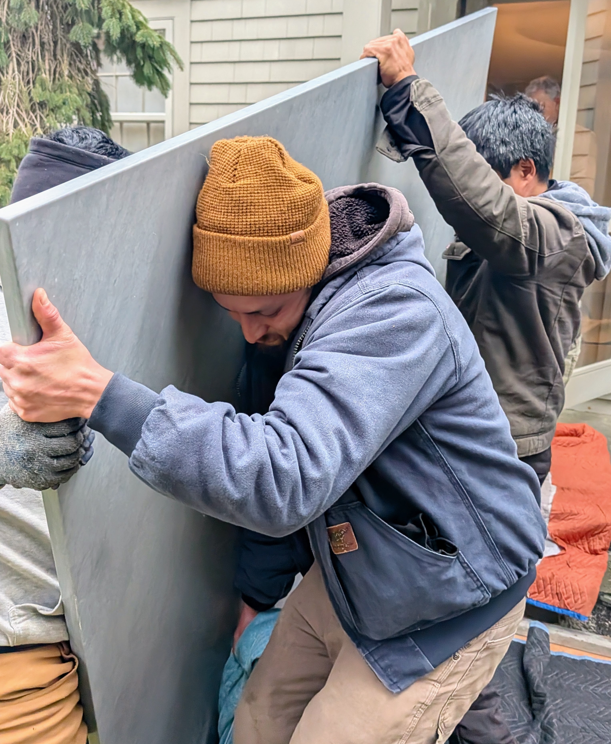 - And then one slow step at a time, the team carried the heavy marble to the forklift of my Hi-Lo.