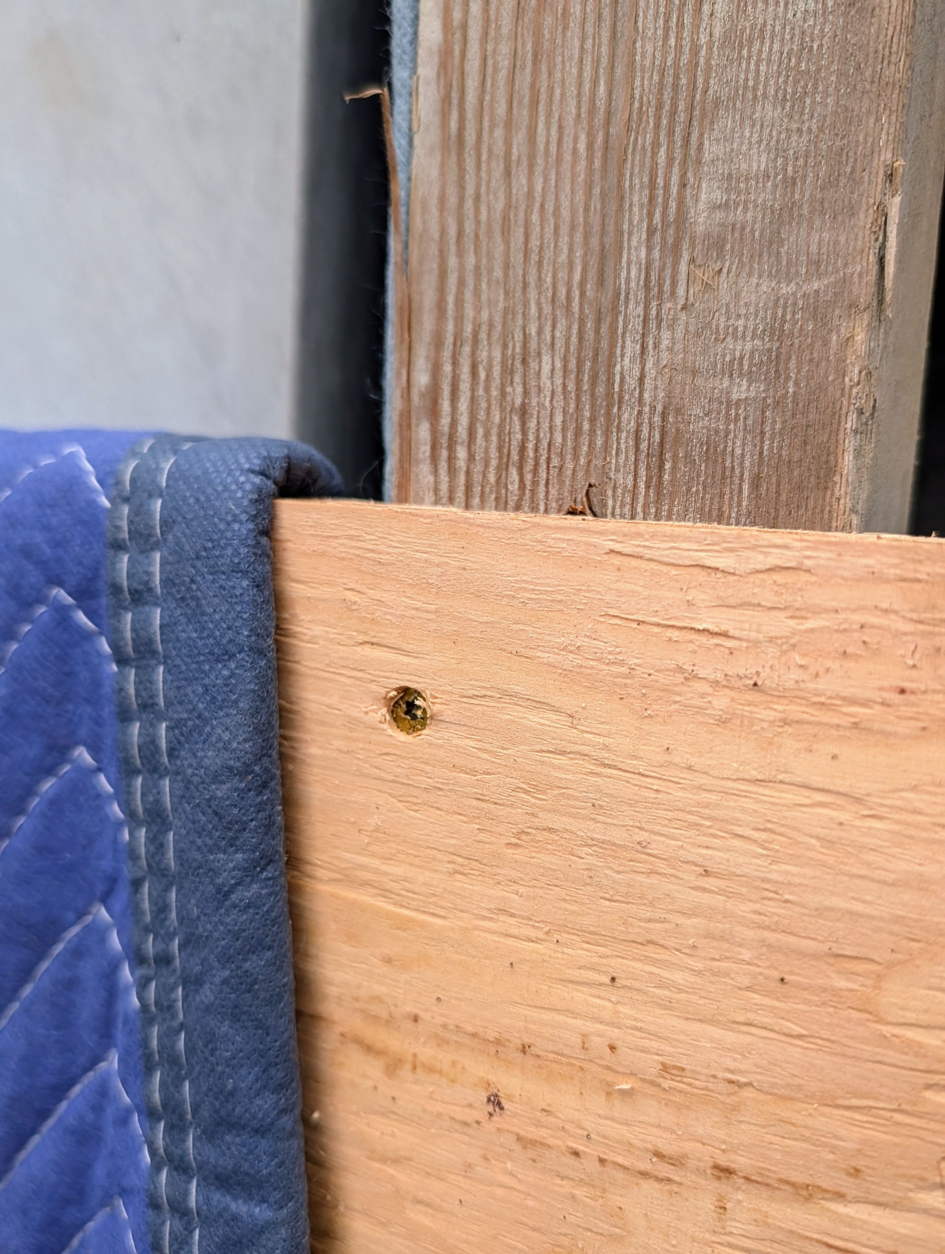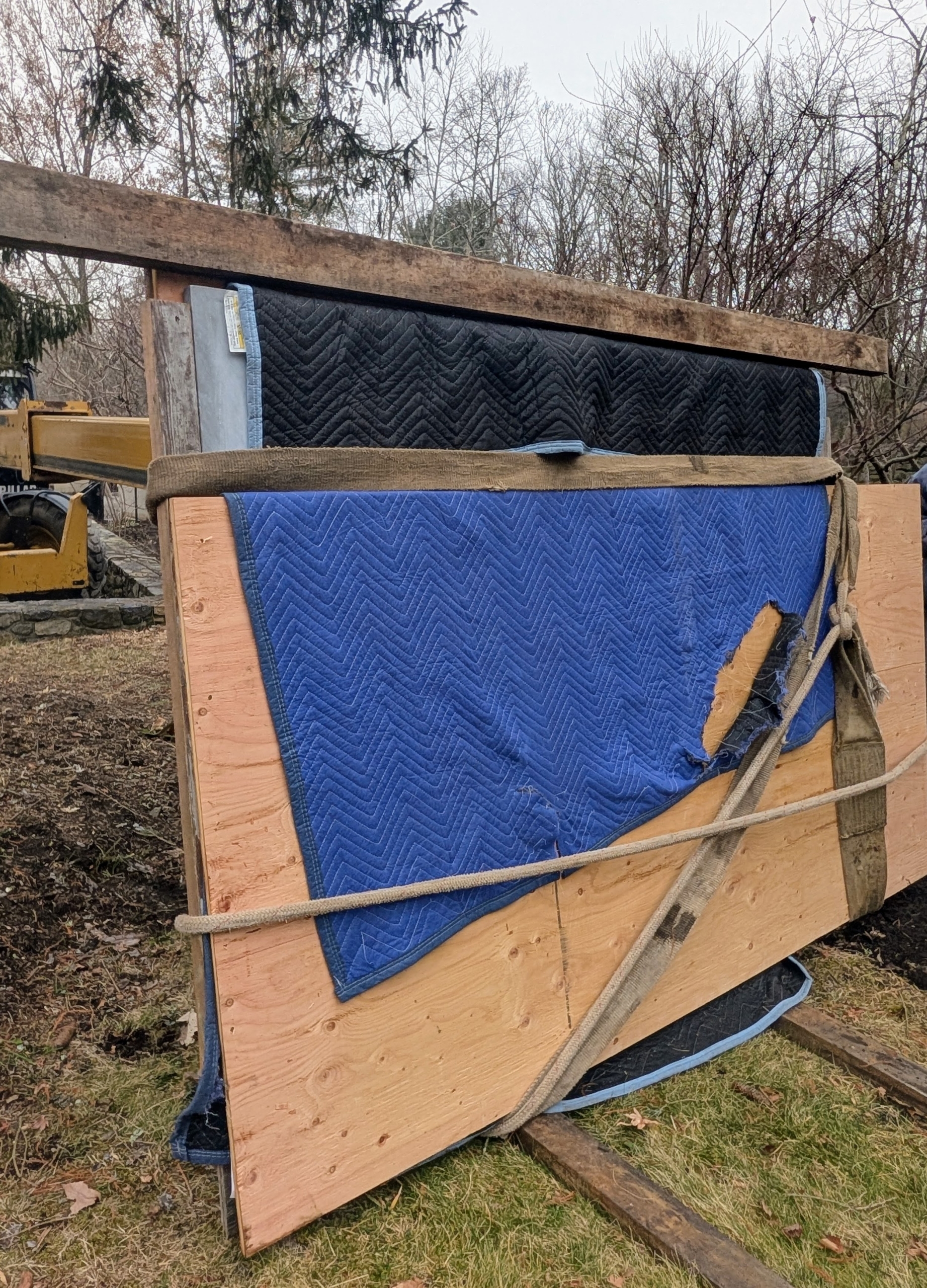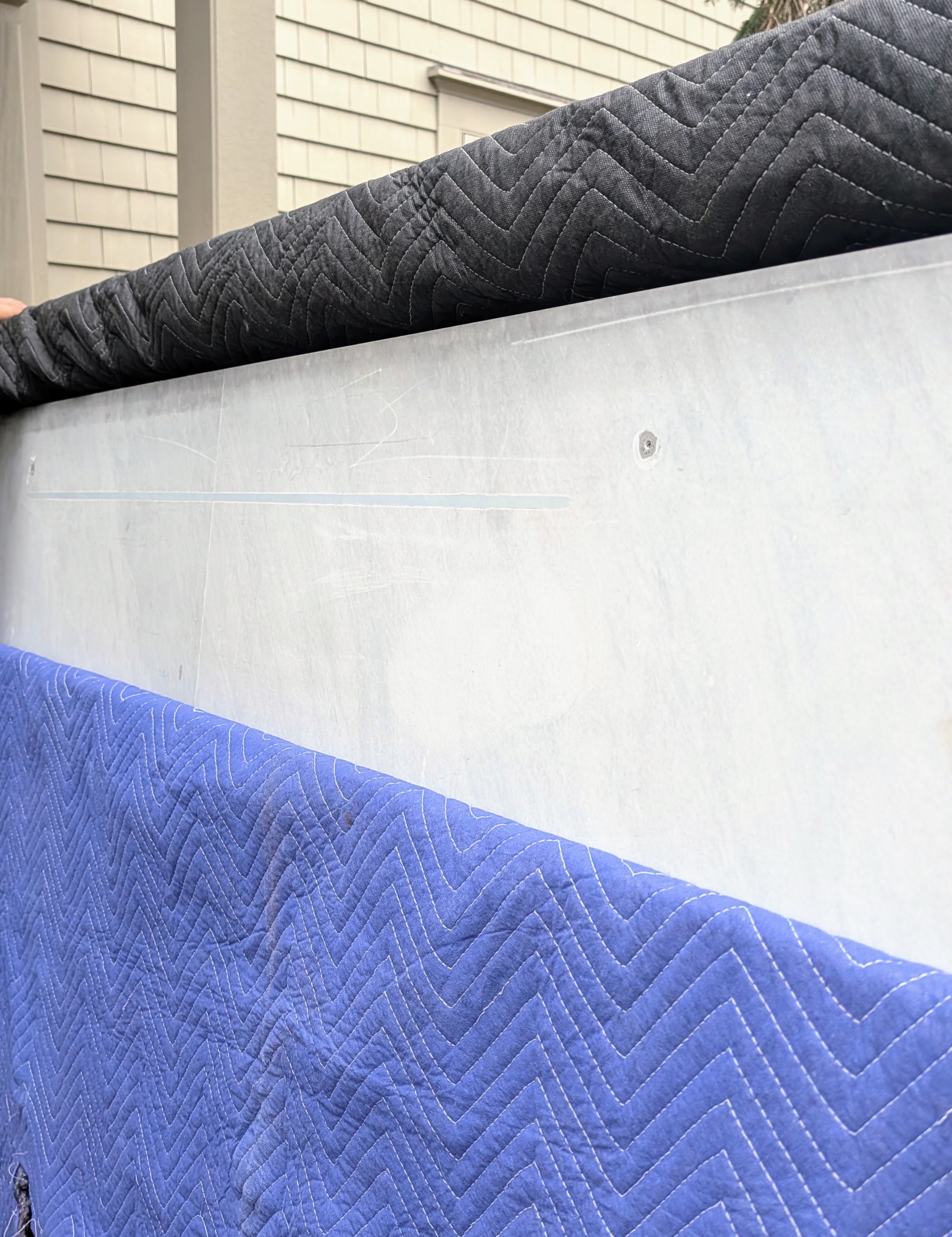 - Pete directed the entire operation. The tabletop was placed into the frame padded with blankets.