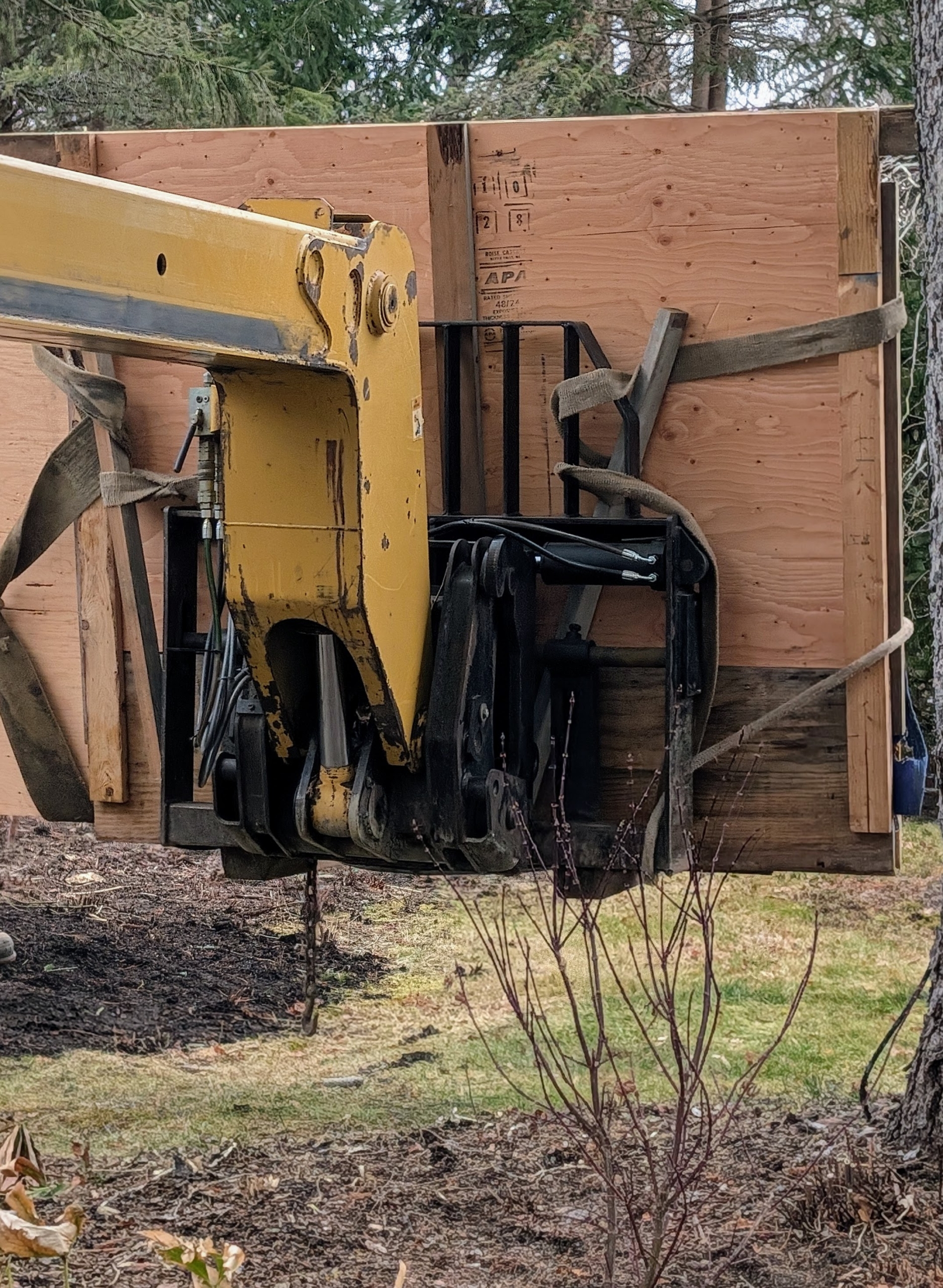 - This forklift is attached to a long extendable arm that can be maneuvered efficiently over garden beds – nothing is disturbed during the move.