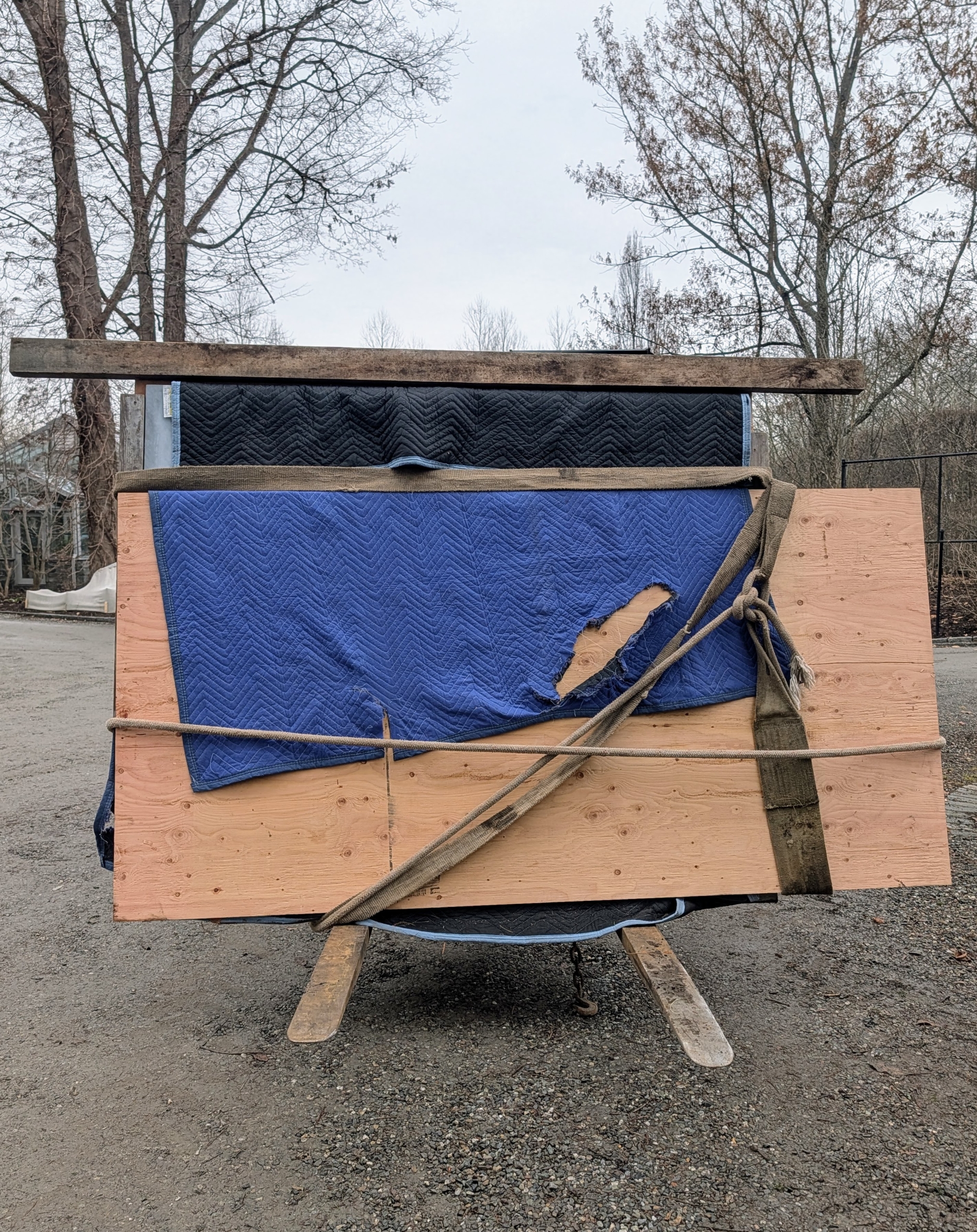 - And then industrial straps and ropes were used to support the bottom and give the team something to hold while moving.