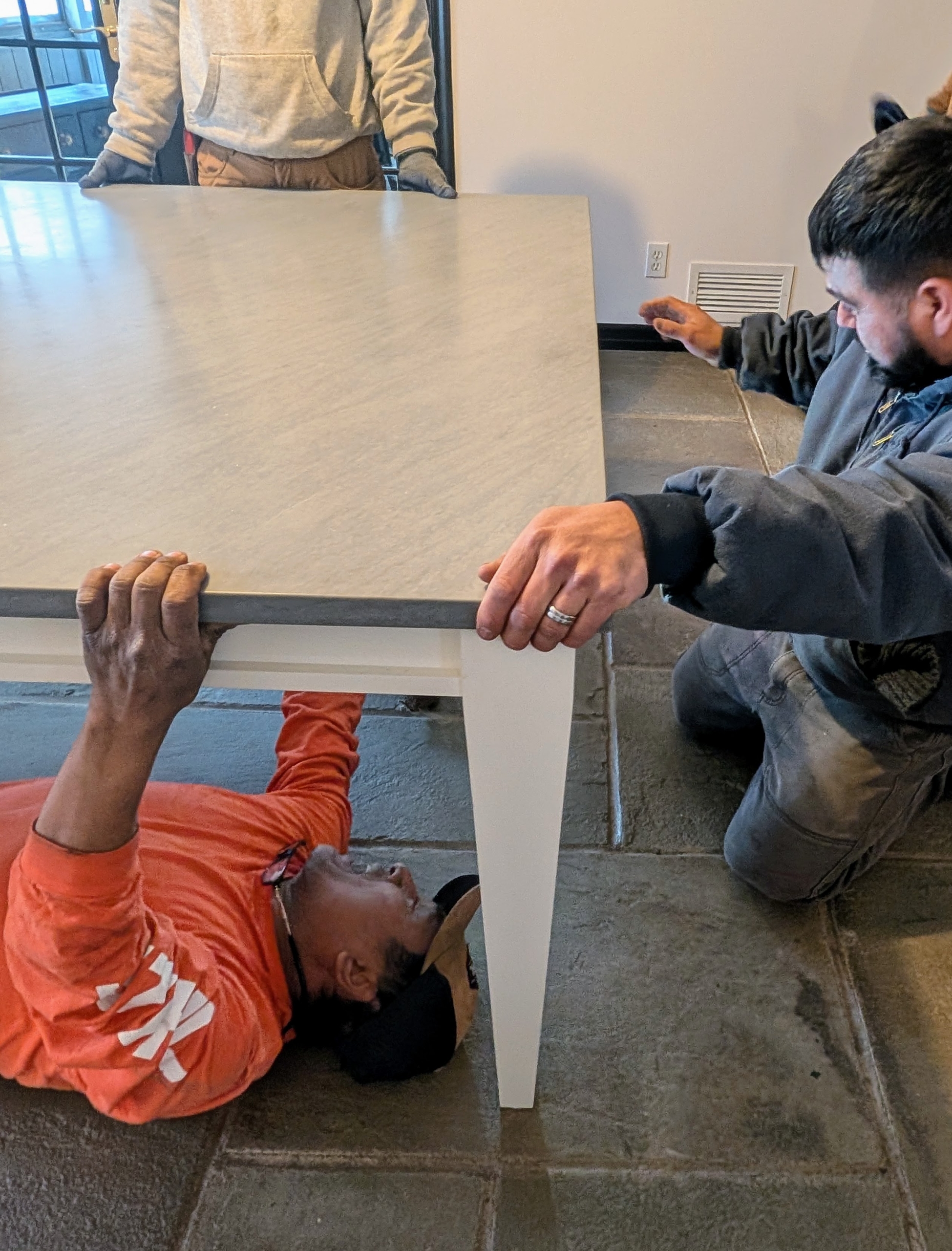 - The table base was easier to move. I instructed the group to place it in the center of the room.