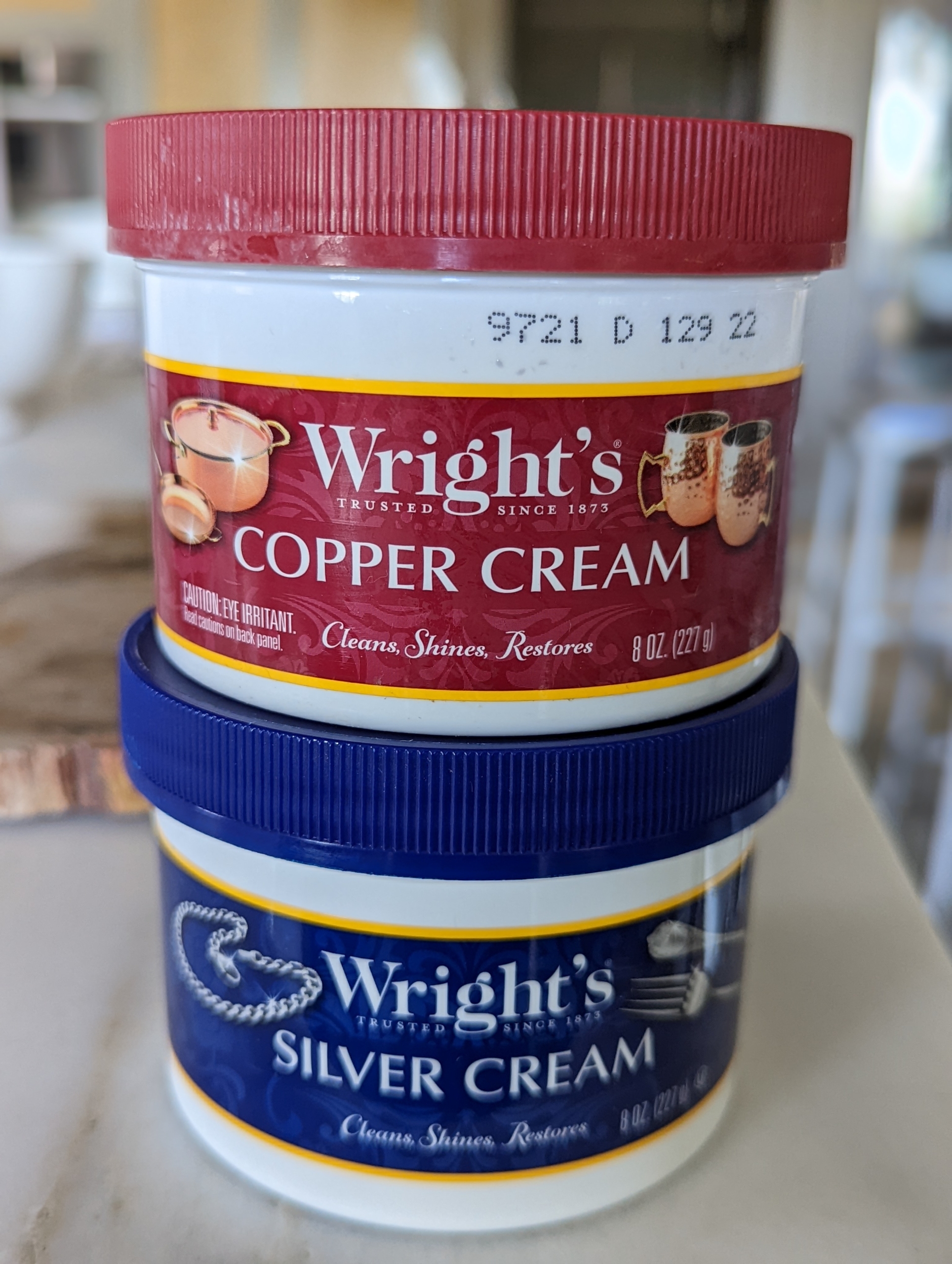 - For cleaning various metals, I have long used Wright’s Copper, Brass, and Silver Cleaning Creams. These come in small and large sizes.