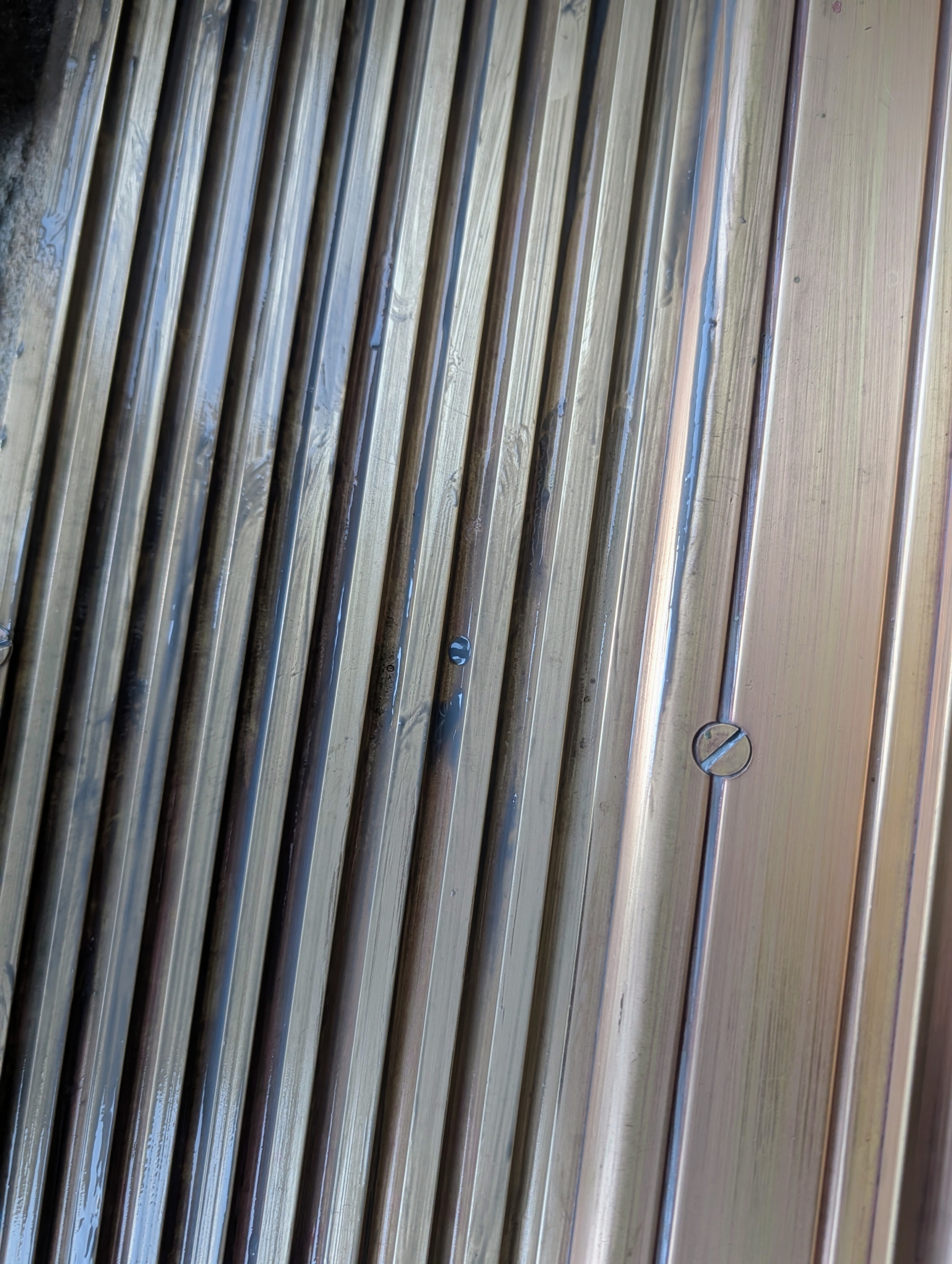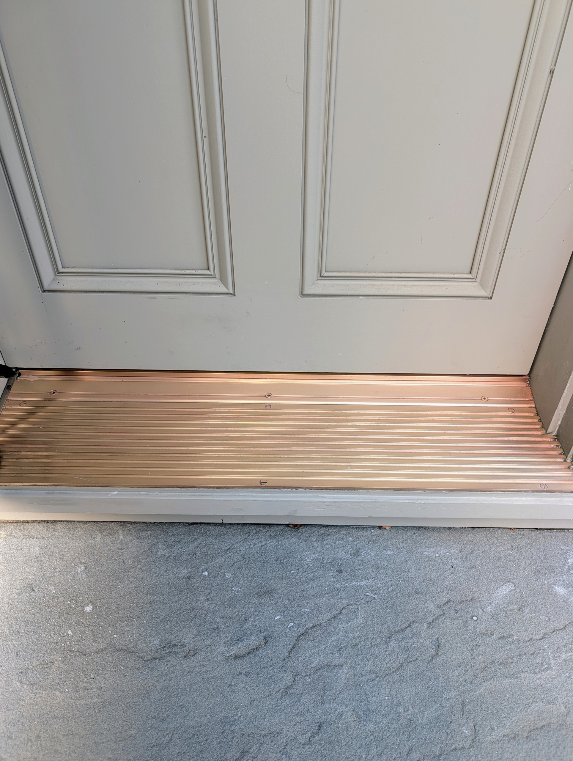 - All the thresholds needed a good polishing. Brass and copper thresholds tarnish over time primarily from exposure to environmental factors such as air, humidity, moisture, and use. My thresholds are cleaned at least once a year.