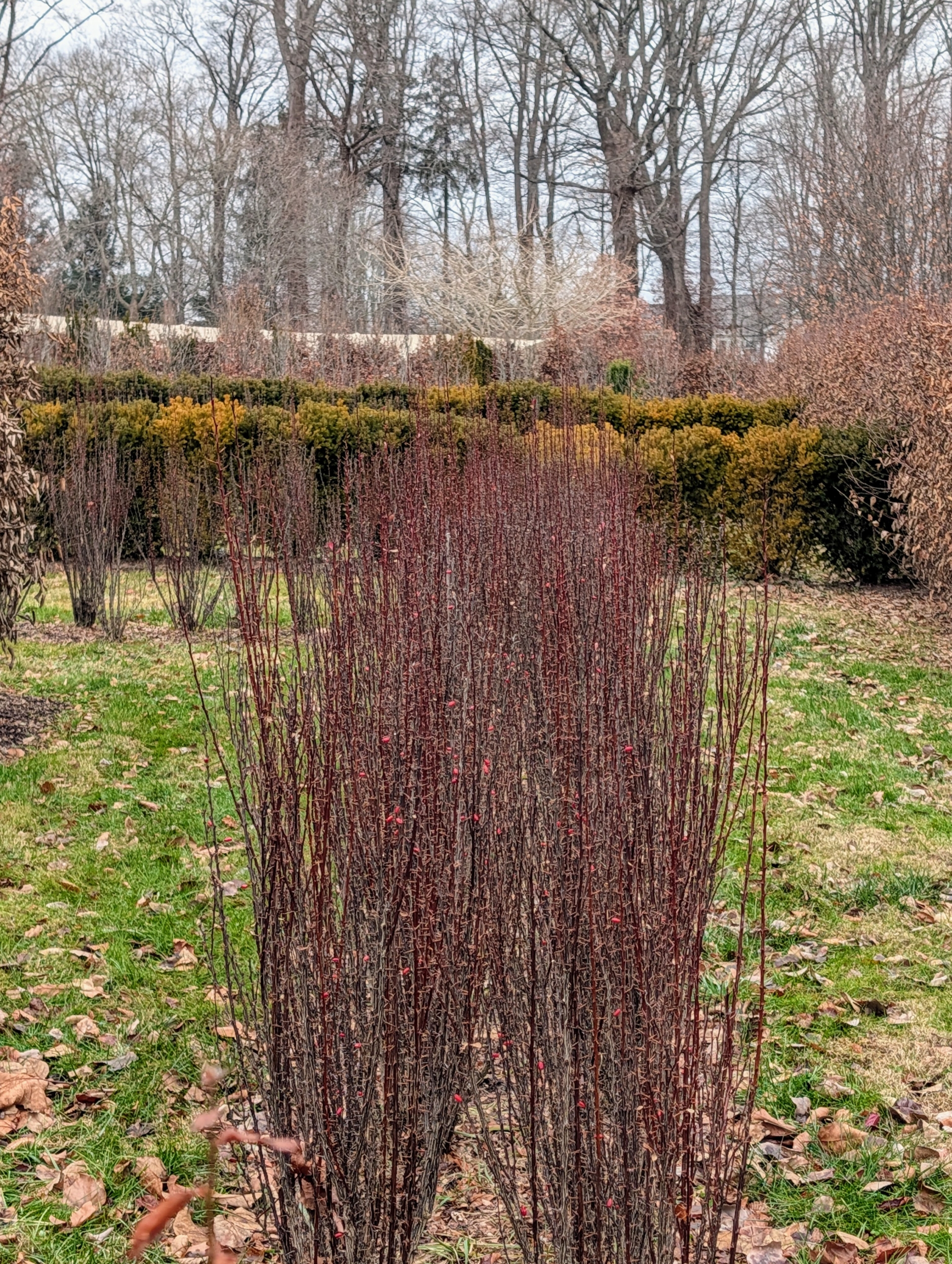 - This is Japanese barberry with its deep burgundy colored foliage.