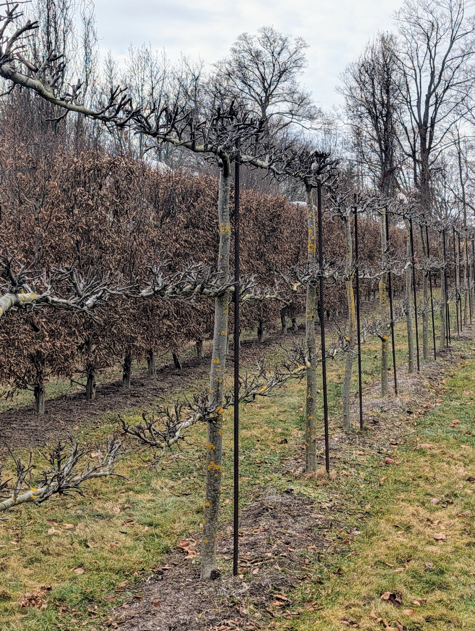 - Pasang moves onto the apple espalier, trimming any new growth and suckers. I grow a variety of wonderful apples. And, at the right time, those walking through can pick a fruit while they meander through this botanical puzzle.