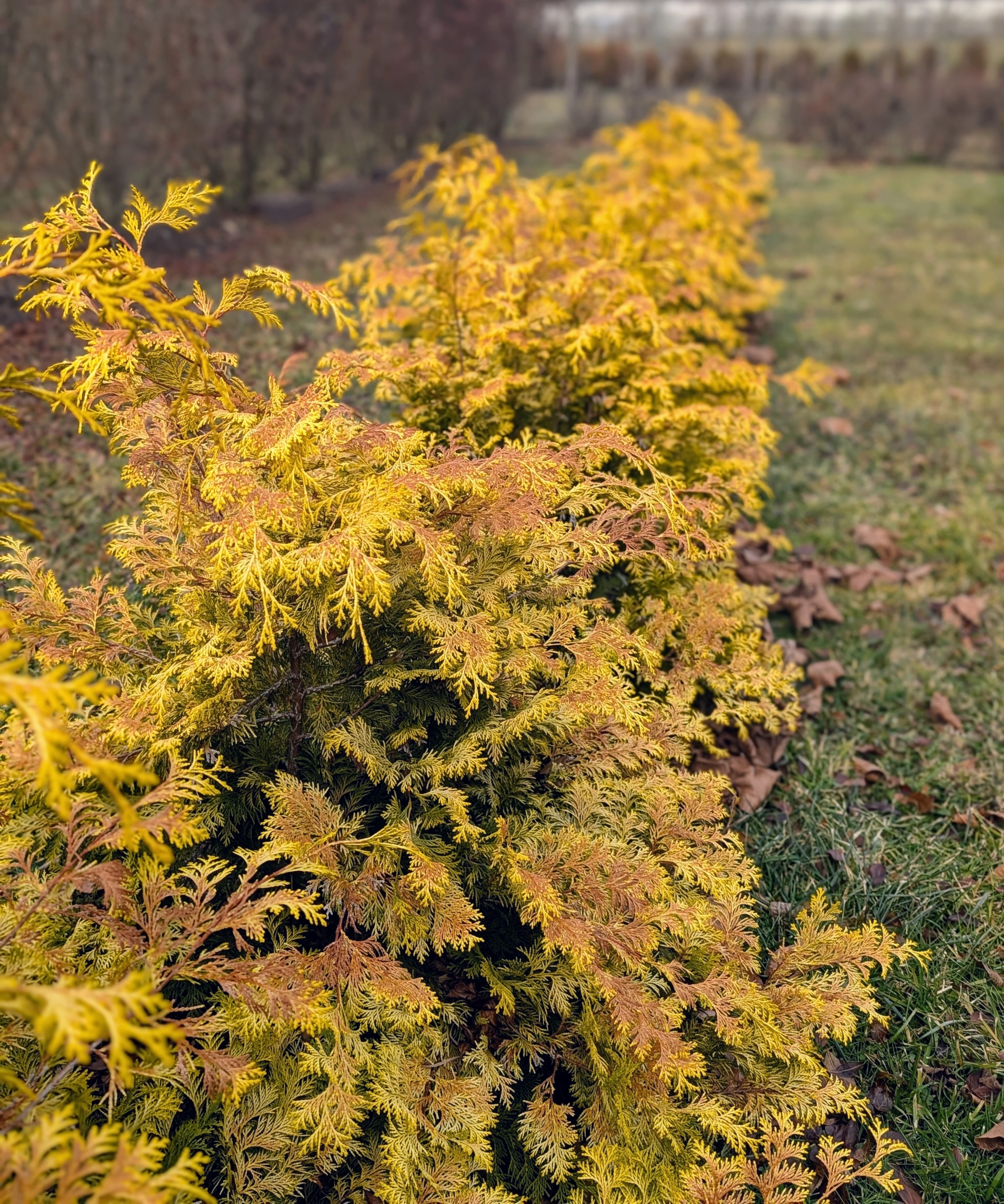 - Paul’s Gold threadleaf false cypress, Chamaecyparis pisifera, has year-round golden green foliage. The soft sprays of Paul’s Gold threadleaf false cypress emerges yellow in the spring and retains its gold color throughout the winter.