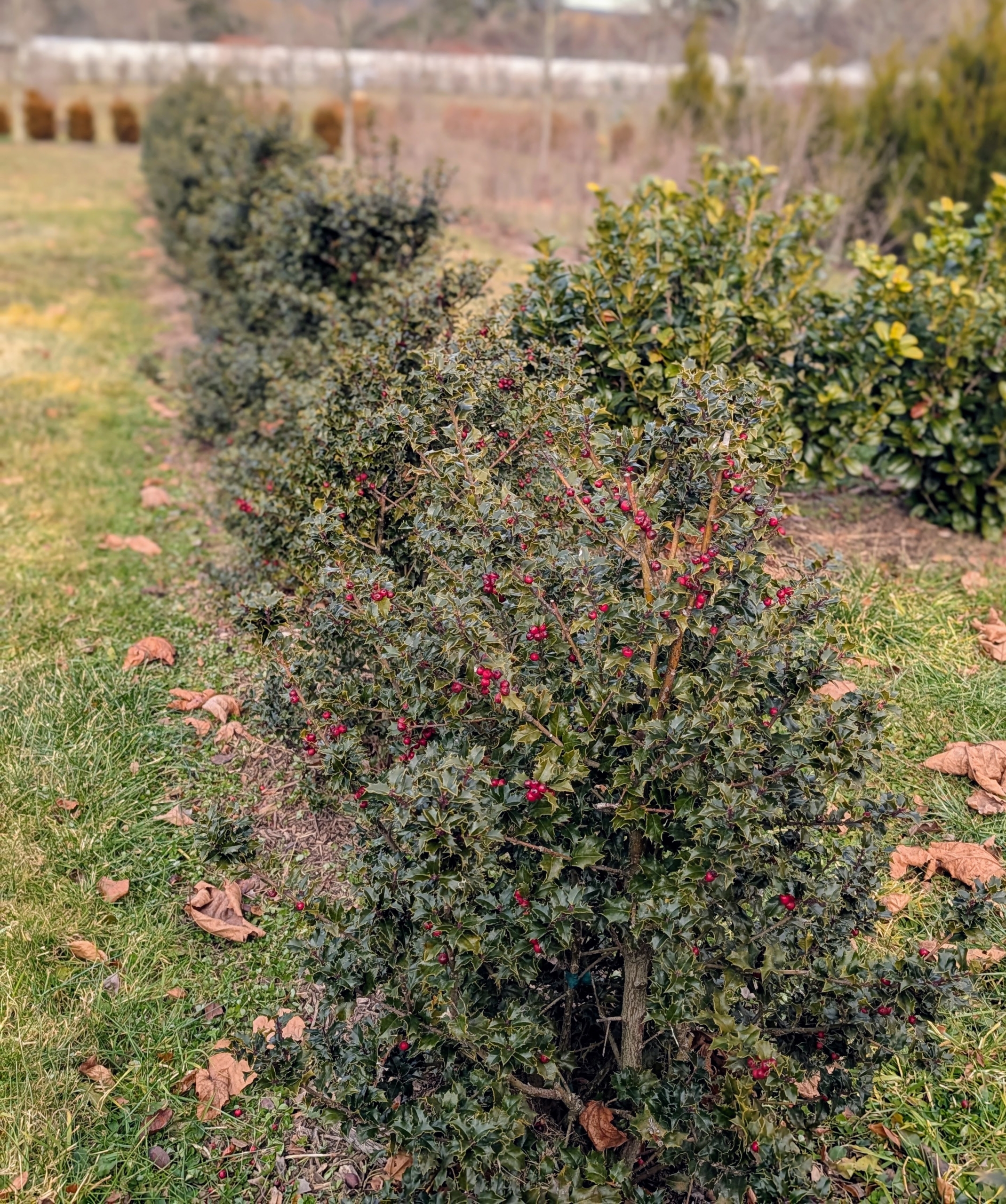 - And this is holly with bright red berries combined with glossy, dark green foliage. Many varieties of holly, Ilex, have compact habits and glistening leaves that’s excellent for hedges, borders, and yes, mazes. Many of the evergreens in this maze are grown by Monrovia, a wholesale plant nursery specializing in well-nurtured shrubs, perennials, annuals, ferns, grasses, and conifers with several nursery locations across the country.